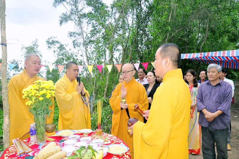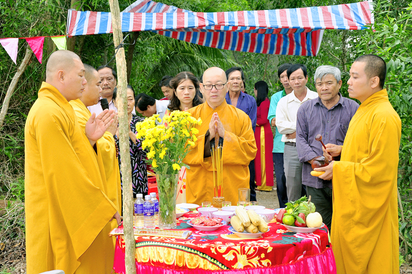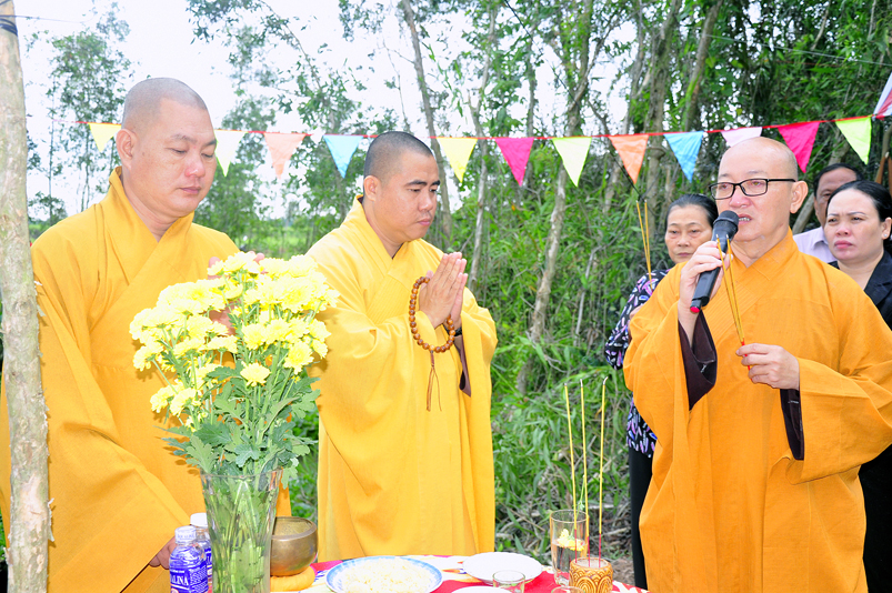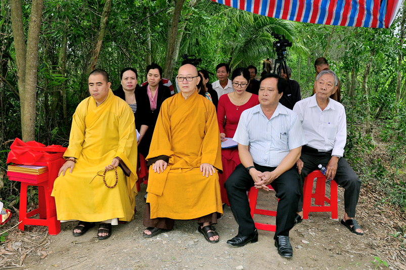 Đại đức Thích Huệ Thông- Trưởng ban Thông tin Truyền thông GHPGVN tỉnh Long An; Đai đức Thích Hóa Minh-Trưởng Ban trị sự GHPGVN huyện Thủ Thừa và Chư Tôn Đức trong đoàn.