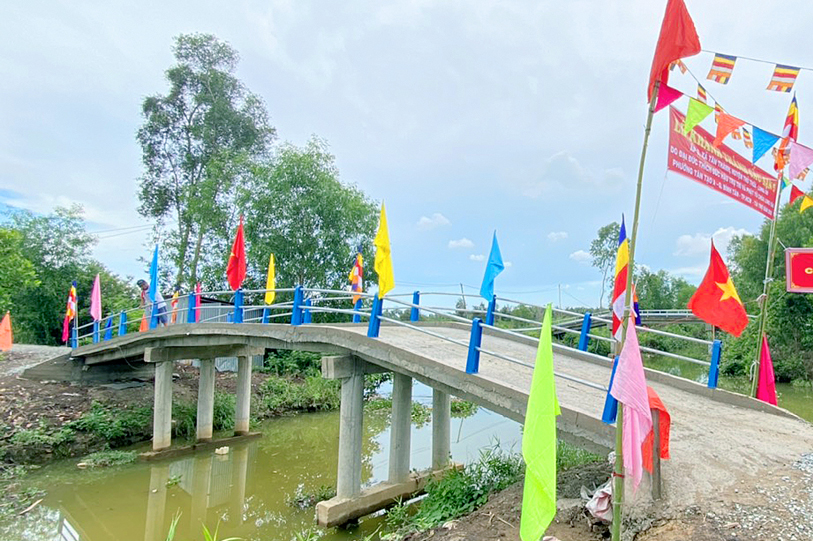 Nhằm giúp bà con nhân dân thuộc ấp 3, xã Tân Thạnh, huyện Thủ Thừa, tỉnh Long An thuận tiện giao thông phát triển kinh tế, đặc biệt là con em an toàn đến trường, sáng ngày 31-5-2020 ( nhằm ngày 9-4-Canh Tý) Phật giáo Long An kết hợp với chính quyền sở tại tổ chức khánh thành cầu Sạn 5 cho bà con địa phương.