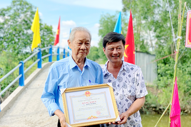 Và để ghi nhận công đức của Đại đức Thích Đức Hậu, GHPGVN tỉnh Long An đã trao bằng công đức đến Đại đức; và ông Hồ Phước Hồng trào bằng khen của Ủy ban Nhân dân tỉnh đến Đại đức Thích Đức Hậu.