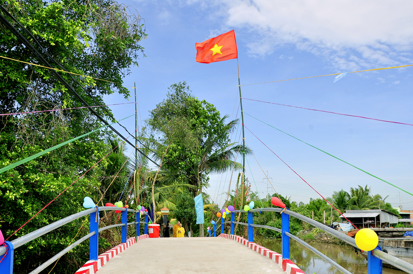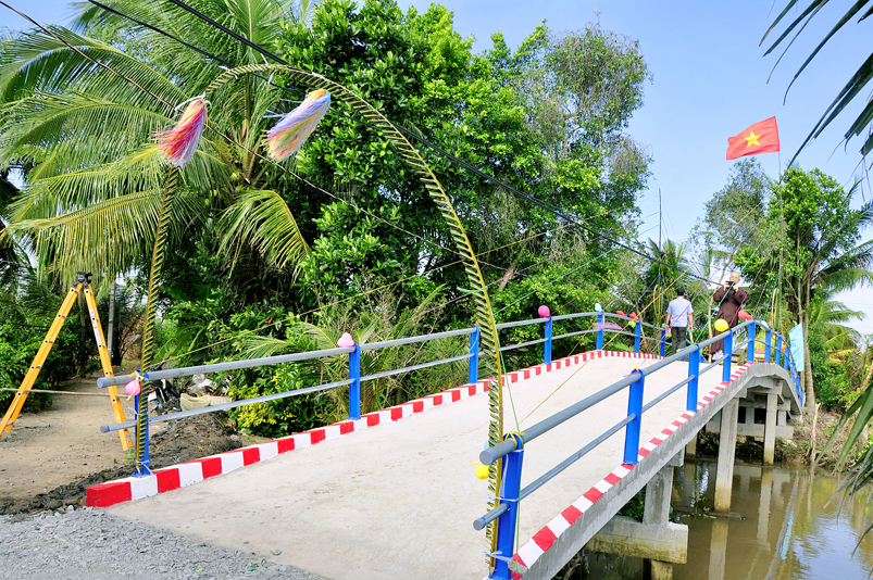 Cầu có chiều dài trên 35m bằng bê tông cốt thép, chiều rộng 2,5m, tải trọng 3,5 tấn, có lan can đảm bảo an toàn giao thông, lưu thông, vận chuyển hàng hóa cho hàng trăm hộ dân trong khu vực. Kinh phí xây dựng 180 triệu đồng. (trong đó Ban từ thiện Thiền Viện Vạn Hạnh quận Phú Nhuận, Tp. HCM và gia đình Phật tử Thuý Vinh , Nhóm Hà Nội 10 G Hà Nội A tài trợ 160 triệu, số còn lại do nhân dân đóng góp).