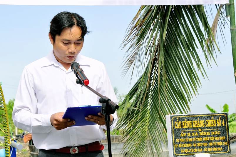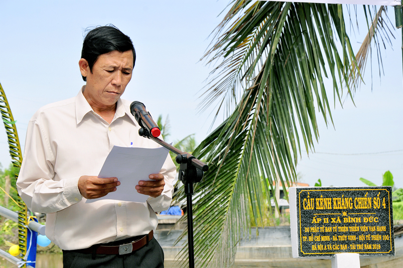 Ông Trần Văn Sơn – Đảng Uỷ viên, Chủ tịch UBND xã Bình Đức, đã tri ân đối Chư tôn đức, quý mạnh thường quân tài trợ cho công trình. Ông mong trong thời gian tới Ban từ thiện Thiền Viện tiếp tục đồng hành cùng UBND để có những công trình phục vụ cho bà con.