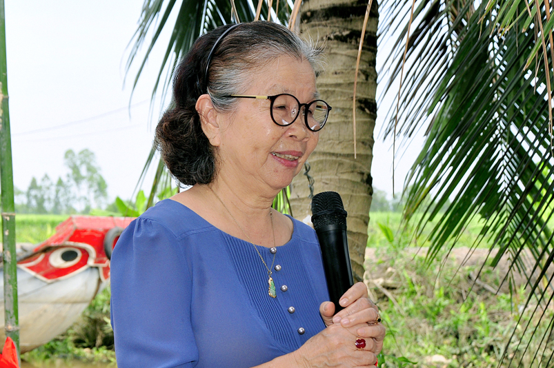 Đại diện Ban từ thiện Thiền Viện Vạn Hạnh, quận Phú Nhuận, Tp. HCM và gia đình Phật tử Thuý Vinh, Nhóm 10G Hà Nội A bà Nguyễn Thuý Nga phát biểu. Bà vui mừng cảm ơn quý cấp lãnh đạo xã đã tạo điều kiện thuận lợi cho ban từ thiện thực hiện công trình. Bà cho biết đối với xã Bình Đức Ban từ thiện Thiền Viện Vạn Hạnh và nhóm 10 G Hà Nội A đã ủng hộ được 6 cây cầu. Bà mong muốn tiếp tục đồng hành đóng góp cho những công trình tương lai.