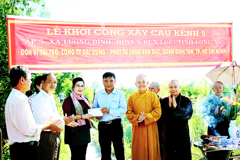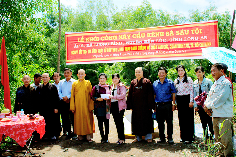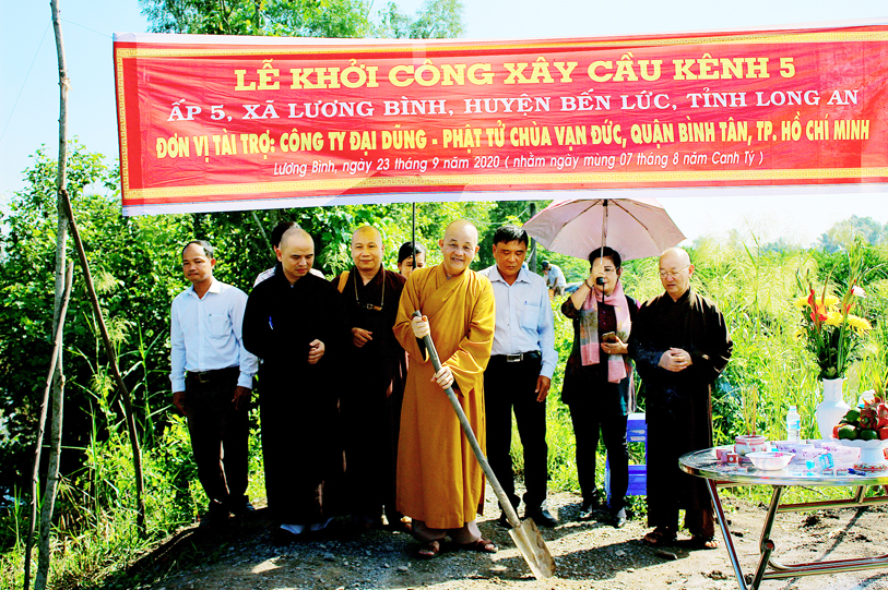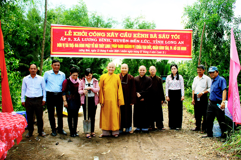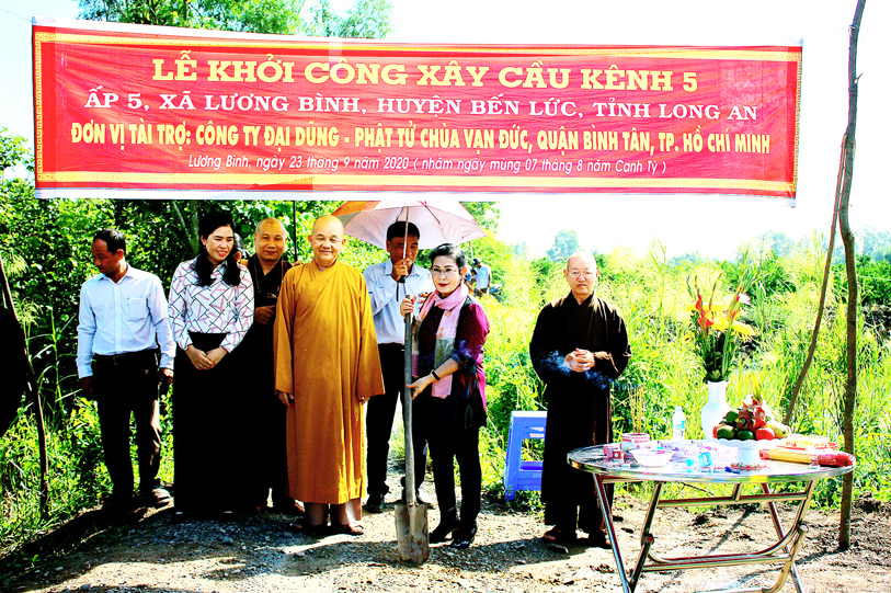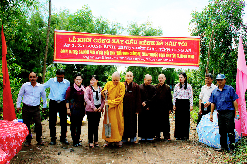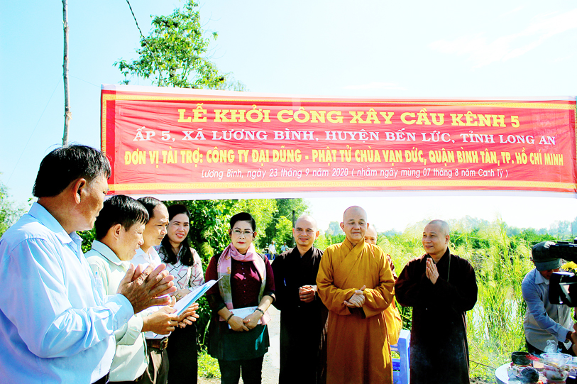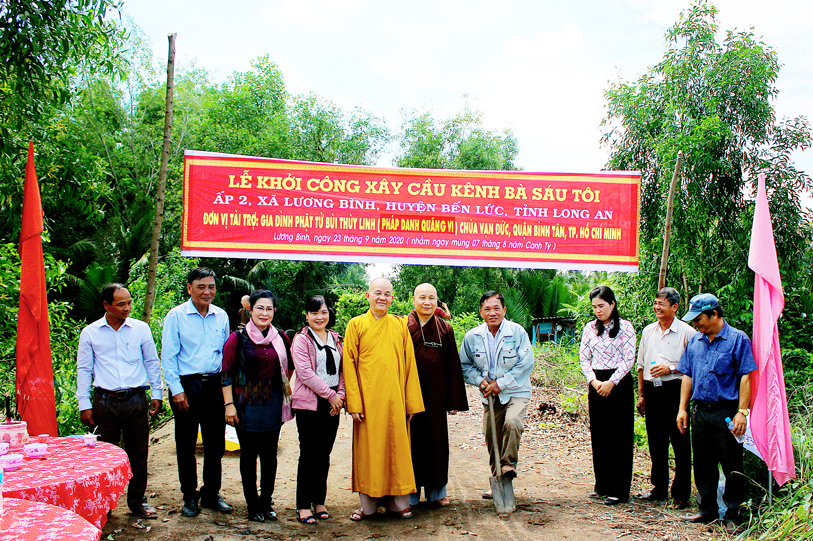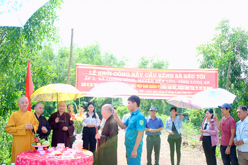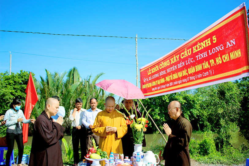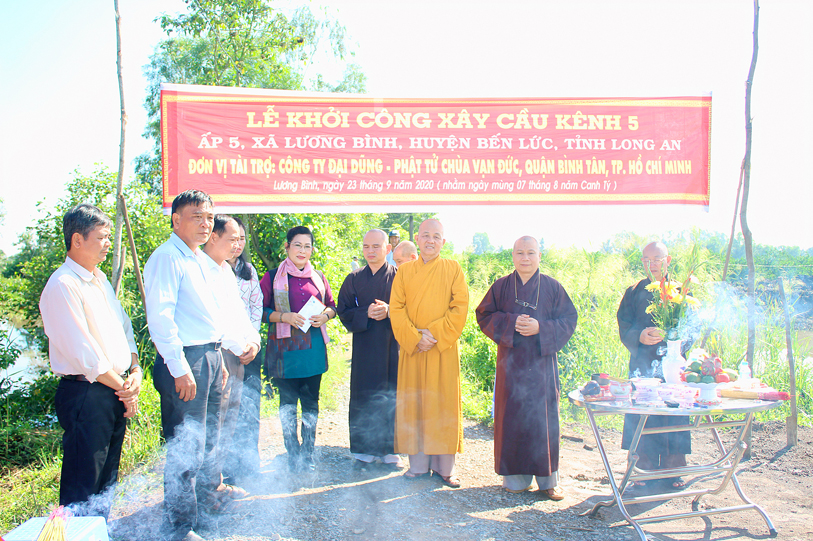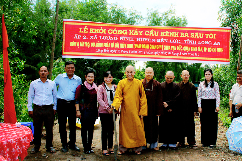 Ban Trị sự giáo hội Phật giáo Việt Nam tỉnh Long An phối hợp UBND xã Lương Bình, huyện Bến Lức tổ chức lễ động thổ xây dựng cầu Vạn Đức, ấp 5 và cầu kênh bà Sáu, ấp 2.