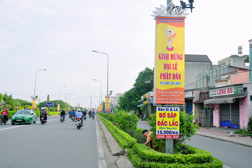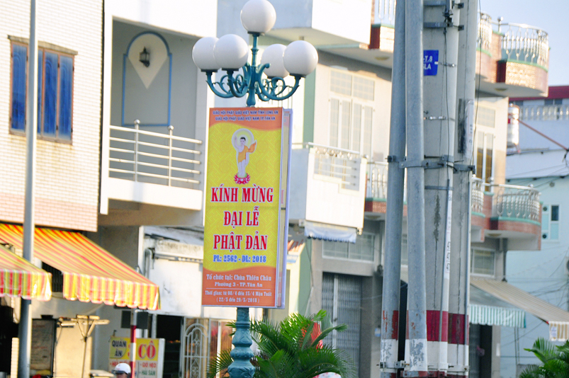 Trong không khí tưng bừng tuần lễ Phật đản PL 2562. Để tỏ lòng ngưỡng mộ, tri ân, tôn kính đến Đức Phật, toàn thể những người đệ tử Phật và yêu mến đạo Phật trên khắp năm châu mỗi người một cách thể hiện tấm lòng của mình để dâng lên Ngài. Tăng Ni Phật tử tỉnh Long An cũng thế, trong suốt những ngày qua, mọi người đã tất bậc làm nhiều việc thiện như: xây cầu, làm đường, giúp đỡ những người có hoàn cảnh còn khó khăn… để chào mừng ngày trọng đại này. Đặc biệt, khắp trong tỉnh nhà nhiều chùa tổ chức khoá tu cho Chư tăng, Phật tử. Về công tác văn hoá, truyền thông, các ngã đường rực rỡ sắc cờ, lễ đài chào mừng Phật đản. Năm nay, ngoài trang trí nơi lễ đài văn phòng Ban trị sự các huyện, thị, thành phố, tại các chùa, tư gia Phật tử cũng thiết lễ đài, treo đèn hoa…