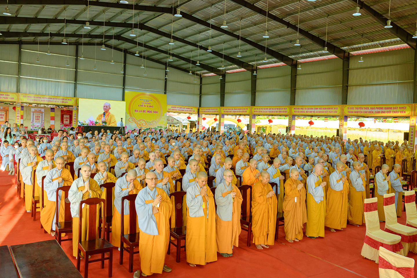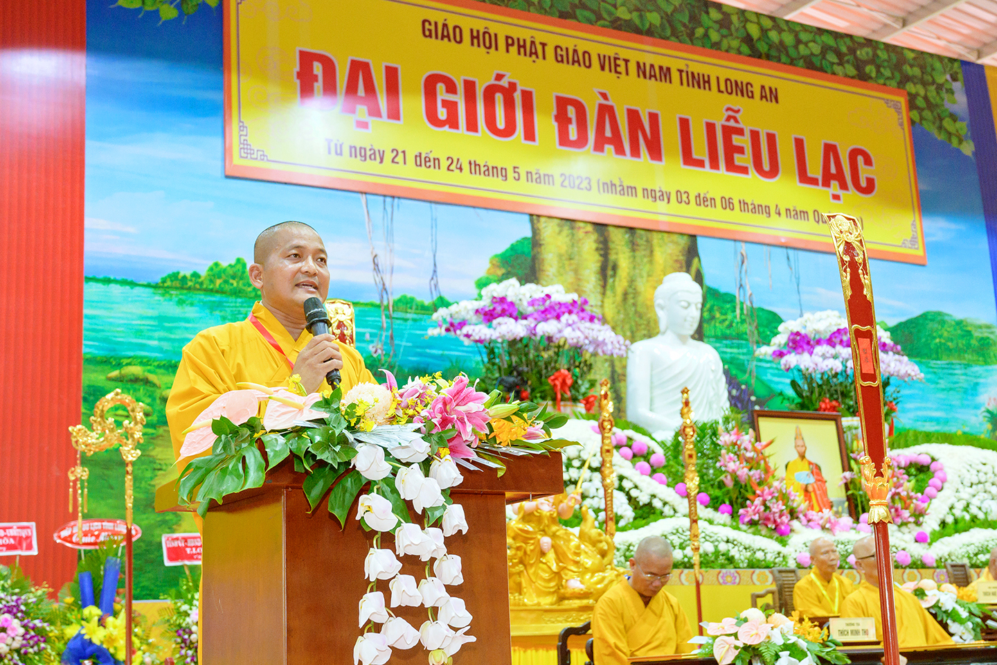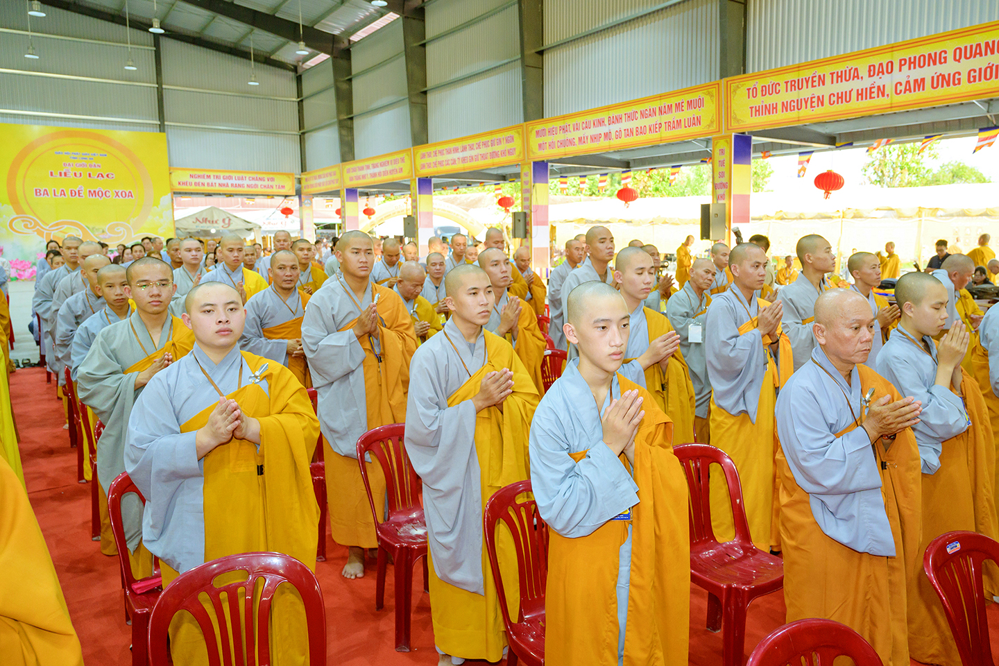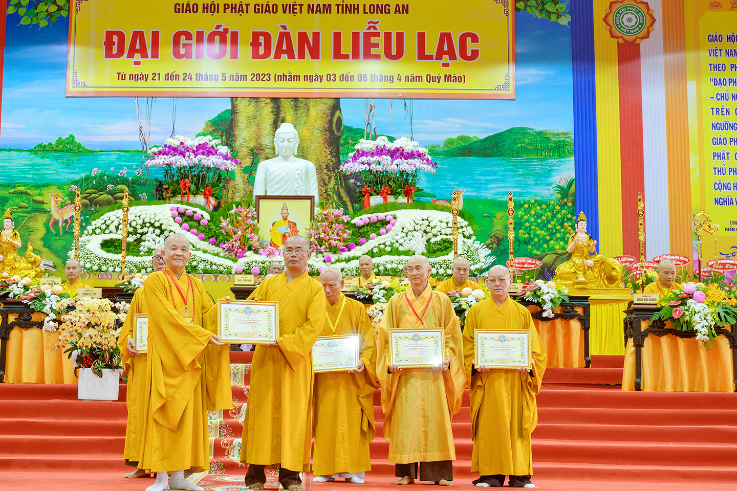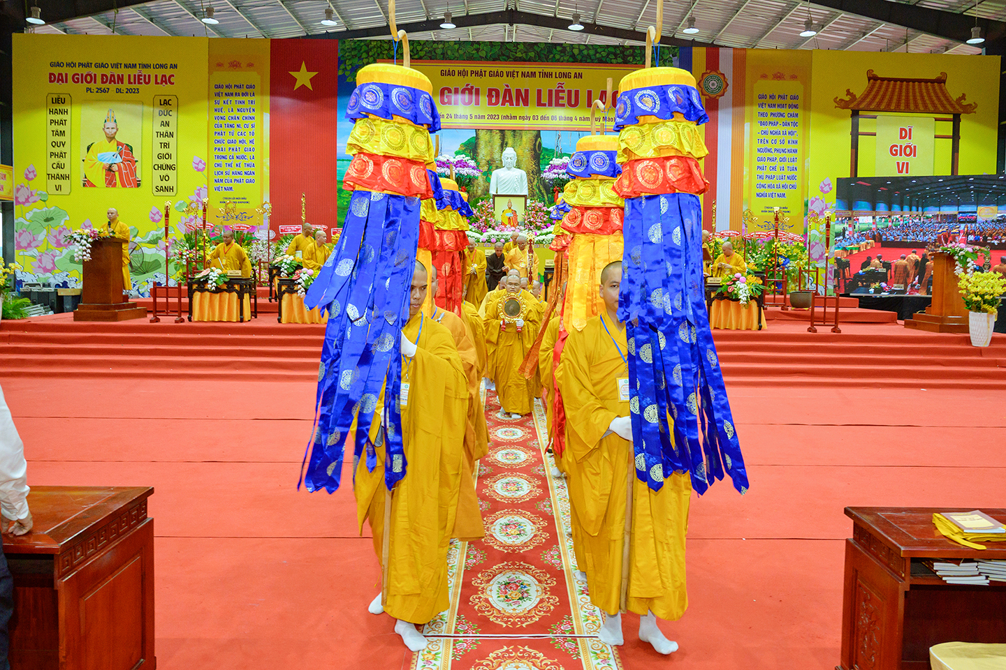 Chiều ngày 24/05/2023 nhằm ngày mùng 6/4 năm Quý Mão, theo chương trình Đại Giới đàn Liễu Lạc, Ban Tổ chức đã long trọng làm Lễ bế mạc Đại giới đàn Liễu Lạc sau 4 ngày diễn ra từ 21/05 đến 24/05/2023, nay đã được thành tựu viên mãn. Chứng minh buổi lễ với sự hiện diện, tham dự của: HT. Thích Thiện Huệ, Thành viên HĐCM, Chứng minh BTS GHPGVN tỉnh Long An; HT. Thích Lãng Huỳnh, Thành viên HĐCM, Tông trưởng Thiên Thai Giáo Quán; HT. Thích Huệ Hồng – Chứng minh BTS GHPGVN tỉnh Long An; HT. Thích Minh Thiện – UV HĐTS, Trưởng BTS GHPGVN tỉnh Long An, Trưởng ban Tổ chức Đại giới đàn; HT. Thích Phước Toàn – Chứng minh BTS GHPGVN quận Bình Tân; HT. Thích Thiện Pháp – Phó Trưởng ban Thường trực Ban Thừa kế Thiên Thai Thiền Giáo Tông, Chư tôn đức Phó BTS GHPGVN tỉnh Long An: HT. Thích Tắc Phi, TT. Thích Quảng Tâm, TT. Thích Minh Thọ, TT. Thích Lệ Trí, TT. Thích Đức Hoàng, ĐĐ. Thích Lệ Duyên, ĐĐ. Thích Lệ Ngôn, NT. TN. Gương Liên, NT. TN. Như Tâm, cùng chư tôn đức Hội đồng Thập sư, Ban Kiến đàn, Ban Trị sự tỉnh, huyện thị, thành và các Giới tử đã thọ nhận giới pháp cùng đông đảo quý Phật tử gần xa đồng tham dự. Về phía chính quyền có ông Phạm Văn Đồng, UV BTV Huyện ủy, Trưởng ban Dân vận huyện Đức Hòa; ông Nguyễn Văn Đạo, UV BTV Huyện ủy, Chủ tịch UB MTTQVN huyện; bà Trịnh Thị Ngọc Thanh – Phó Bí thư Đảng ủy, Chủ tịch HĐND xã Mỹ Hạnh Nam, cùng đại diện các cấp lãnh đạo chính quyền huyện Đức Hòa, xã Mỹ Hạnh Nam sở tại. ĐĐ. Thích An Nhựt, thay mặt Ban Kiến đàn báo cáo kết quả tổ chức Đại Giới đàn Liễu Lạc năm 2023. Đại Giới đàn diễn ra trong 4 ngày, từ ngày 21/5 đến 24/05/2023 nhằm ngày mùng 03 đến mùng 06/04 năm Quý Mão, với 349 Giới tử trúng tuyển kì thi khảo hạch. Trong đó, giới tử Tỳ kheo là 65 vị, Sa di là 105 vị, giới tử Tỳ kheo ni là 63 vị, Thức xoa ma na là 48 vị, Sa di ni là 68 vị. Đại Giới đàn lần này có 242 Giới tử xuất gia và tại gia phát tâm thọ Bồ tát giới.