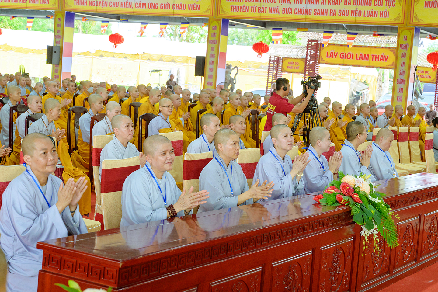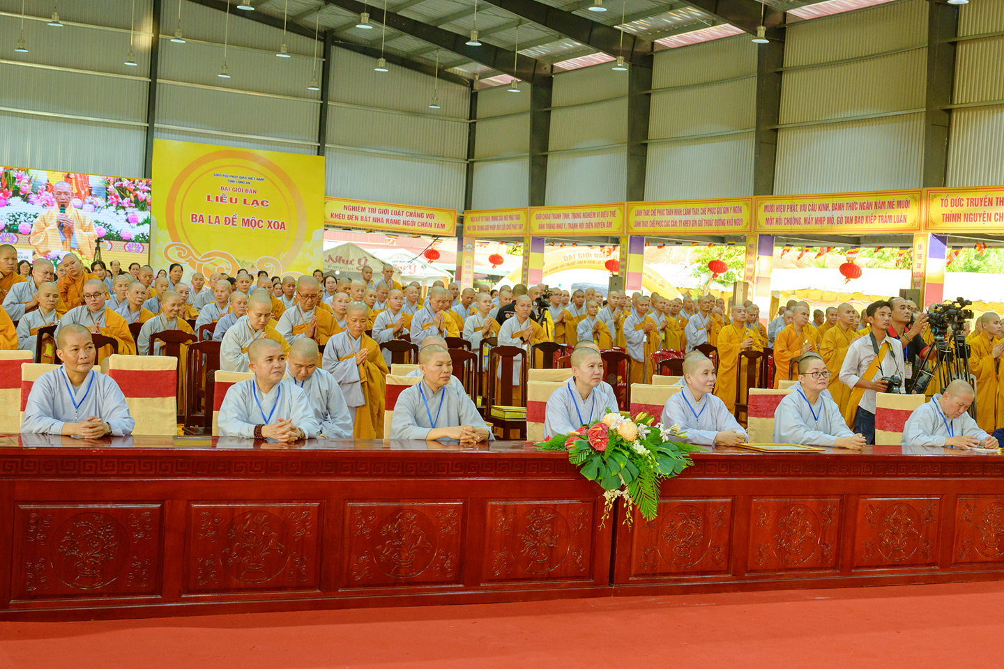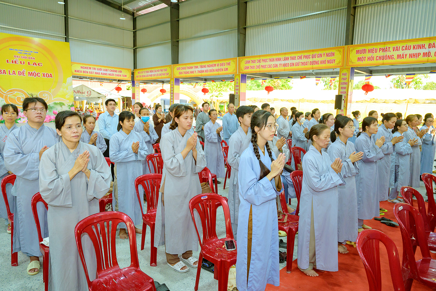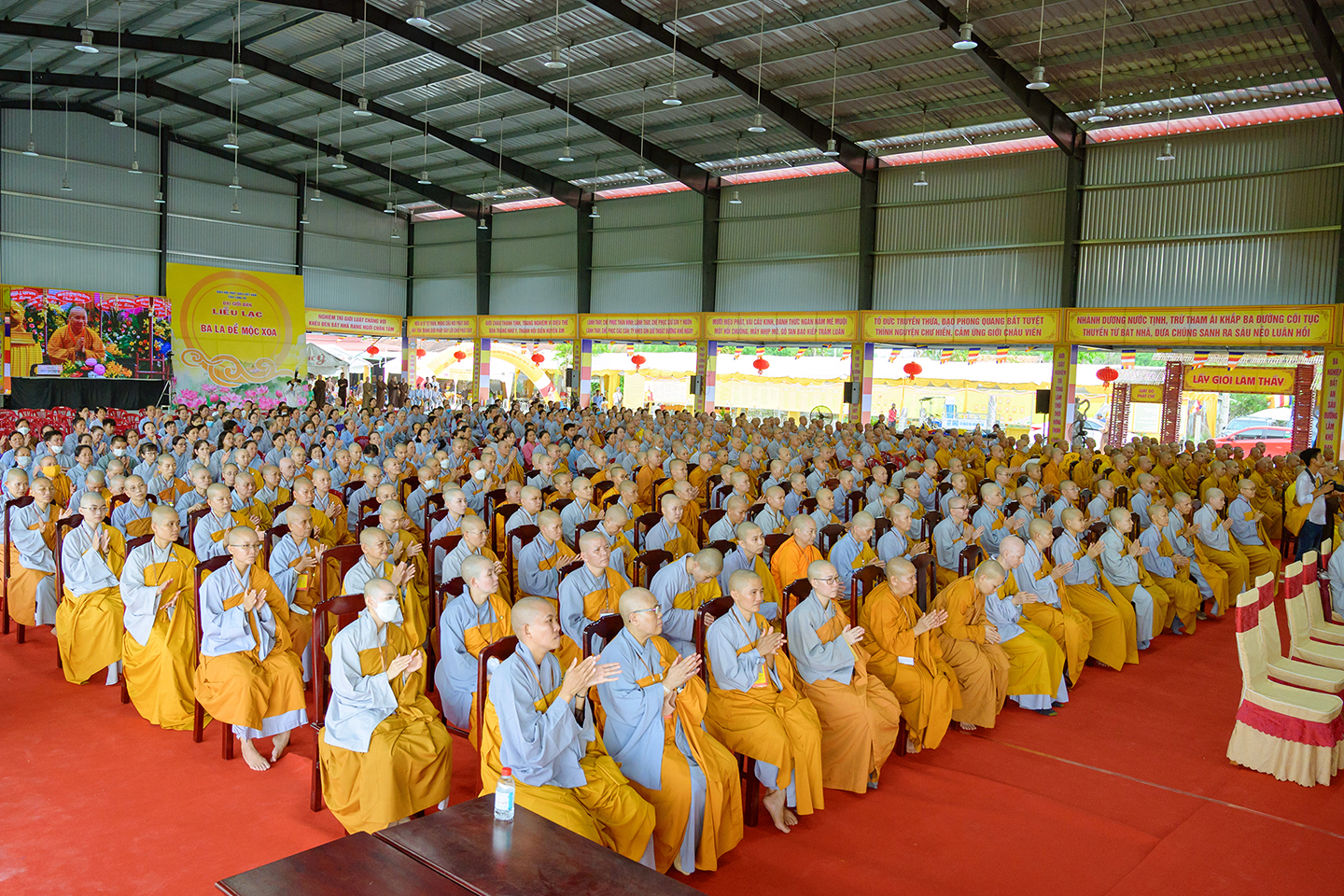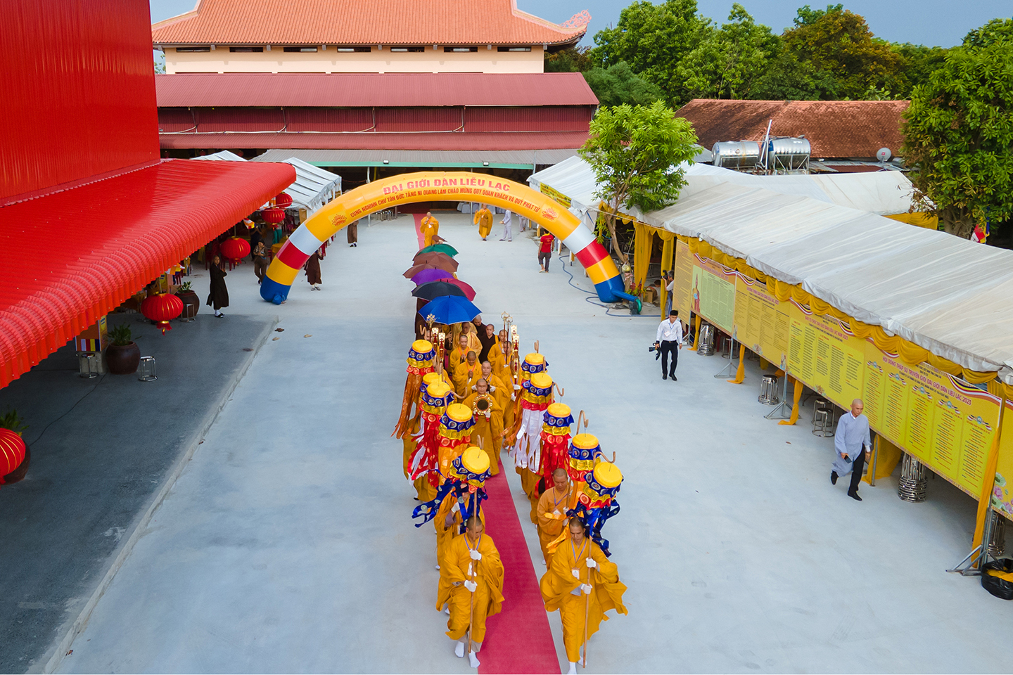 Chiều ngày 24/05/2023 nhằm ngày mùng 6/4 năm Quý Mão, theo chương trình Đại Giới đàn Liễu Lạc, Ban Tổ chức đã long trọng làm Lễ bế mạc Đại giới đàn Liễu Lạc sau 4 ngày diễn ra từ 21/05 đến 24/05/2023, nay đã được thành tựu viên mãn. Chứng minh buổi lễ với sự hiện diện, tham dự của: HT. Thích Thiện Huệ, Thành viên HĐCM, Chứng minh BTS GHPGVN tỉnh Long An; HT. Thích Lãng Huỳnh, Thành viên HĐCM, Tông trưởng Thiên Thai Giáo Quán; HT. Thích Huệ Hồng – Chứng minh BTS GHPGVN tỉnh Long An; HT. Thích Minh Thiện – UV HĐTS, Trưởng BTS GHPGVN tỉnh Long An, Trưởng ban Tổ chức Đại giới đàn; HT. Thích Phước Toàn – Chứng minh BTS GHPGVN quận Bình Tân; HT. Thích Thiện Pháp – Phó Trưởng ban Thường trực Ban Thừa kế Thiên Thai Thiền Giáo Tông, Chư tôn đức Phó BTS GHPGVN tỉnh Long An: HT. Thích Tắc Phi, TT. Thích Quảng Tâm, TT. Thích Minh Thọ, TT. Thích Lệ Trí, TT. Thích Đức Hoàng, ĐĐ. Thích Lệ Duyên, ĐĐ. Thích Lệ Ngôn, NT. TN. Gương Liên, NT. TN. Như Tâm, cùng chư tôn đức Hội đồng Thập sư, Ban Kiến đàn, Ban Trị sự tỉnh, huyện thị, thành và các Giới tử đã thọ nhận giới pháp cùng đông đảo quý Phật tử gần xa đồng tham dự. Về phía chính quyền có ông Phạm Văn Đồng, UV BTV Huyện ủy, Trưởng ban Dân vận huyện Đức Hòa; ông Nguyễn Văn Đạo, UV BTV Huyện ủy, Chủ tịch UB MTTQVN huyện; bà Trịnh Thị Ngọc Thanh – Phó Bí thư Đảng ủy, Chủ tịch HĐND xã Mỹ Hạnh Nam, cùng đại diện các cấp lãnh đạo chính quyền huyện Đức Hòa, xã Mỹ Hạnh Nam sở tại. ĐĐ. Thích An Nhựt, thay mặt Ban Kiến đàn báo cáo kết quả tổ chức Đại Giới đàn Liễu Lạc năm 2023. Đại Giới đàn diễn ra trong 4 ngày, từ ngày 21/5 đến 24/05/2023 nhằm ngày mùng 03 đến mùng 06/04 năm Quý Mão, với 349 Giới tử trúng tuyển kì thi khảo hạch. Trong đó, giới tử Tỳ kheo là 65 vị, Sa di là 105 vị, giới tử Tỳ kheo ni là 63 vị, Thức xoa ma na là 48 vị, Sa di ni là 68 vị. Đại Giới đàn lần này có 242 Giới tử xuất gia và tại gia phát tâm thọ Bồ tát giới.