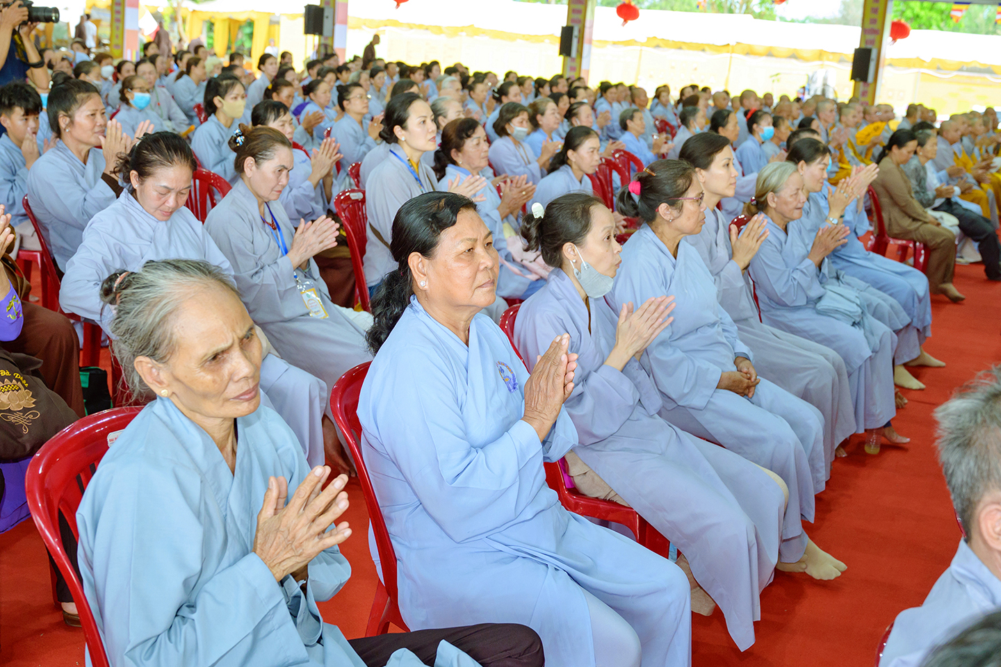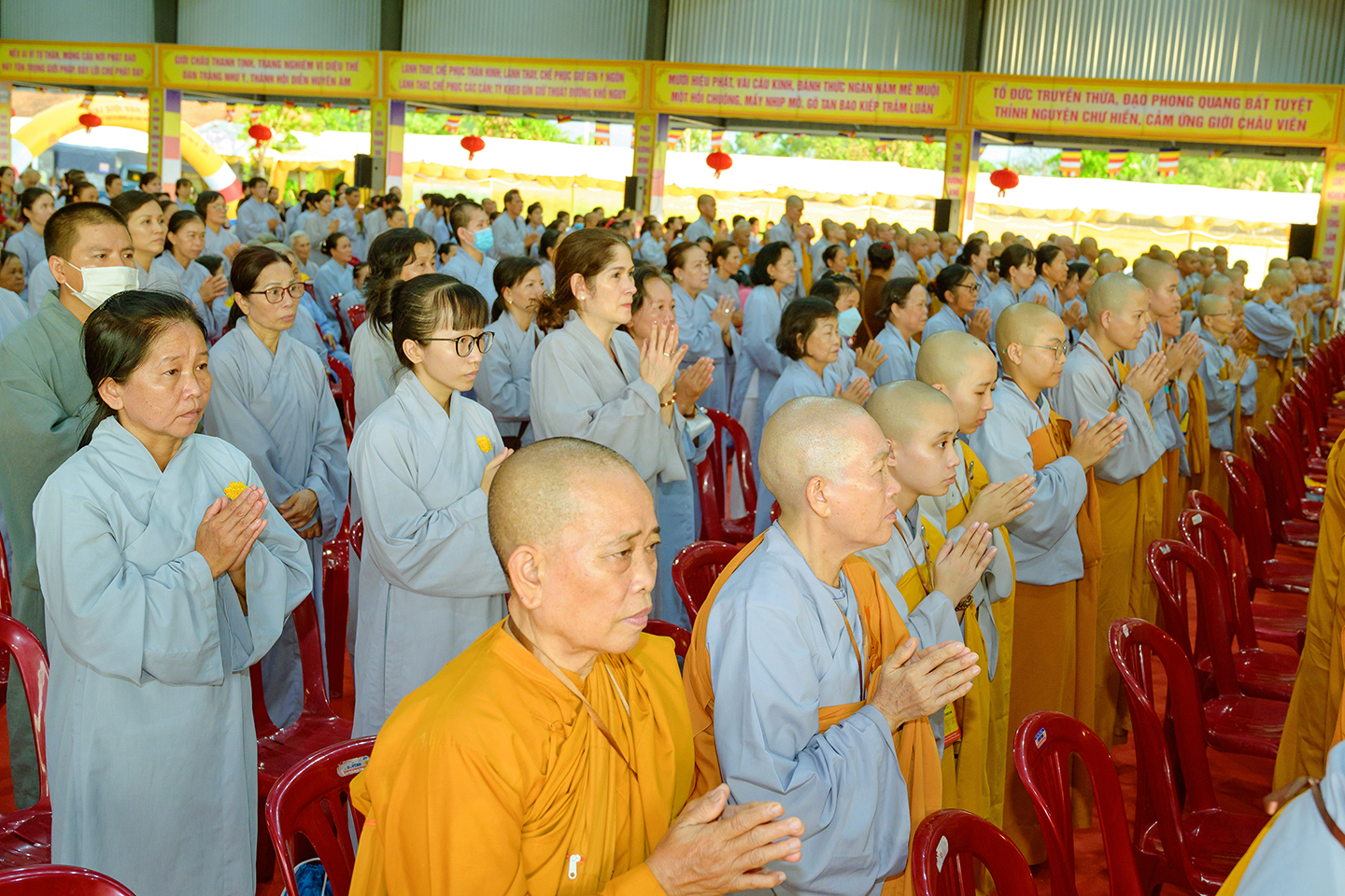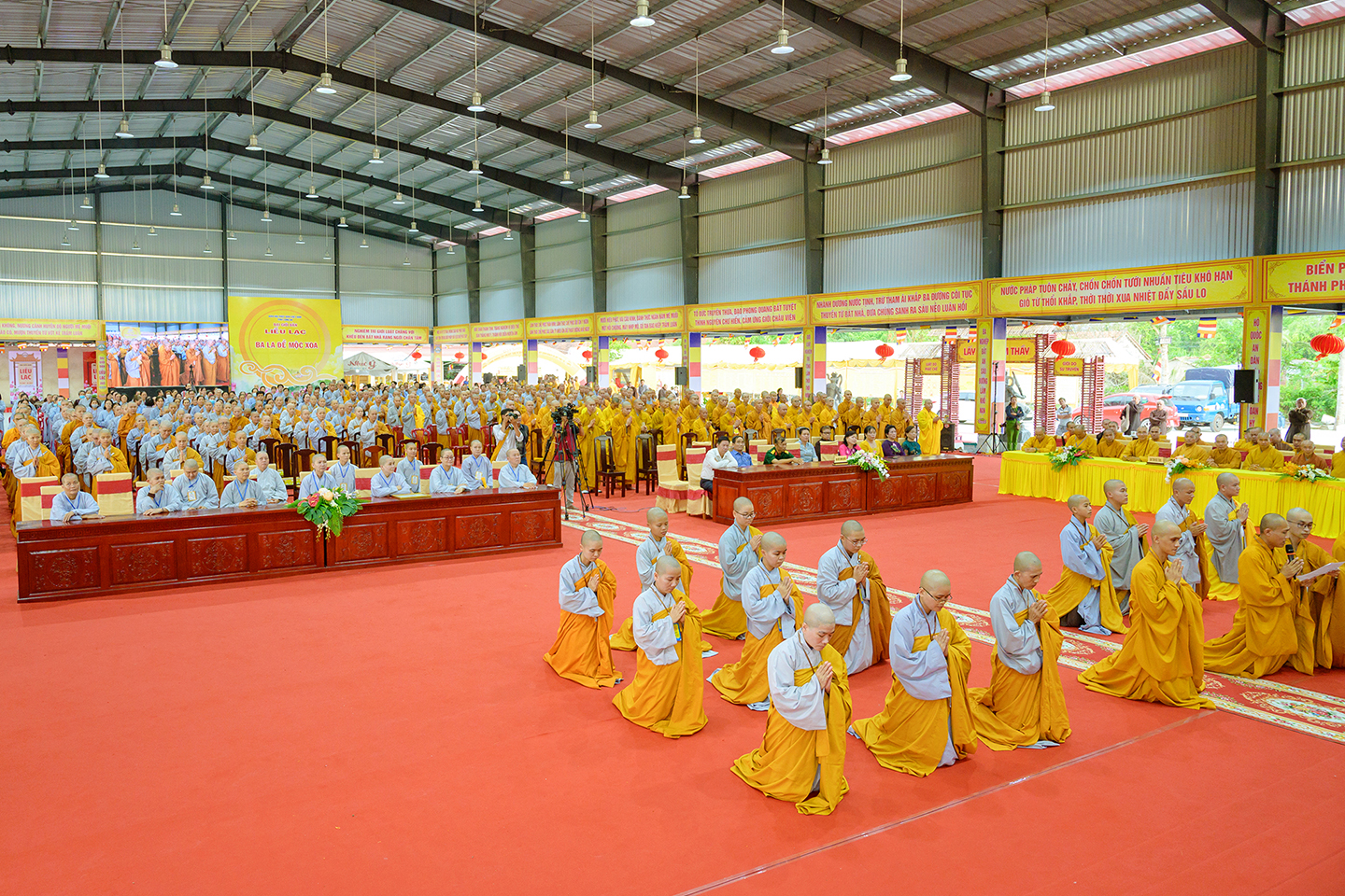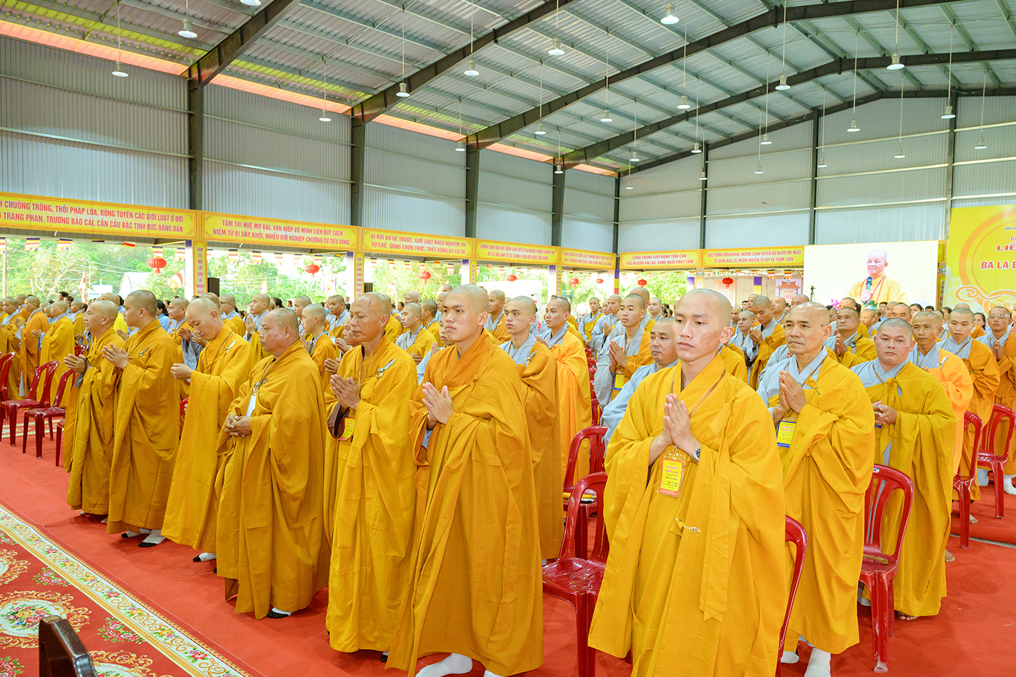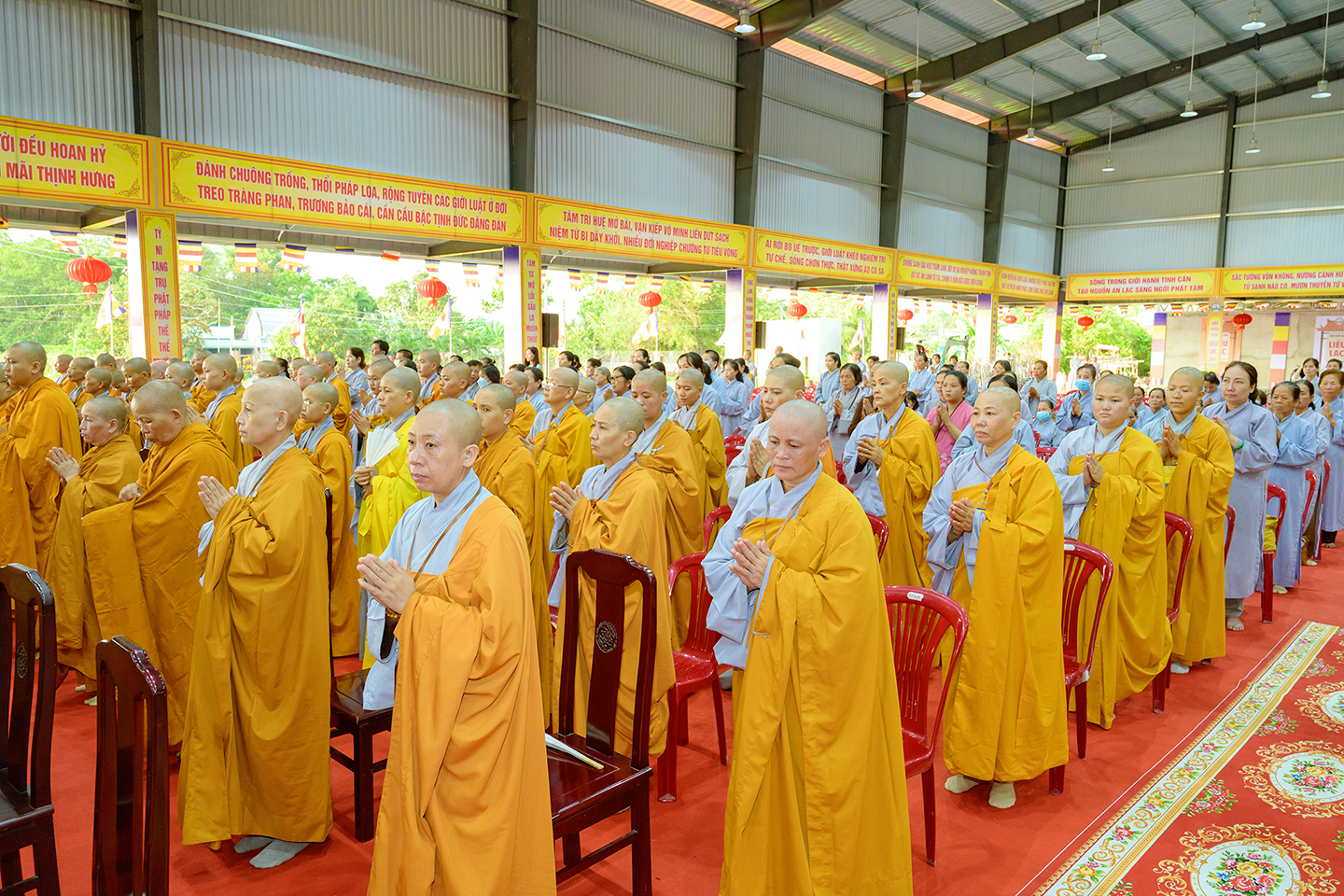 Chiều ngày 24/05/2023 nhằm ngày mùng 6/4 năm Quý Mão, theo chương trình Đại Giới đàn Liễu Lạc, Ban Tổ chức đã long trọng làm Lễ bế mạc Đại giới đàn Liễu Lạc sau 4 ngày diễn ra từ 21/05 đến 24/05/2023, nay đã được thành tựu viên mãn. Chứng minh buổi lễ với sự hiện diện, tham dự của: HT. Thích Thiện Huệ, Thành viên HĐCM, Chứng minh BTS GHPGVN tỉnh Long An; HT. Thích Lãng Huỳnh, Thành viên HĐCM, Tông trưởng Thiên Thai Giáo Quán; HT. Thích Huệ Hồng – Chứng minh BTS GHPGVN tỉnh Long An; HT. Thích Minh Thiện – UV HĐTS, Trưởng BTS GHPGVN tỉnh Long An, Trưởng ban Tổ chức Đại giới đàn; HT. Thích Phước Toàn – Chứng minh BTS GHPGVN quận Bình Tân; HT. Thích Thiện Pháp – Phó Trưởng ban Thường trực Ban Thừa kế Thiên Thai Thiền Giáo Tông, Chư tôn đức Phó BTS GHPGVN tỉnh Long An: HT. Thích Tắc Phi, TT. Thích Quảng Tâm, TT. Thích Minh Thọ, TT. Thích Lệ Trí, TT. Thích Đức Hoàng, ĐĐ. Thích Lệ Duyên, ĐĐ. Thích Lệ Ngôn, NT. TN. Gương Liên, NT. TN. Như Tâm, cùng chư tôn đức Hội đồng Thập sư, Ban Kiến đàn, Ban Trị sự tỉnh, huyện thị, thành và các Giới tử đã thọ nhận giới pháp cùng đông đảo quý Phật tử gần xa đồng tham dự. Về phía chính quyền có ông Phạm Văn Đồng, UV BTV Huyện ủy, Trưởng ban Dân vận huyện Đức Hòa; ông Nguyễn Văn Đạo, UV BTV Huyện ủy, Chủ tịch UB MTTQVN huyện; bà Trịnh Thị Ngọc Thanh – Phó Bí thư Đảng ủy, Chủ tịch HĐND xã Mỹ Hạnh Nam, cùng đại diện các cấp lãnh đạo chính quyền huyện Đức Hòa, xã Mỹ Hạnh Nam sở tại. ĐĐ. Thích An Nhựt, thay mặt Ban Kiến đàn báo cáo kết quả tổ chức Đại Giới đàn Liễu Lạc năm 2023. Đại Giới đàn diễn ra trong 4 ngày, từ ngày 21/5 đến 24/05/2023 nhằm ngày mùng 03 đến mùng 06/04 năm Quý Mão, với 349 Giới tử trúng tuyển kì thi khảo hạch. Trong đó, giới tử Tỳ kheo là 65 vị, Sa di là 105 vị, giới tử Tỳ kheo ni là 63 vị, Thức xoa ma na là 48 vị, Sa di ni là 68 vị. Đại Giới đàn lần này có 242 Giới tử xuất gia và tại gia phát tâm thọ Bồ tát giới.