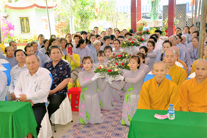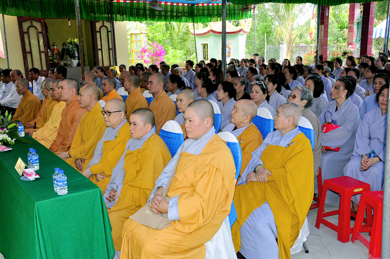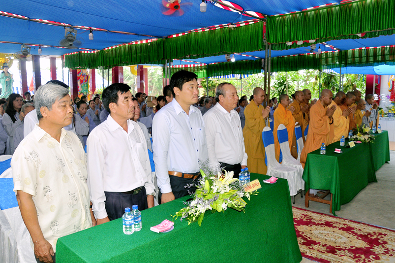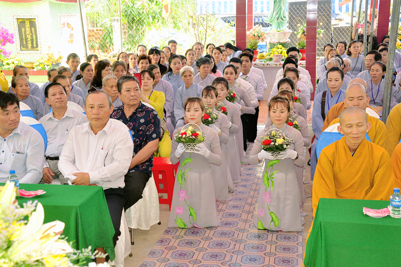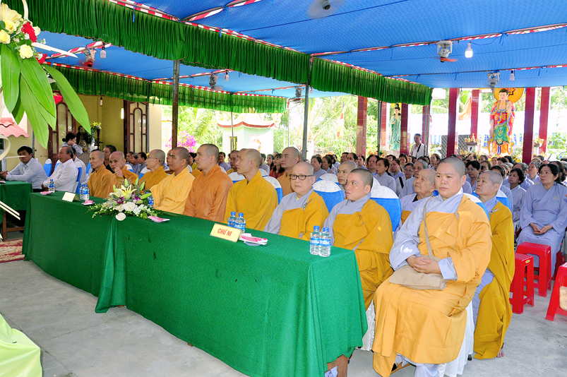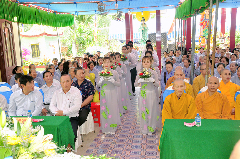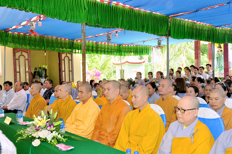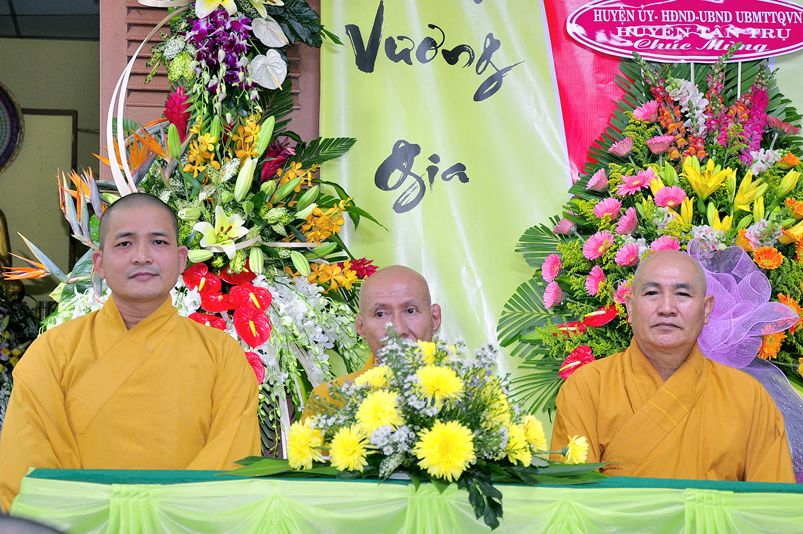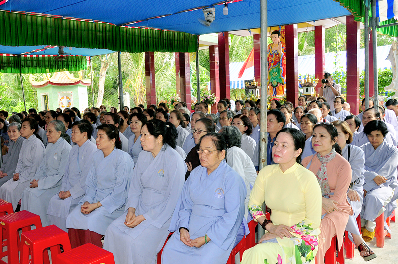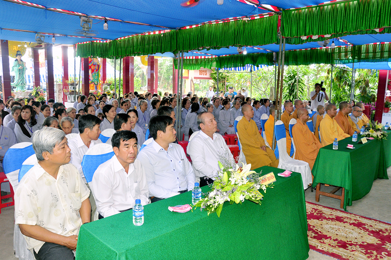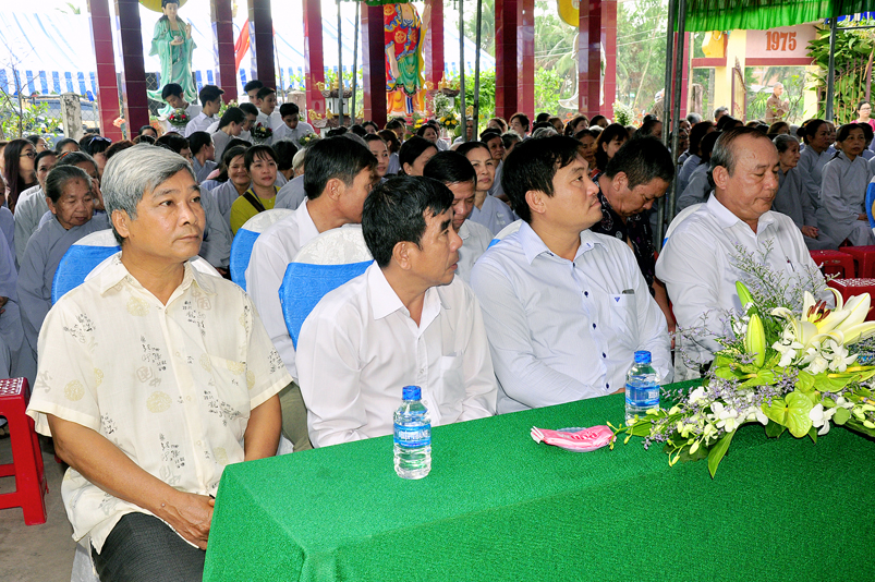 Về phía Chính quyền: ông Võ Văn Huyện – Phó Chủ tịch UBND huyện Tân Trụ; ông Châu Thành Tiến – Phó Trưởng phòng Nội vụ huyện Tân Trụ; ông Lê Văn Biên – cán bộ MTTQ huyện Tân Trụ; ông Nguyễn Thanh Phong – UBND xã Đức Tân cùng 500 Phật tử đồng về tham dự.