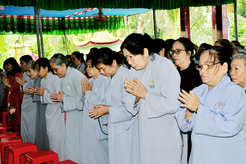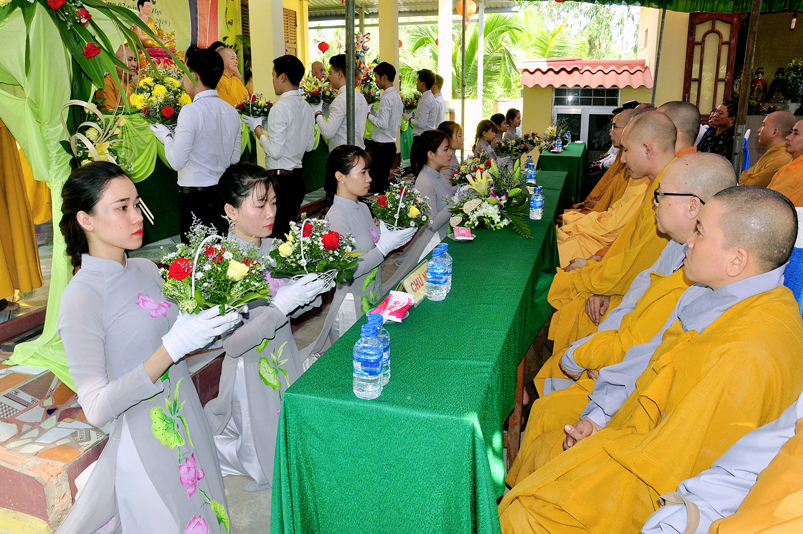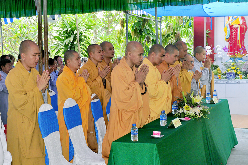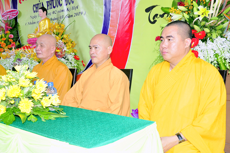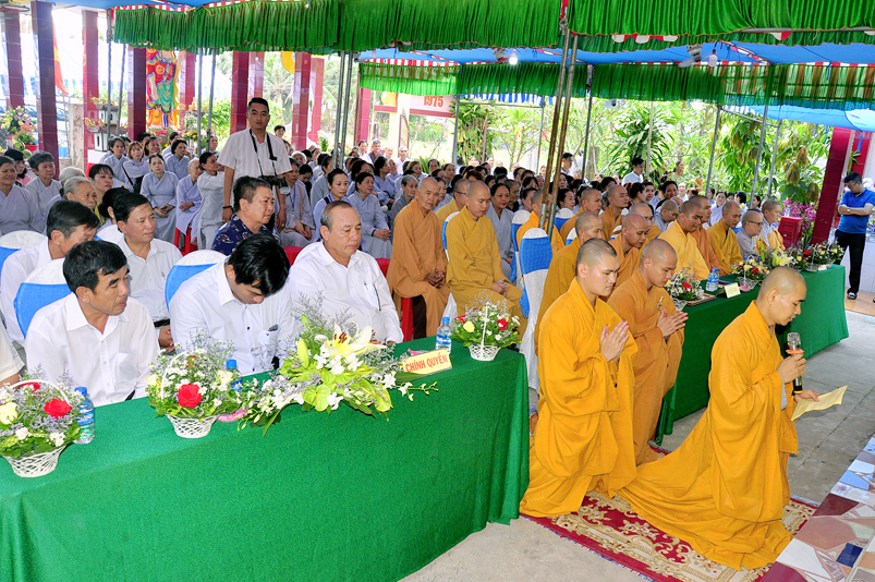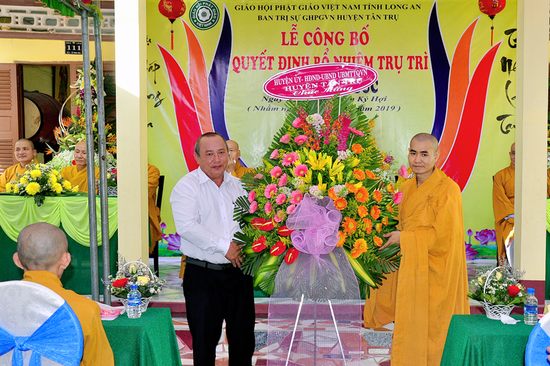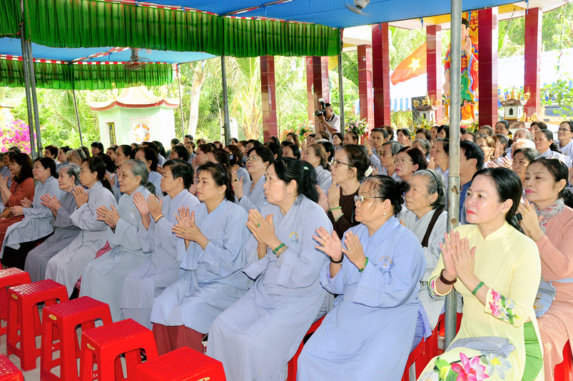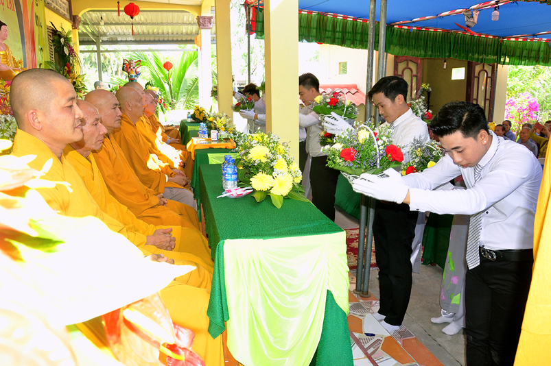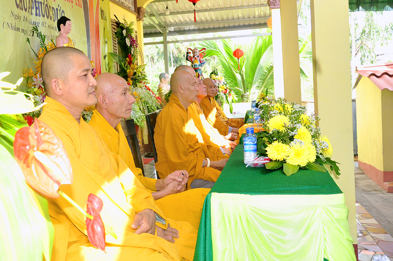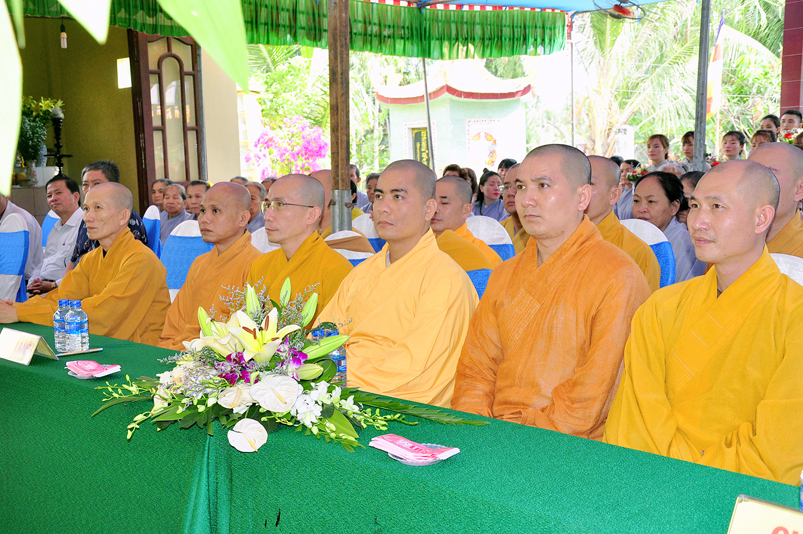 Về phía Chính quyền: ông Võ Văn Huyện – Phó Chủ tịch UBND huyện Tân Trụ; ông Châu Thành Tiến – Phó Trưởng phòng Nội vụ huyện Tân Trụ; ông Lê Văn Biên – cán bộ MTTQ huyện Tân Trụ; ông Nguyễn Thanh Phong – UBND xã Đức Tân cùng 500 Phật tử đồng về tham dự.