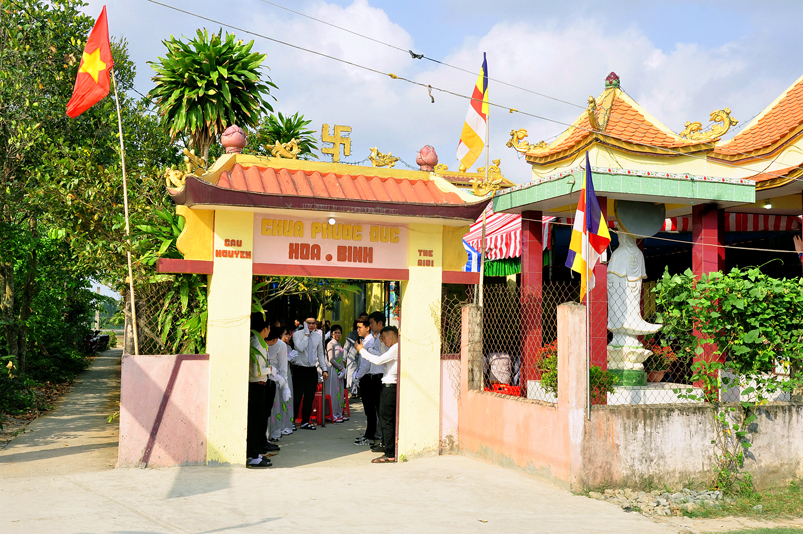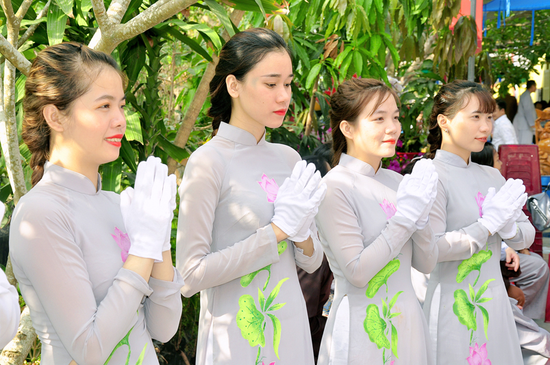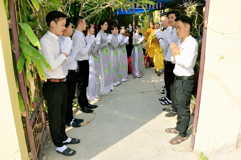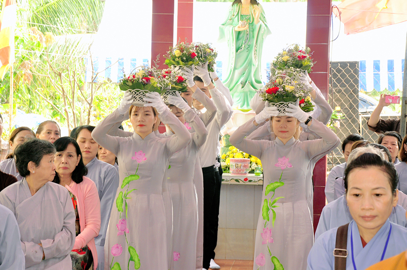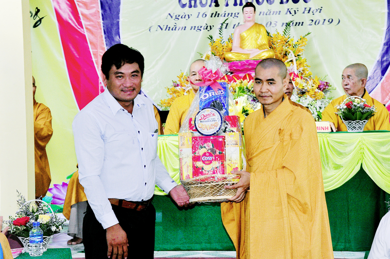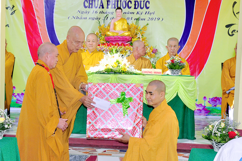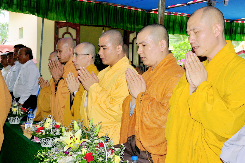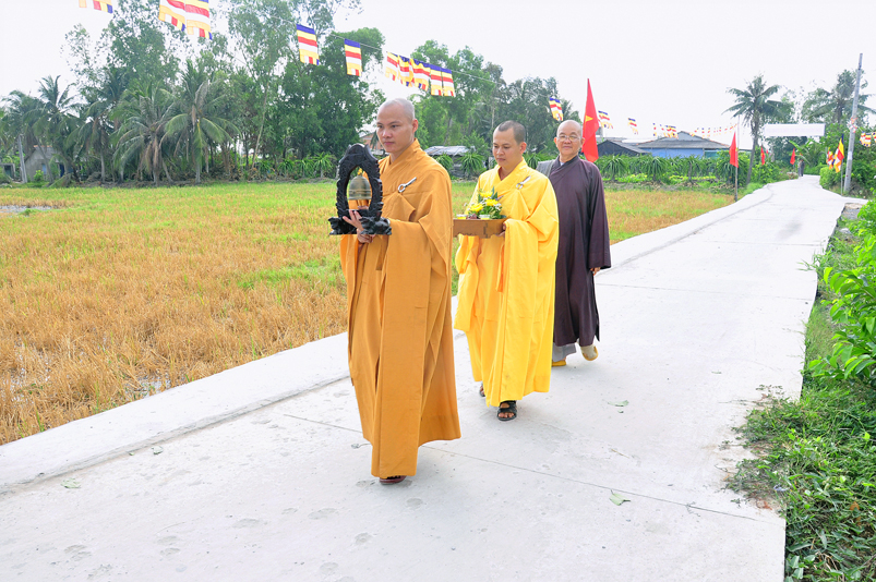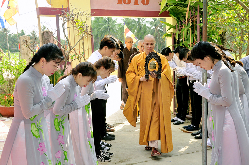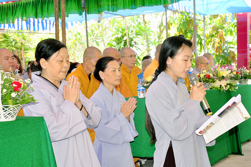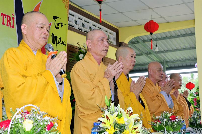Về phía Chính quyền: ông Võ Văn Huyện – Phó Chủ tịch UBND huyện Tân Trụ; ông Châu Thành Tiến – Phó Trưởng phòng Nội vụ huyện Tân Trụ; ông Lê Văn Biên – cán bộ MTTQ huyện Tân Trụ; ông Nguyễn Thanh Phong – UBND xã Đức Tân cùng 500 Phật tử đồng về tham dự.