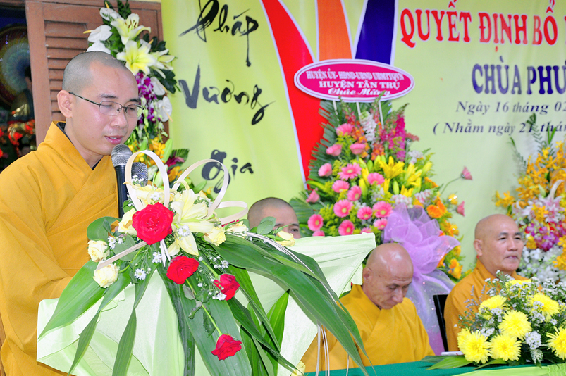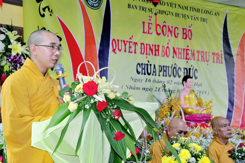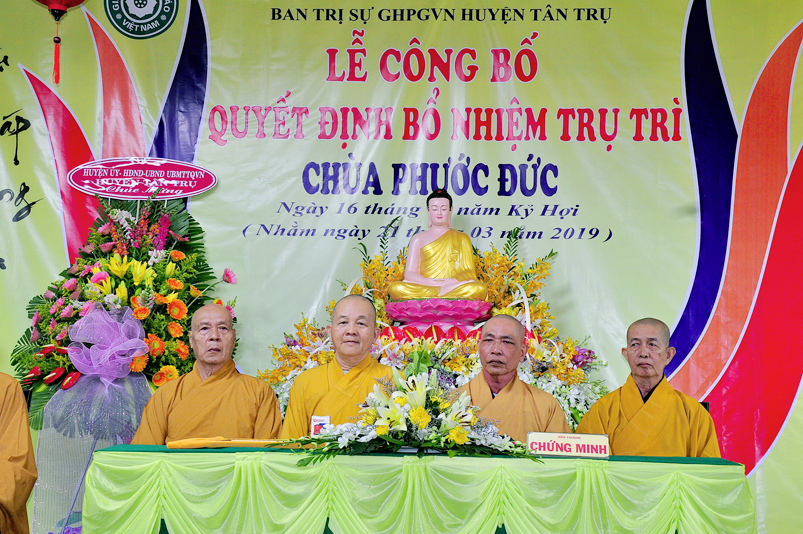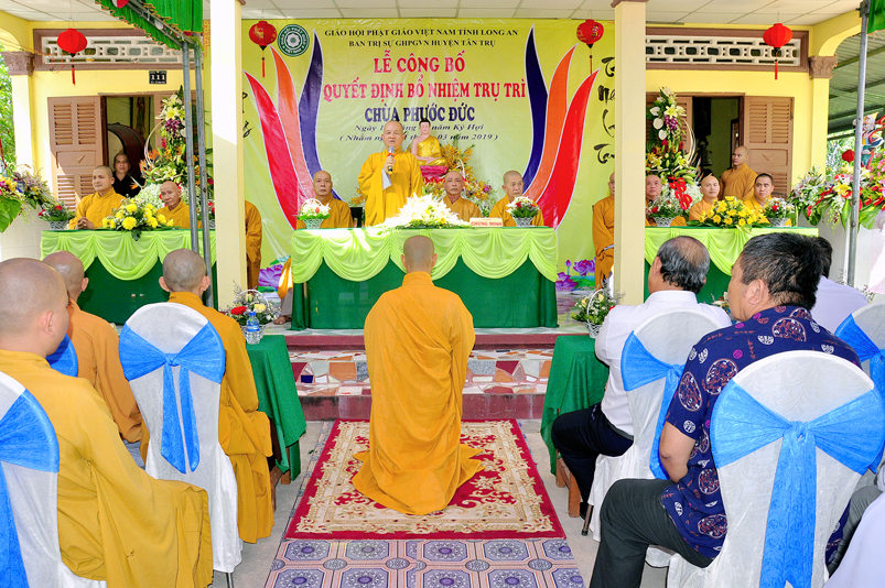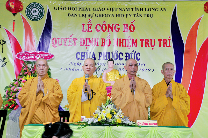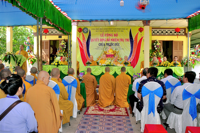 Sáng ngày 21/03/2018 ( 16/02/Kỷ Hợi), tại chùa Phước Đức, xã Đức Tân, huyện Tân Trụ, tỉnh Long An trang nghiêm, long trọng tổ chức Lễ công bố quyết định bổ nhiệm trụ trì cho Đại đức Thích Minh Anh.