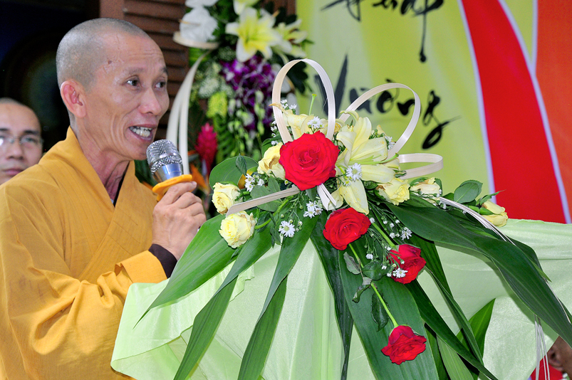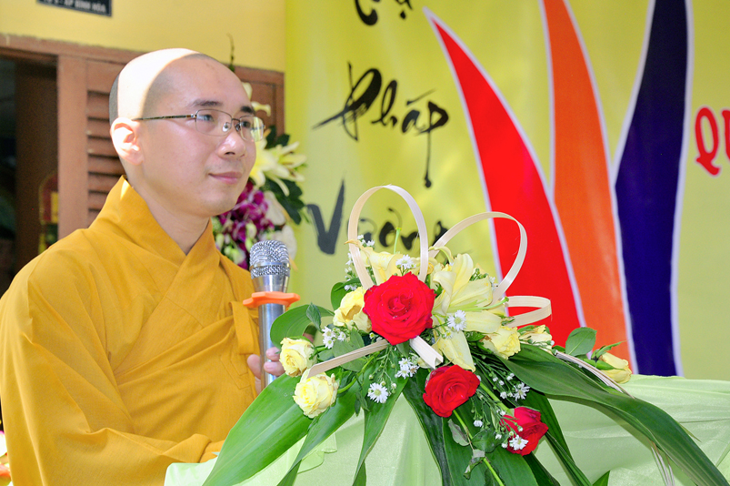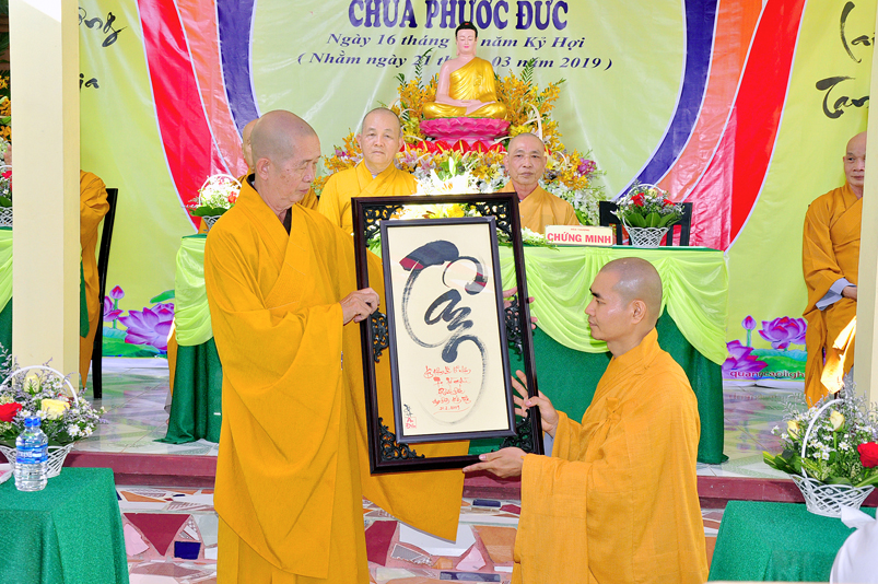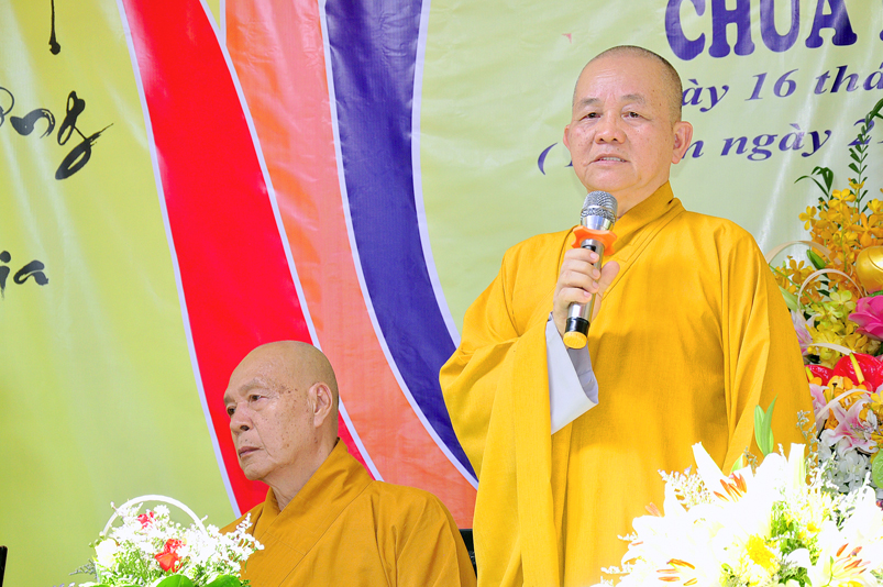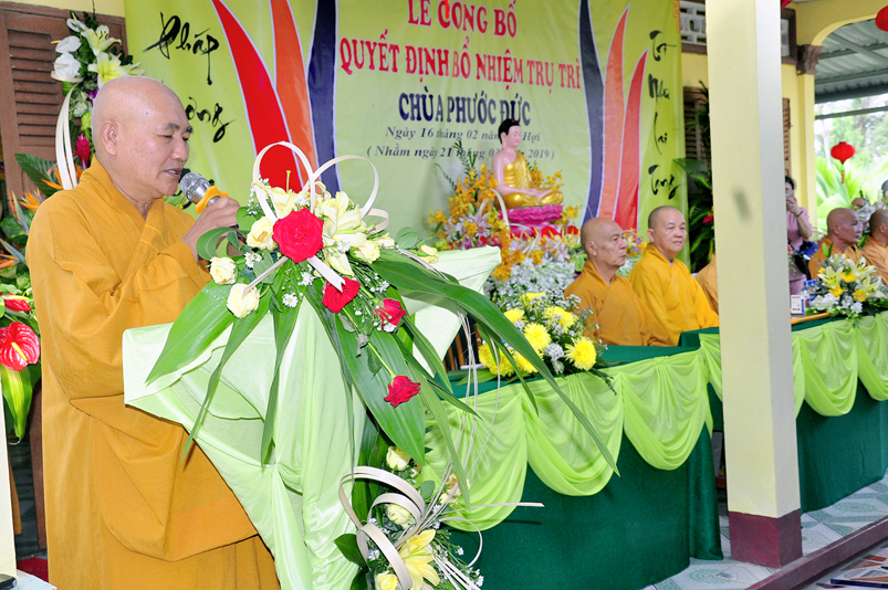 Cuối chương trình, HT. Thích Minh Thiện- Ủy viên Hội Đồng Trị Sự (HĐTS), Phó Trưởng ban Hoằng pháp Trung Ương ( TƯ); Trưởng Ban Trị sự GHPGVN tỉnh Long An từ mẫn ban Đạo từ cho buổi lễ. Hoà thượng nhắc lại ý nghĩa thiêng liêng của một người trụ trì “ Trụ pháp Vương gia; Trì Như Lai tạng”; Chùa là ngôi nhà Văn hoá của toàn xã hội, theo tinh thần đó, người trụ trì hướng dẫn đời sống chánh tín đúng như lời của Phật, của Tổ, của Giáo Hội Phật giáo Việt Nam; cụ thể là hướng dẫn mọi người tin sâu nhân quả, thiết lập đạo đức xã hội bằng Năm giới cơ bản của Nhà Phật, xây dựng trí tuệ và chánh kiến bằng Bát Chánh Đạo và quy ngưỡng Tam Bảo; hãy nói, làm và ý nghĩ đem đến lợi ích cho mình và cho người.