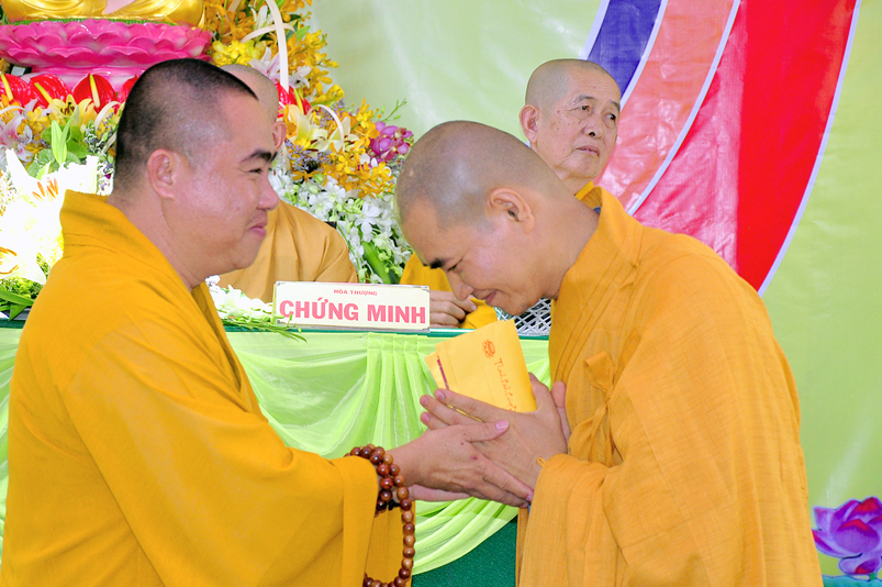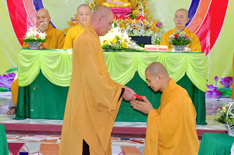 Trong chương trình, Đại đức Thích Minh Anh, Đại đức xin niệm ân chư Tôn đức đa công giáo dưỡng để có được sự trưởng thành trong ngôi nhà Phật pháp, và Đại đức xin phát nguyện nghiêm trì giới luật, tu tập và phụng sự theo Hiến chương của GHPGVN và Pháp luật Nhà Nước.