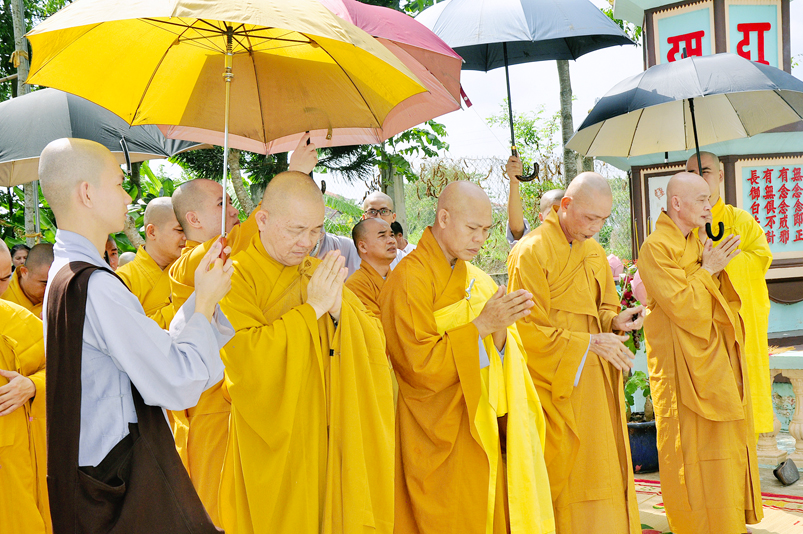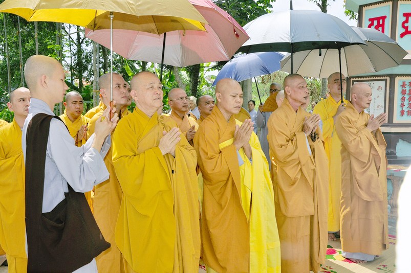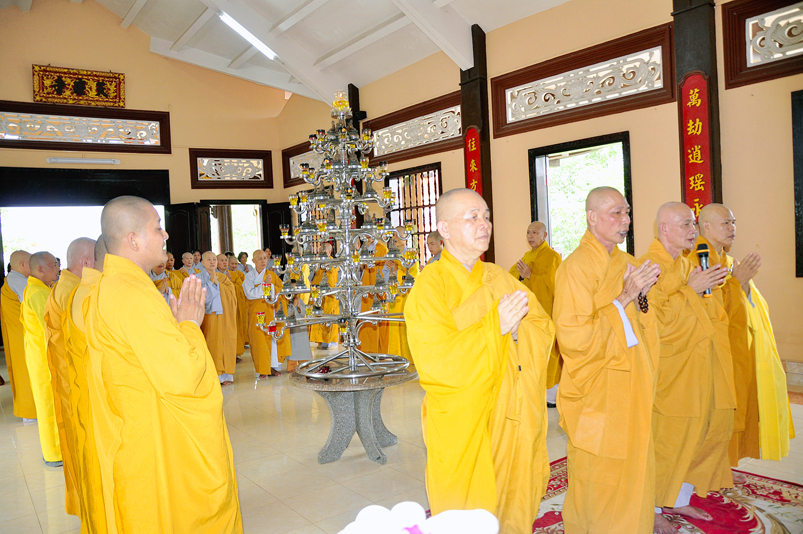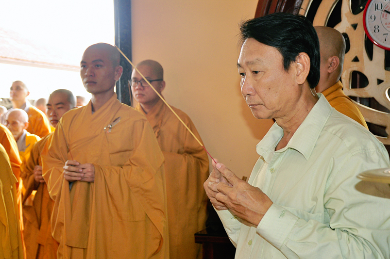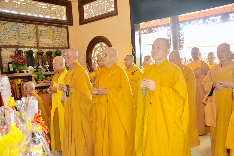 Chứng minh tham dự có HT. Thích Thiện Huệ- Chứng minh Ban trị sự GHPGVN tỉnh Long An; HT. Thích Minh Thiện- Ủy viên HĐTSTƯ, Phó Ban Hoằng pháp trung ương GHPGVN, Trưởng Ban trị sự GHPGVN tỉnh Long An; TT. Chơn Đạo- Giáo thọ trường trung cấp Phật học Long An cùng Chư tôn đức  trụ trì các tự viện trong Tp. Tân An và hơn 200 Phật tử tham dự.