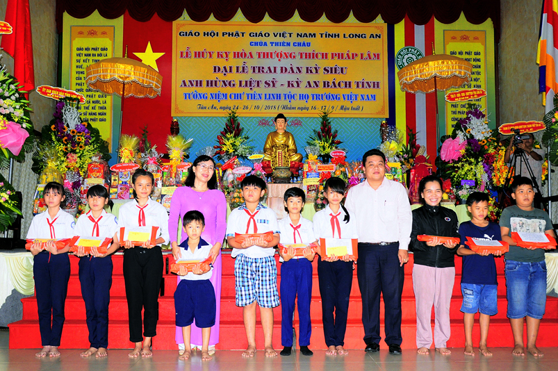Nhân ngày húy kỵ cố Hòa thượng (HT) Thích Pháp Lâm và để tỏ lòng tri ân chư vị tiền bối hữu công với Đạo pháp – Dân tộc, những anh hùng liêt sĩ, đồng bào tử nạn, đồng thời tưởng niệm chư tiên linh và chúc phúc cho tộc họ Trương Việt Nam, Hòa thượng Thích Minh Thiện – Ủy viên Hội đồng Trị sự (HĐTS), Phó Trưởng ban Hoằng pháp Trung ương ( TƯ) Giáo hội Phật giáo Việt Nam (GHPGVN), Trửng ban Trị sự GHPGVN tỉnh Long An, Trưởng ban tổ chức Đại lễ cùng chư Tăng chùa Thiên Châu – 101 Huỳnh Văn Nhứt, phường 3, thành phố Tân An, tỉnh Long An đã long trọng  tổ chức Trai đàn Chẩn tế – kỳ siêu bạt độ và kỳ an bách tính theo truyền thống Phật giáo.