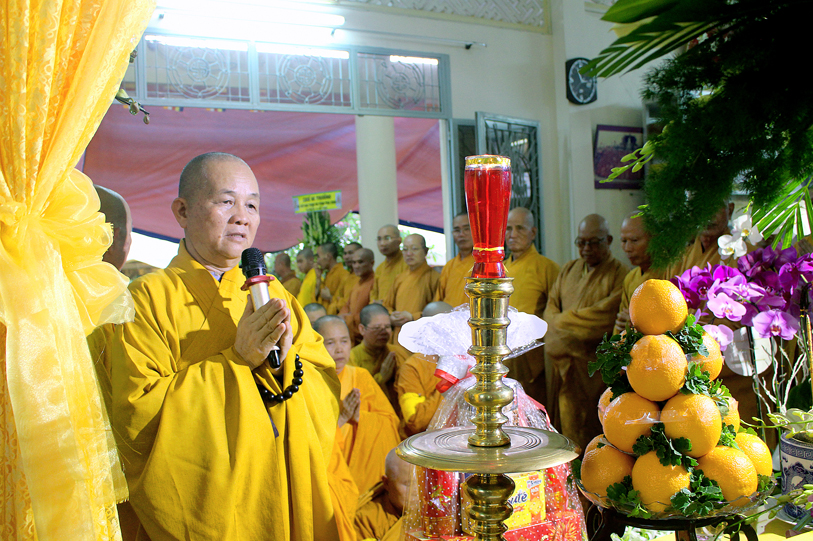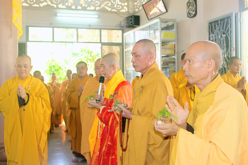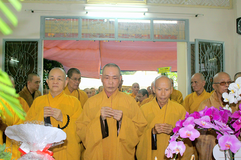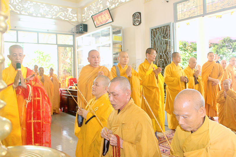 Thành phần chư Tôn đức tham dự và chứng minh buổi lễ: HT.Thích Huệ Hồng – Chứng minh BTS GHPGVN tỉnh Long An; HT. Thích Thiện Huệ – Chứng minh BTS GHPGVN tỉnh Long An; HT. Thích Minh Thiện- Ủy viên HĐTS, Phó Trưởng ban Hoằng pháp TW, Trưởng Ban Trị sự GHPGVN tỉnh Long An; HT. Thích Thiện Tài – Phó BTS, Trưởng Ban Nghi Lễ GHPGVN tỉnh Long An; TT.Thích Quảng Tâm – Phó thường trực Ban Trị sự GHPGVN tỉnh Long An; TT. Thích Giác Nguyên – Phó Ban Trị sự GHPGVN tỉnh Long An, chư Tôn đức trong BTS GHPG thành phố Tân An tỉnh Long An, cùng chư tôn đức trụ trì các tự viện trong tỉnh.