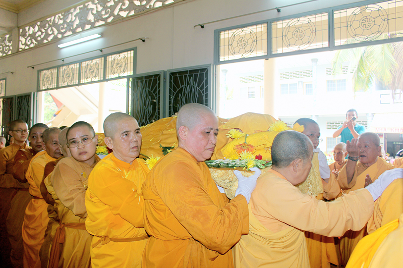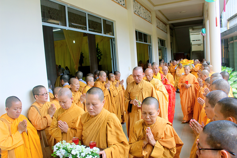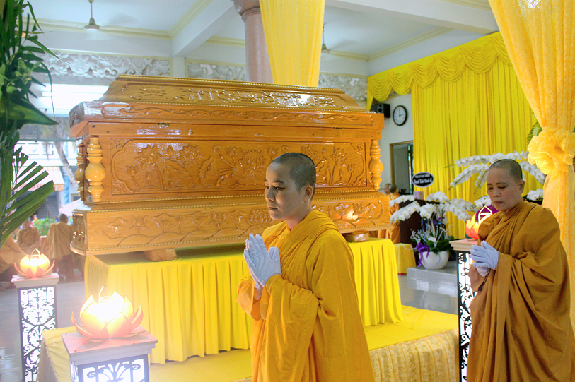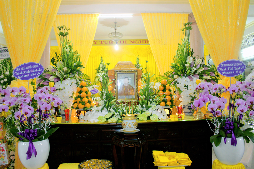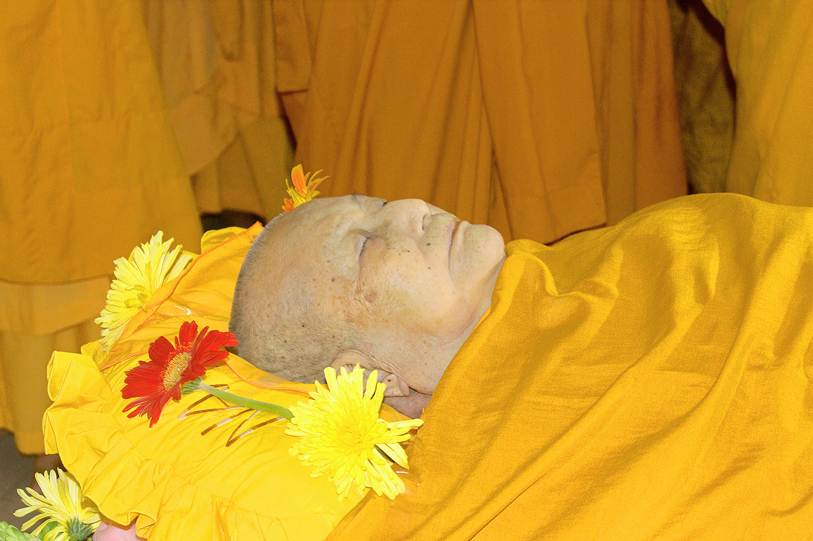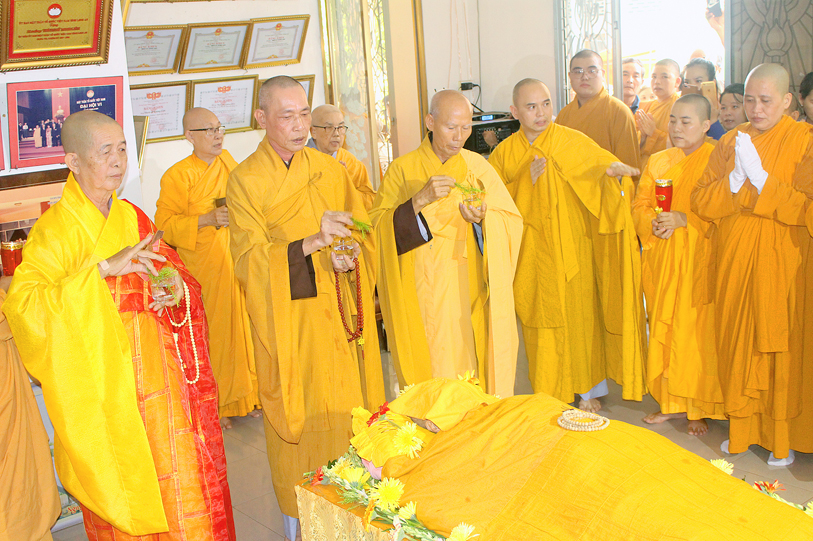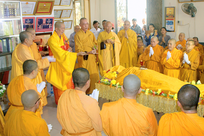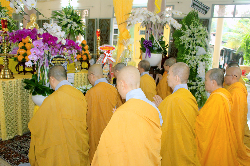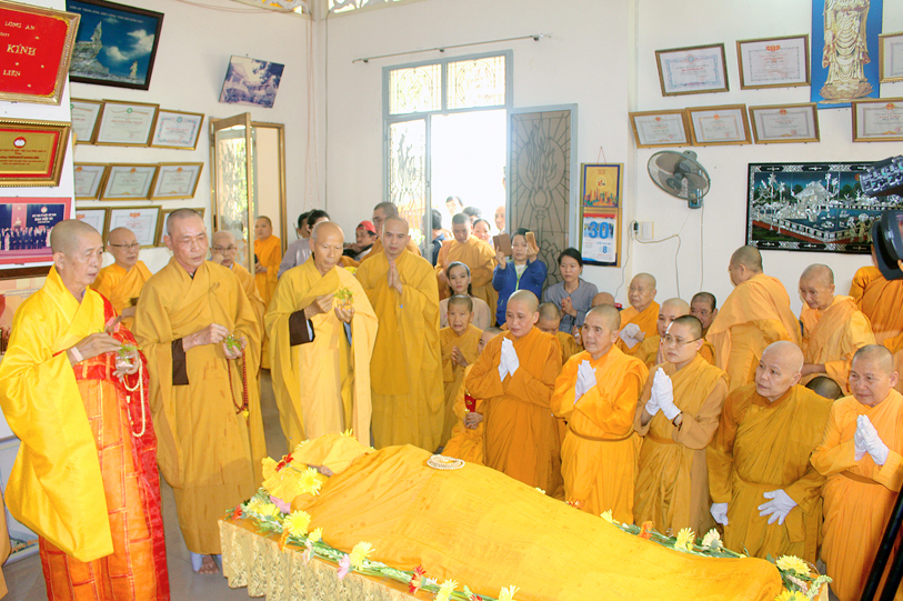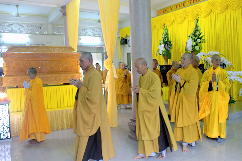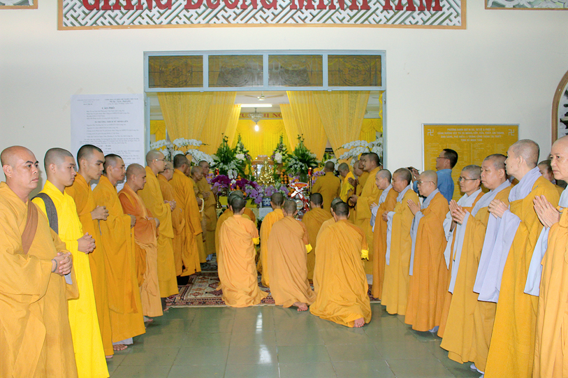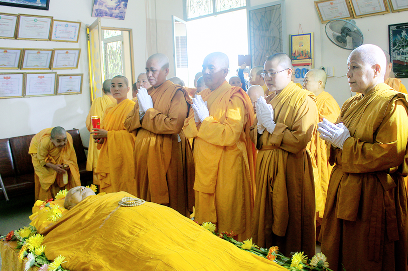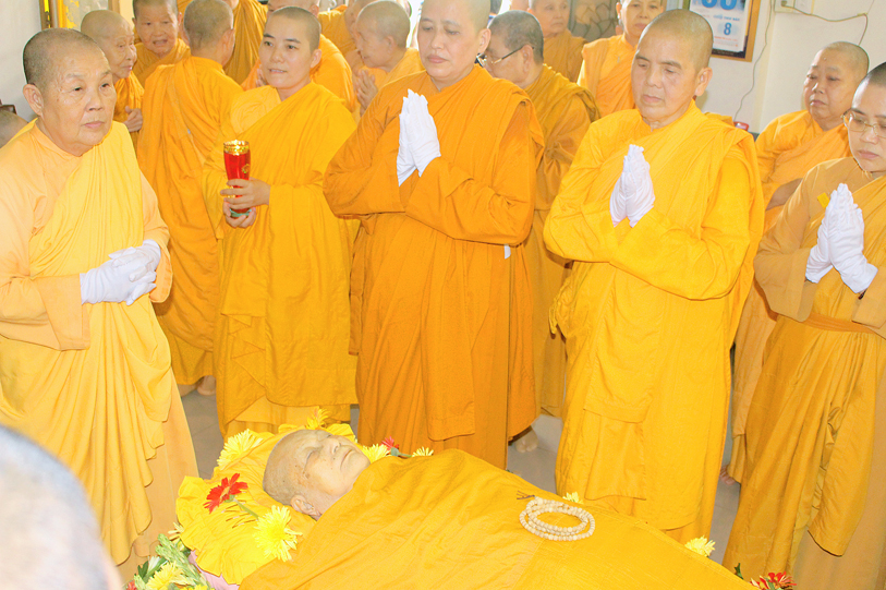 Sau đó, môn đồ pháp quyến đảnh lễ Giác linh Ni trưởng và thọ tang.
