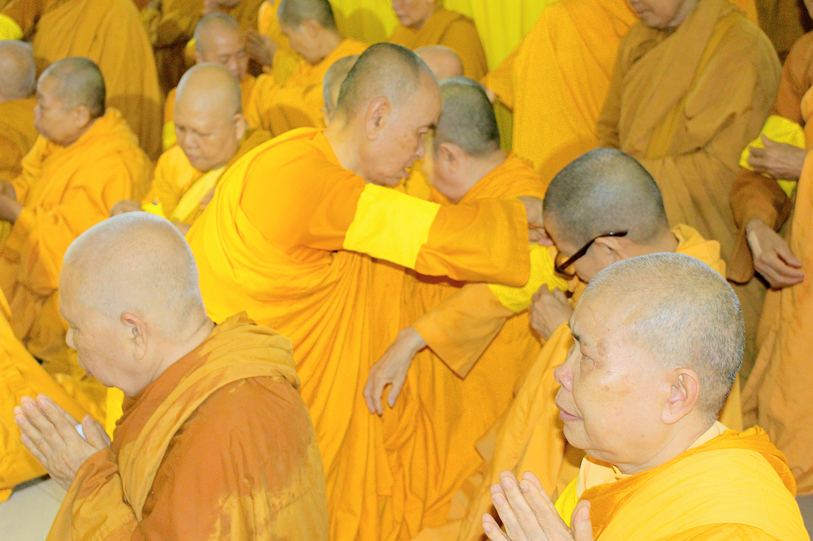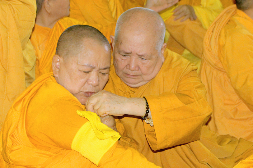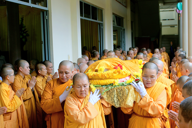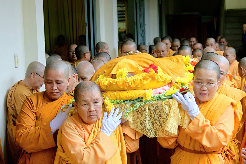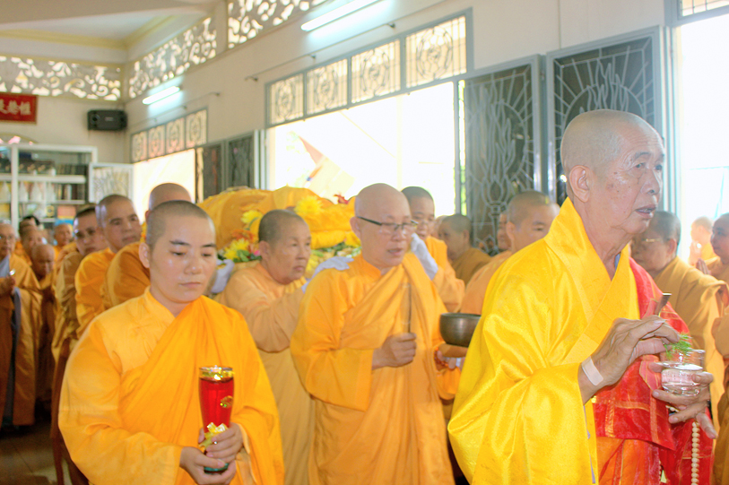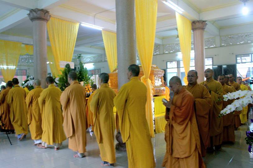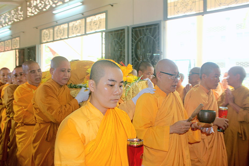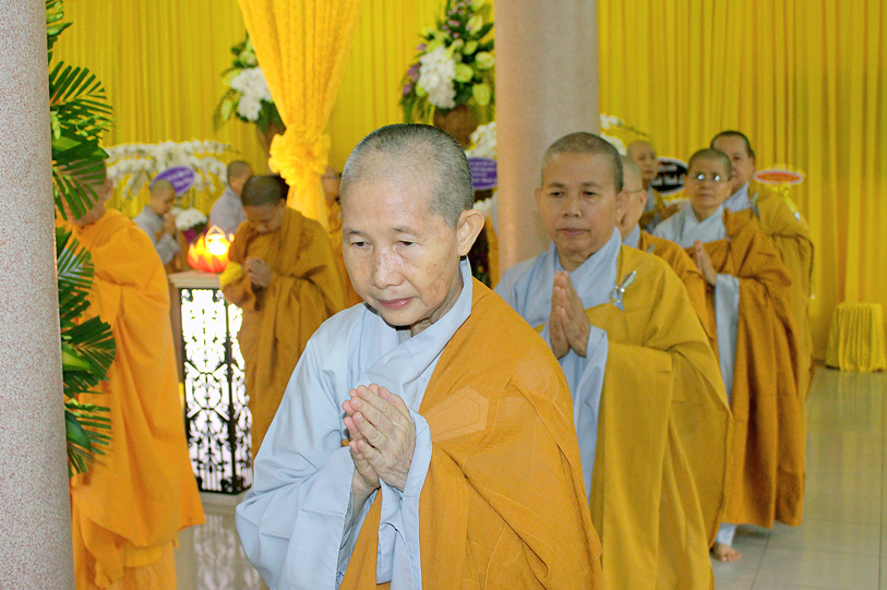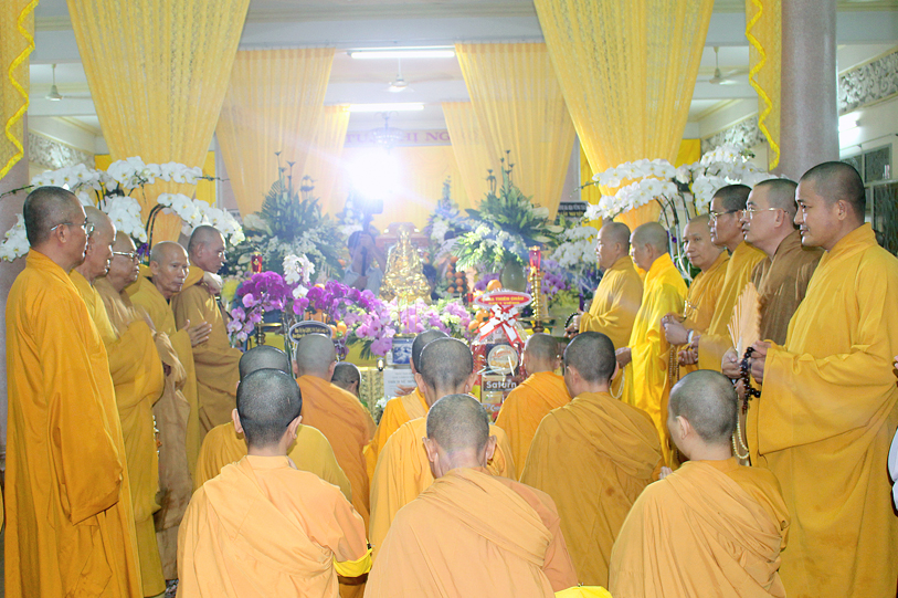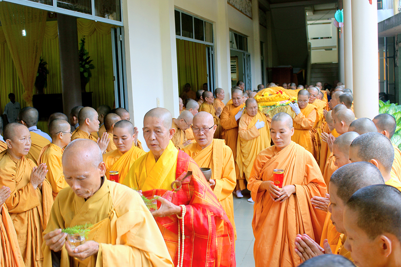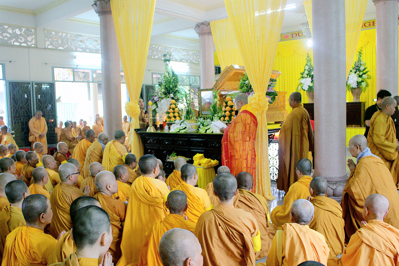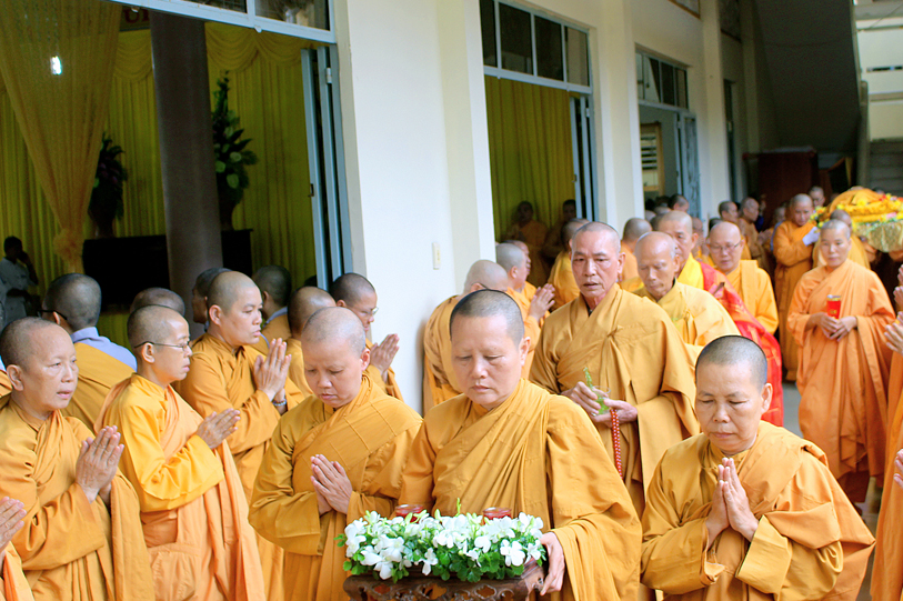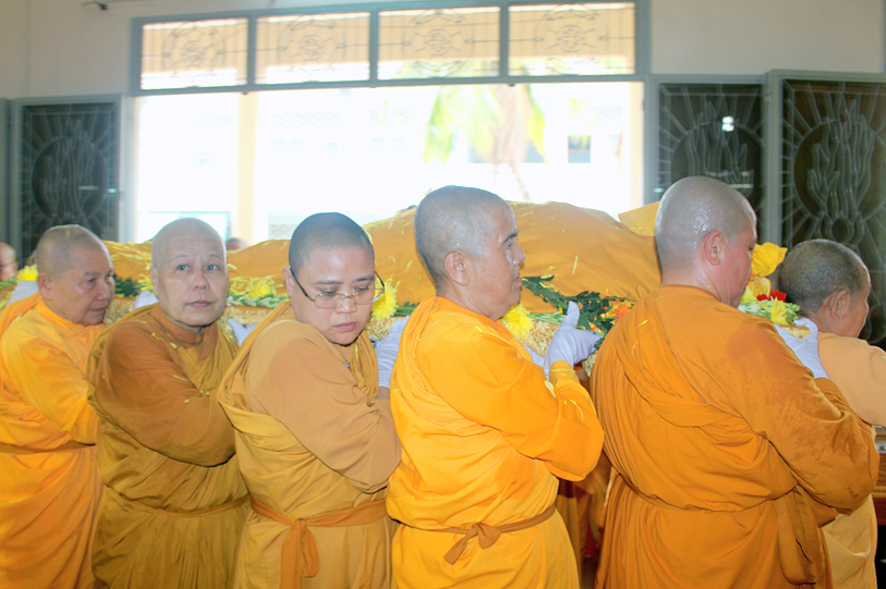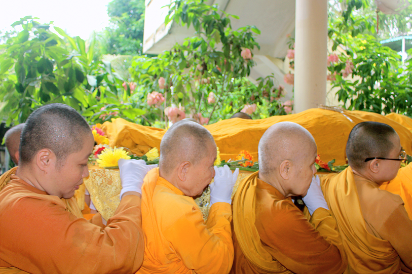 Sau đó, môn đồ pháp quyến đảnh lễ Giác linh Ni trưởng và thọ tang.