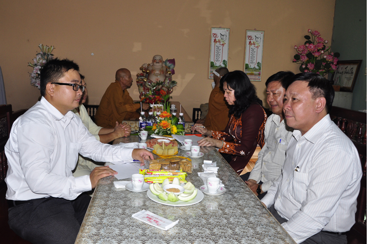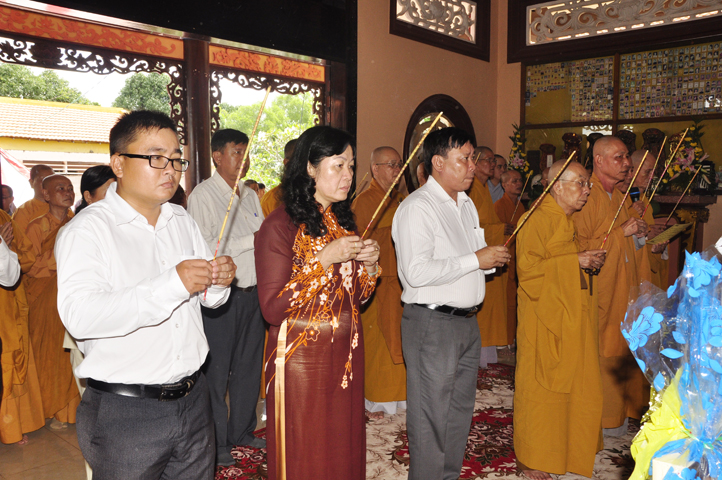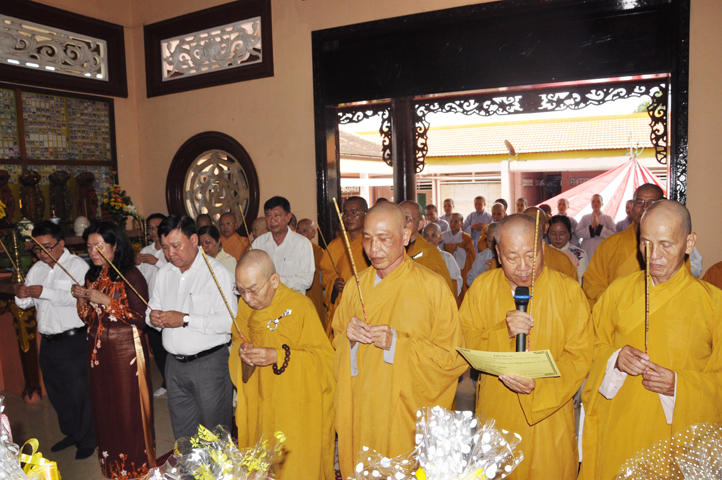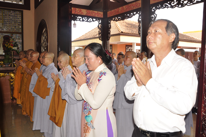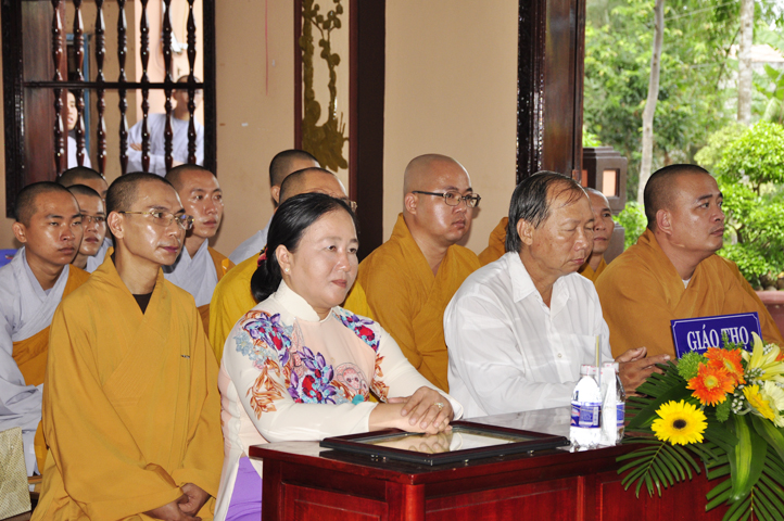 Buổi lễ được cung nghinh chư Tôn đức Giáo phẩm: HT. Thích Thiện Đức – Ủy viên HĐTSTW ; HT Thích Phước Toàn –UV Ban nghi lễ TW, Viện chủ chùa Vạn Đức, Quận Bình Tân; HT. Thích Minh Thiện – UV HĐTS TW, Trưởng Ban Trị sự GHPGVN- Hiệu trưởng Trường Trung cấp Phật học Long An; HT. Thích Thiện Huệ – CM Ban Trị sự GHPGVN tỉnh Long An; HT. Thích Thiện Tâm – Phó Ban Trị sự GHPGVN; TT. Thích Minh Thọ – Thường trực Ban Trị sự GHPGVN tỉnh Long An; HT. Thích Huệ Hồng – Phó ban Trị sự GHPGVN tỉnh Long An; HT. Thích Quảng Ý – UV Ban Trị sự -Trưởng Ban Trị sự Liên huyện Kiến Tường, Vĩnh Hưng; HT. Thích Bửu Ứng – Trưởng Ban Trị sự GHPGVN huyện Cần Đước, tỉnh Long An; TT. Thích Từ Thiện – Trưởng Ban Trị sự GHPGVN huyện Tân Trụ; TT. Thích Lệ Tấn; Đ.Đ Thích An Trung; ĐĐ. Thích Lệ Ngôn; TT. Thích Tắc Quảng.
