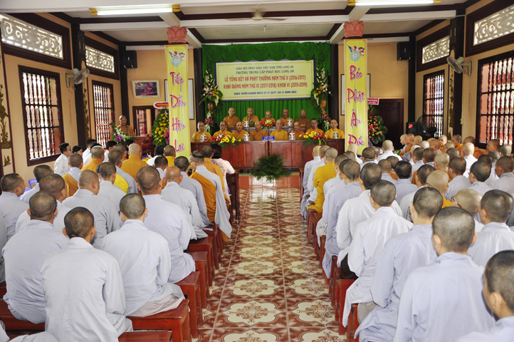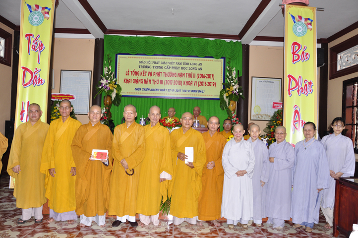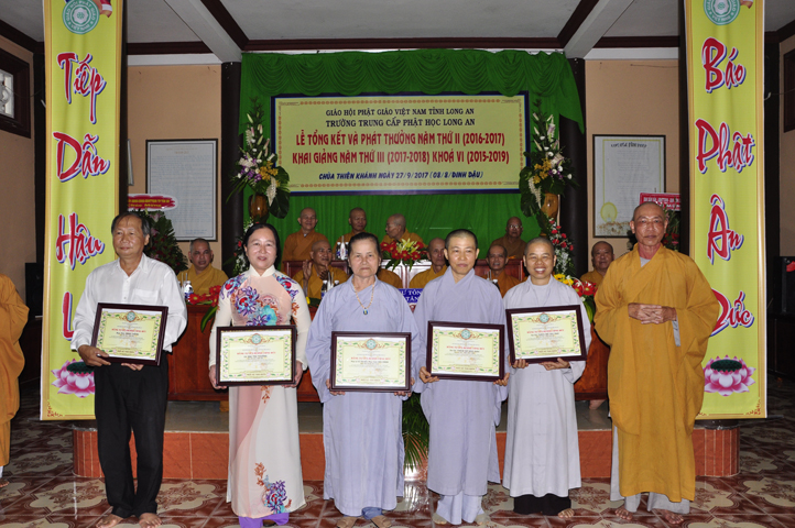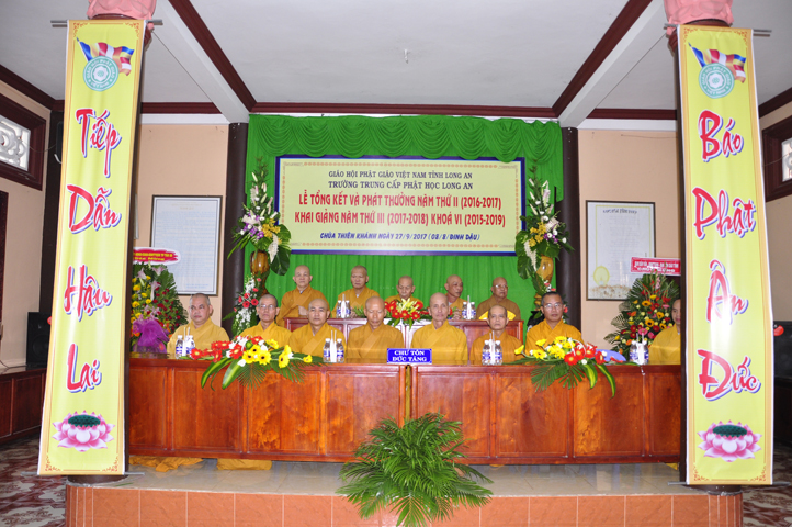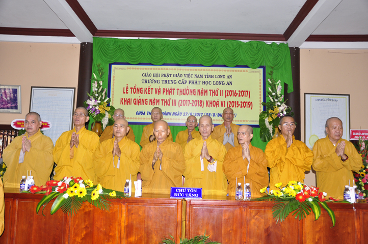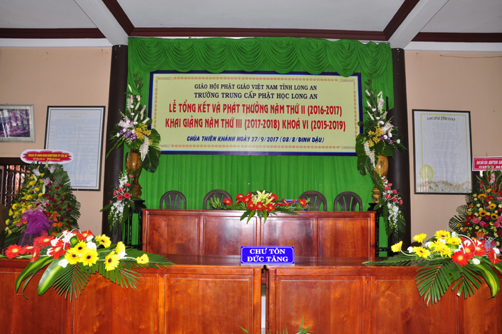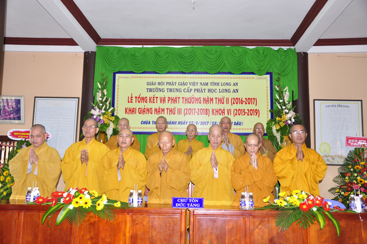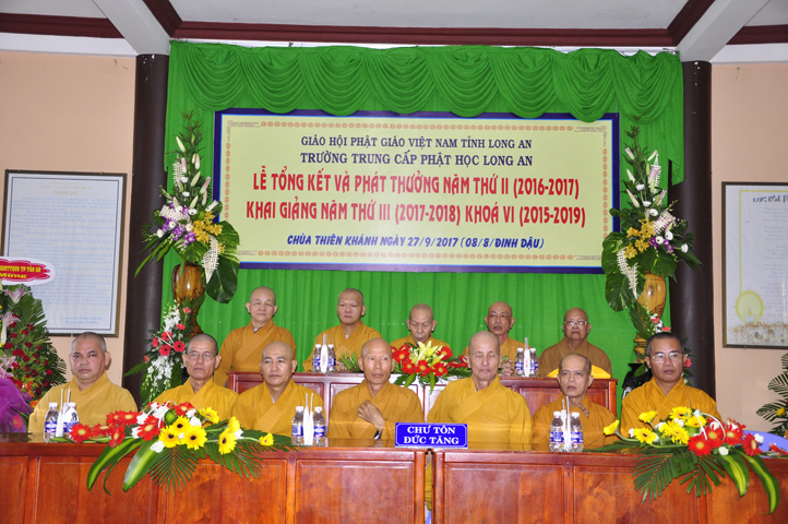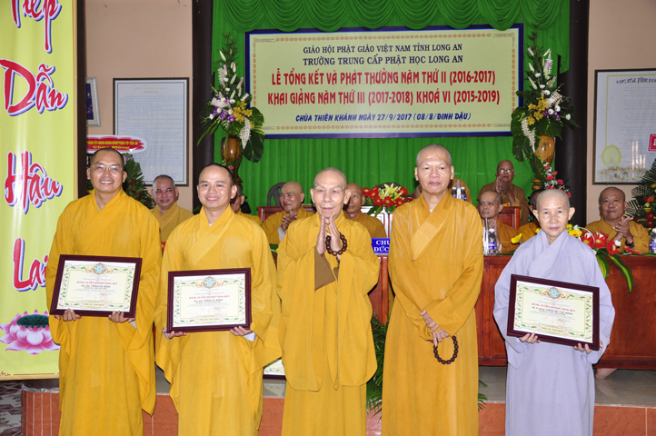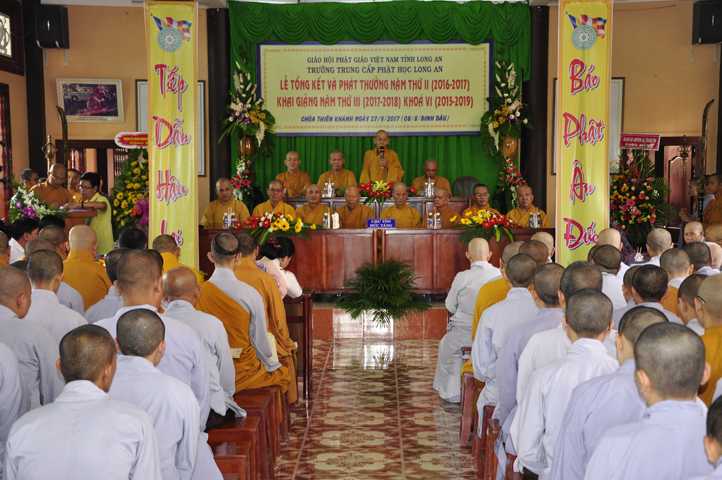 Sáng nay, ngày 27/9/2017 (nhằm ngày mùng 8/8/ Đinh Dậu), tại chùa Thiên Khánh – Trường Trung Cấp Phật học Tỉnh Long An long trọng tổ chức Lễ Tổng Kết và Phát thưởng Năm thứ II (2016-2017), Khai giảng Năm thứ III (2017-2018) Khóa VI (2015-2019).