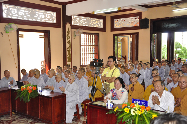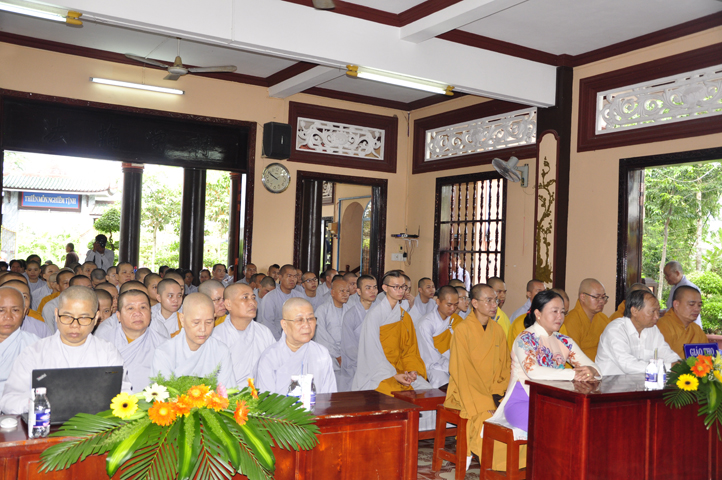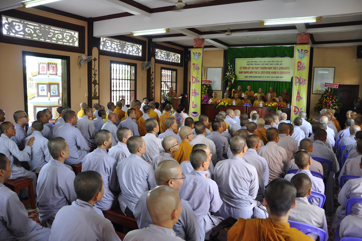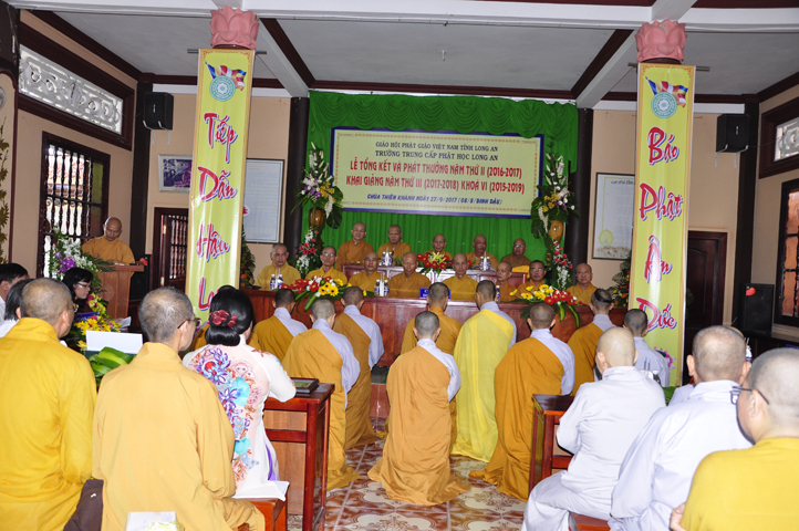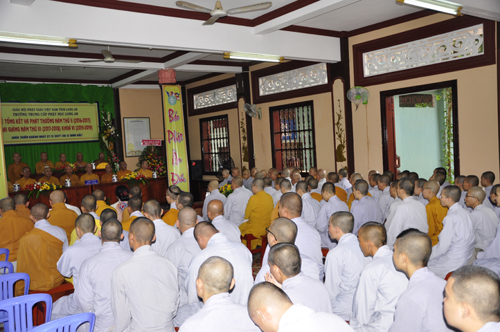 Sau phần giới thiệu, ĐĐ. Thích Lệ Trí báo cáo tổng kết tình hình sinh hoạt tu học trong năm học thứ II của Trường Trung cấp Phật học Long An tại 2 cơ sở: Tăng sinh Chùa Thiên Khánh và Phân viện II- chư Ni chùa Thiên Phước. Theo bản báo cáo sơ bộ của Ban tổ chức cho thấy kết quả đào tạo, giáo dục của 2 điểm trường vô cùng khả quan. Hai cơ sở đều có chương trình tu học và sinh hoạt ngoại khóa cho Tăng Ni sinh ổn định, tất cả đều tiếp thu, học tập tốt.