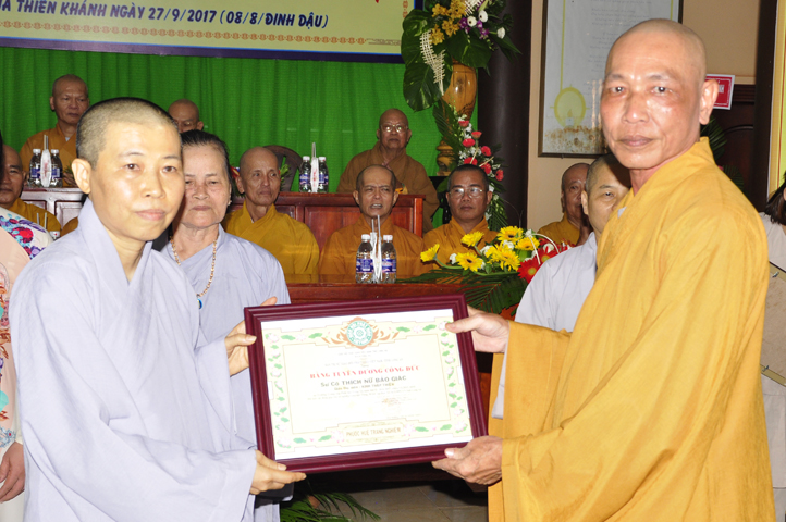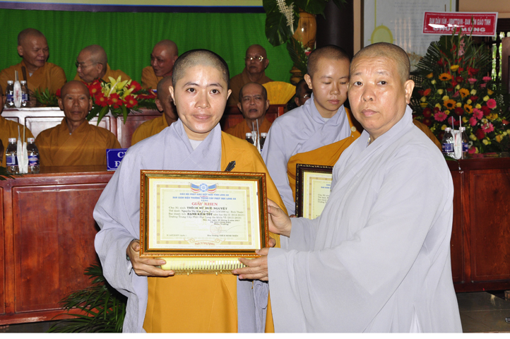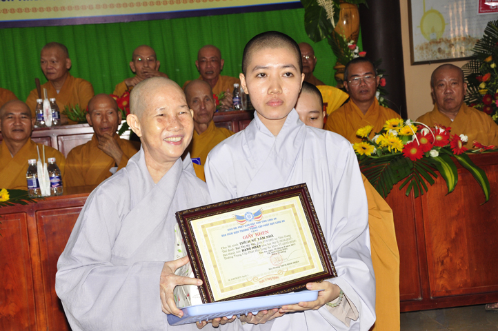 Về phía Ni sinh có 4 phần thưởng xuất sắc và 1 phần thưởng hạnh kiểm tốt, như: Ns.Tâm Nhã (hạng nhất), Chơn Huyền (hạng nhì), Tịnh Hiếu (hạng 3), Trung Thiện (hạng 4) và Ns. Huệ Nguyệt, do NT. Tuệ Đăng và NS. Diệu Phước trao tặng.
