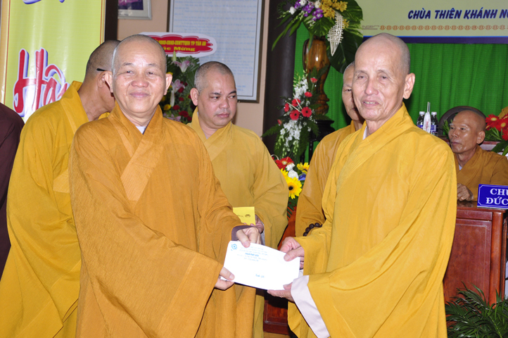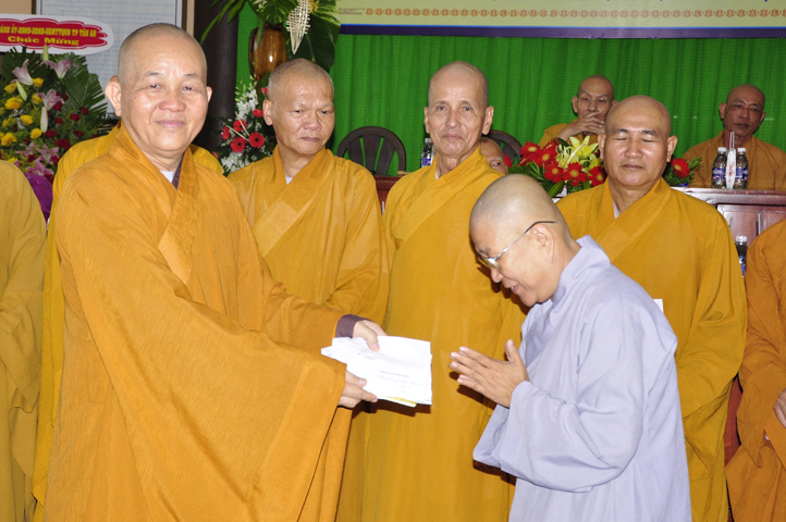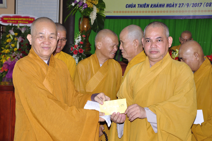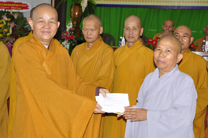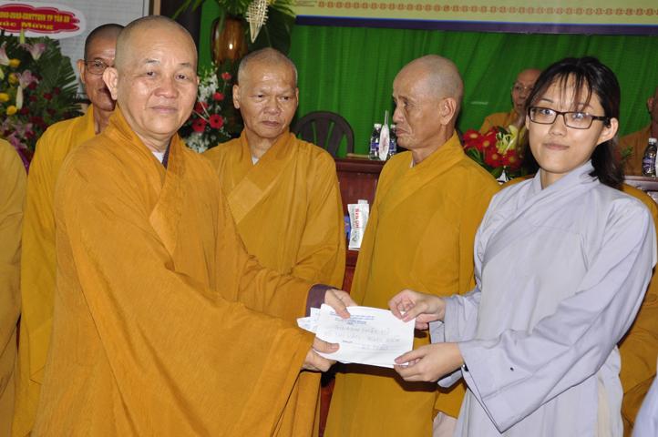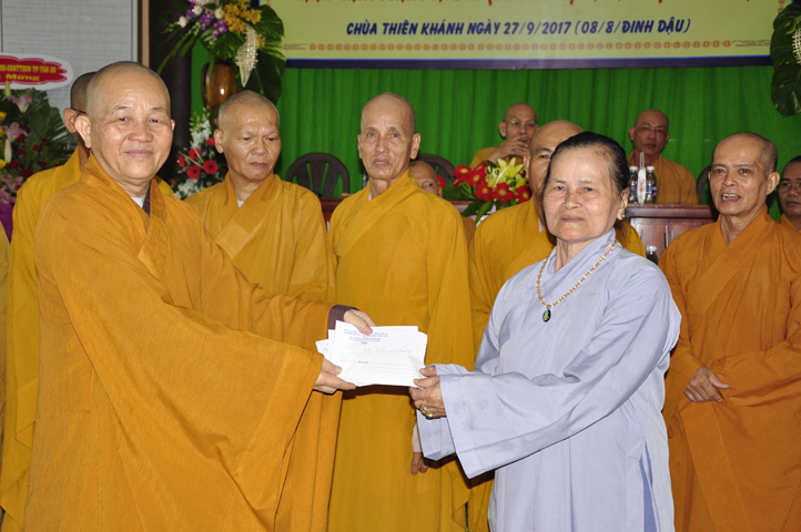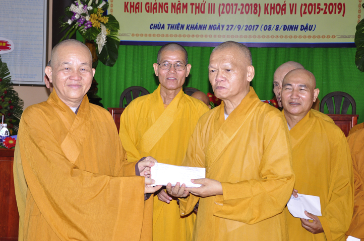Tiếp theo đó, để năm học mới được hanh thông tốt đẹp, chư Tôn đức Ban Bảo Trợ đã tùy hỷ phát tâm bảo trợ tiếp các sinh hoạt phí cho Tăng Ni sinh Trường Trung cấp Phật học Long An.
