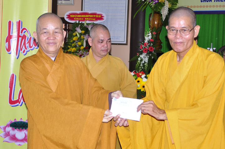 Trong phần này, HT. Thích Phước Toàn tặng 100.000 triệu (90tr dành cho trường – 10tr dành 2 tăng sinh du học Ấn Độ; cùng chư Tôn đức trụ trì các tự viện như: HT. Thích Quảng Ý, TT. Thích Tắc Quảng, ĐĐ. Thích An Trung; NT. Tuệ Đăng, NT. Như Vân -Ni viện Long Hoa; NT. Như Hương; NS.Tắc Hạnh chùa Hòa Bình – Cần Giuộc; và PT. Ngọc Bích phát tâm cúng dường 60.000 triệu đồng VN.