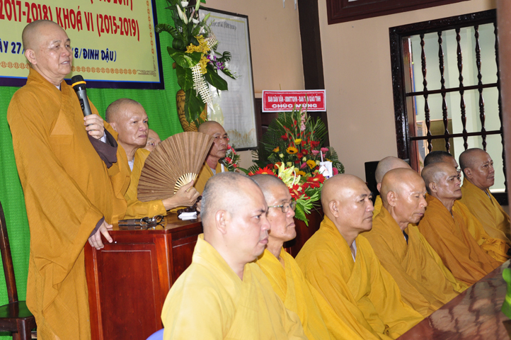 Tiếp theo, ĐĐ. Thích Lệ Trí kính trình chư Tôn đức Ban Giám hiệu danh sách cung thỉnh chư Tôn đức Giáo thọ đảm trách các bộ môn Nội Ngoại điển trong năm thứ III. Ngoài giáo trình Phật học đã chuẩn y, chương trình đào tạo năm 2017-2018 còn có thêm các Chuyên đề thỉnh giảng để nâng cao tri thức tổng quát cho các Tăng Ni sinh.