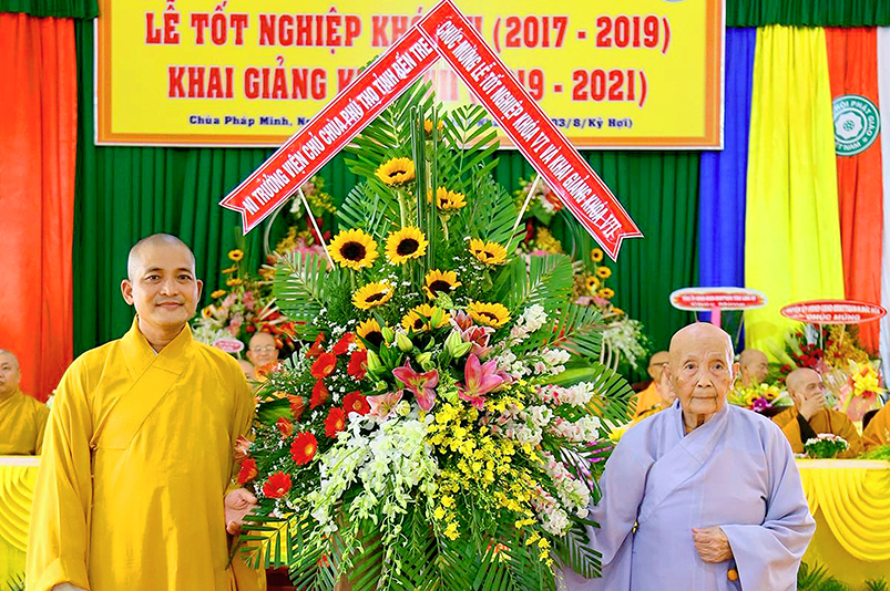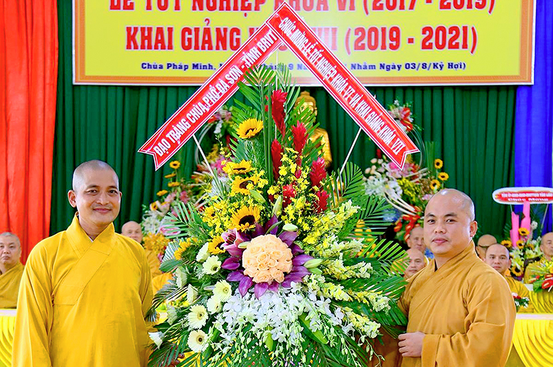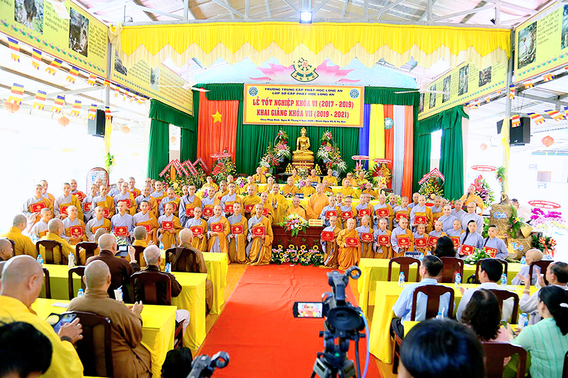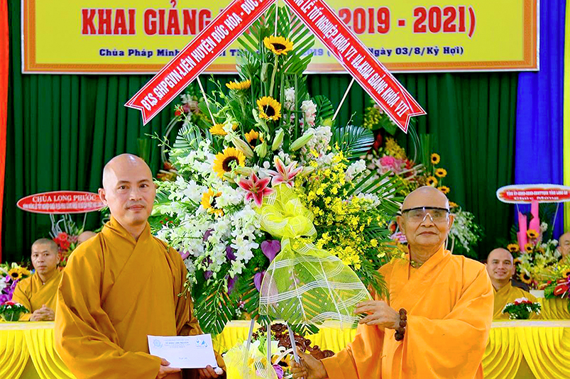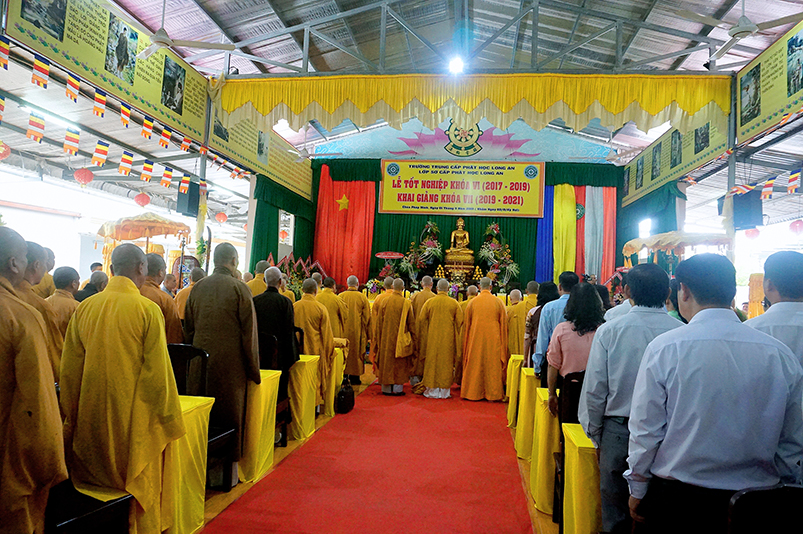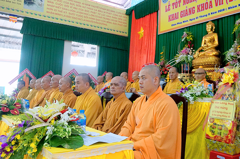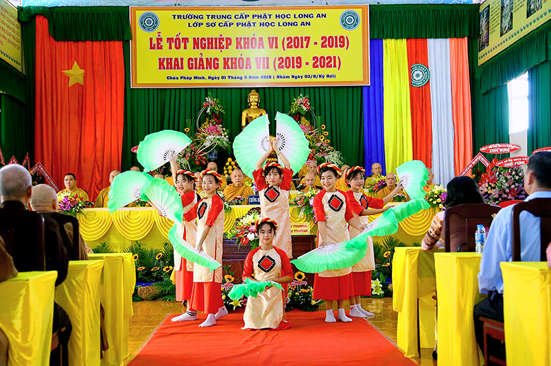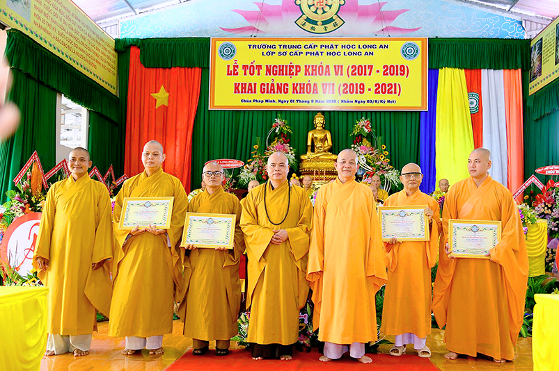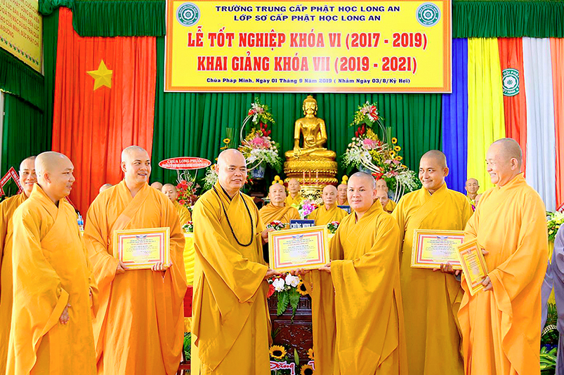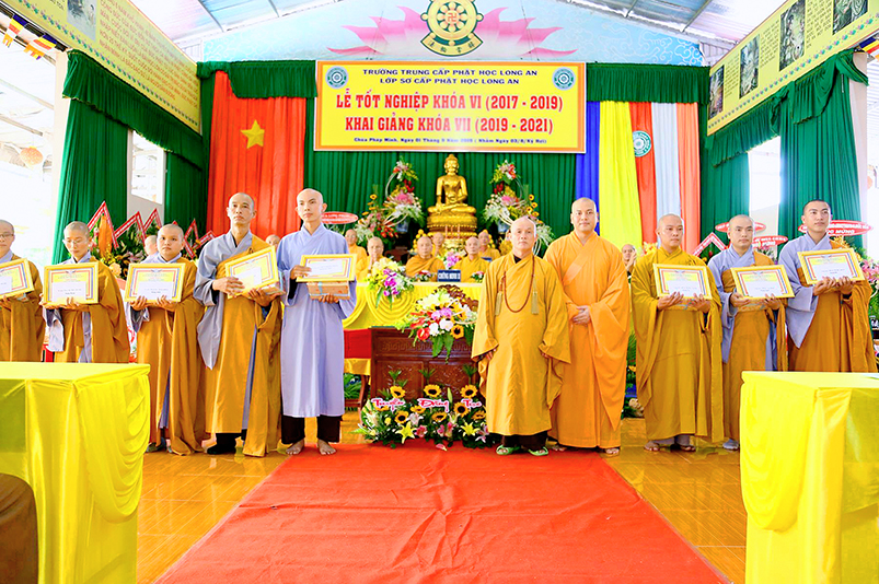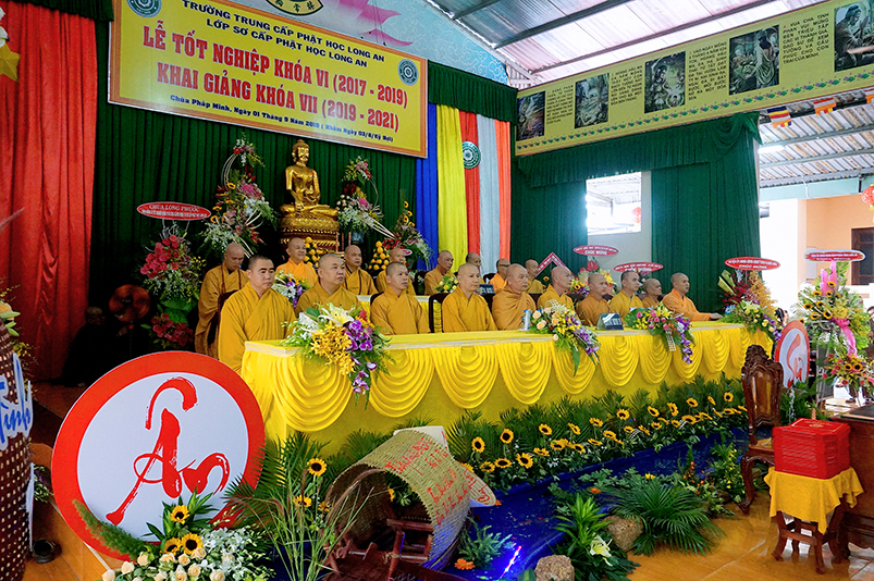 Sáng ngày 01/09/2019, tại chùa Pháp Minh ( ấp Giồng Lớn, xã Mỹ Hạnh Nam, tỉnh Long An), Ban Giám hiệu Trường Trung cấp Phật học tỉnh Long An trọng thể tổ chức lễ Tốt nghiệp lớp Sơ Cấp Phật học khóa VI, Khai giảng khóa VII (2019 – 2021) lớp sơ cấp Phật học.