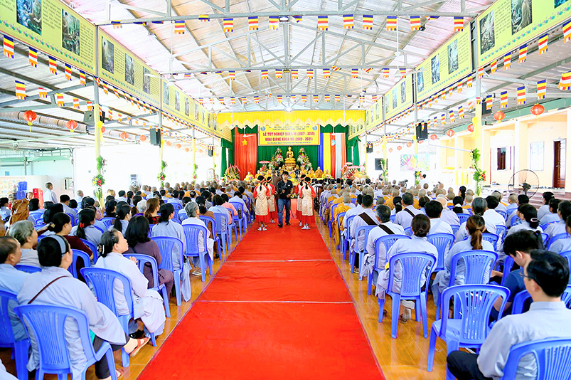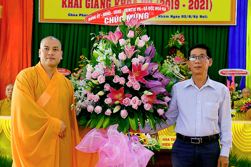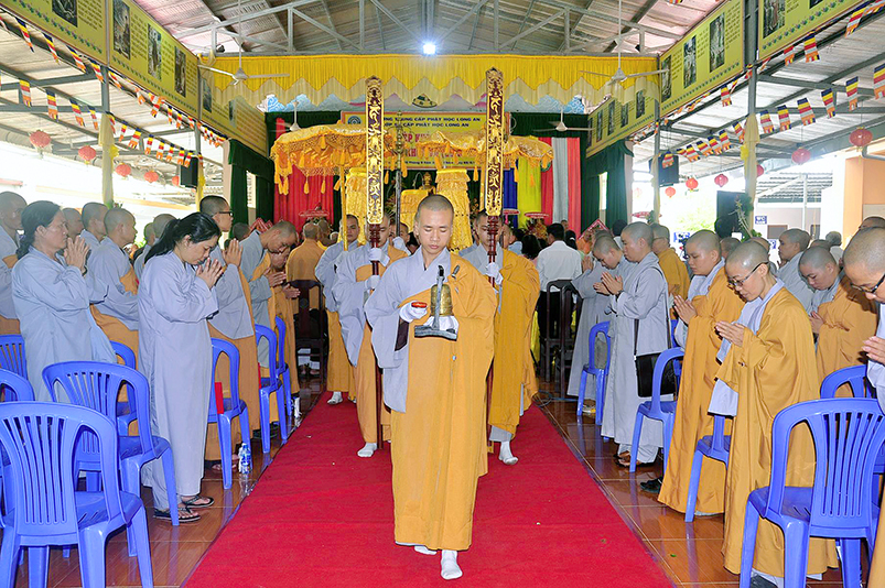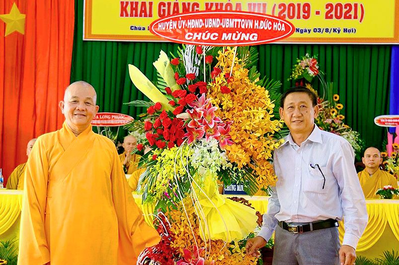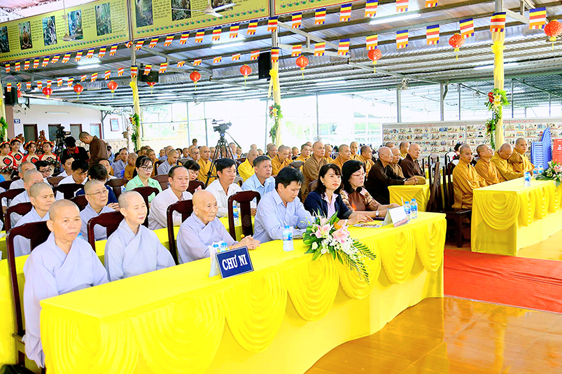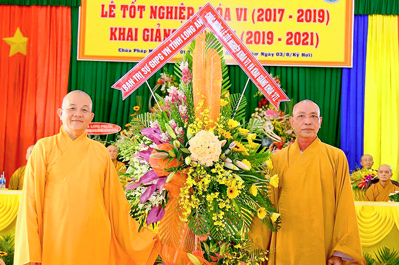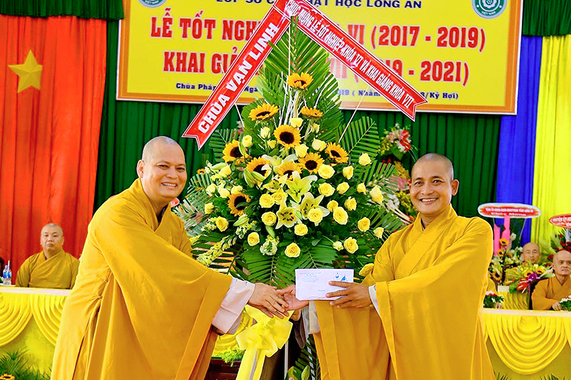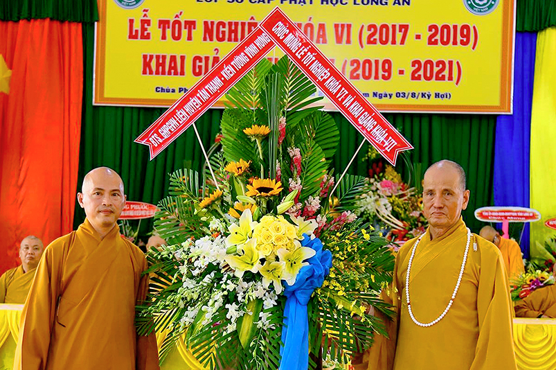 Buổi lễ được sự quang lâm chứng minh của HT. Thích Thiện Huệ – Chứng minh Ban trị sự GHPGVN tinh Long An, Chứng minh Ban Giám hiệu trường Trung Cấp Phật Học tỉnh Long An; HT, Thích Huệ Hồng- Chứng minh Ban trị sự GHPGVN tỉnh Long An; HT. Thích Minh Thiện – Uỷ viên HĐTS Trung Ương, Phó Trưởng ban Hoằng TW, Trưởng Ban Trị sự GHPGVN tỉnh Long An, Hiệu Trưởng trường Sơ, Trung Cấp Phật học tỉnh Long An; Thượng tọa Thích Thanh Phong Uỷ viên thường trực HĐTS GHPGVN– Trưởng ban Kinh tế tài chánh TWGHPGVN, Trụ trì Tổ đình Vĩnh Nghiêm TP.HCM; Thượng tọa Thích Giác Dũng – Giảng viên Học Viện PGVN TP.HCM; ĐĐ. Thích Lệ Trí – Ủy viên HĐTSTƯ, Phó Ban Trị sự kiêm Trưởng Ban Giáo dục Tăng Ni Ban Trị Sự GHPGVN tỉnh Long An; Hòa thượng Thích Chơn Đạo – giảng viên trường Trung cấp Phật học tỉnh Long An; Hòa thượng Thích Thiện Phúc- Trưởng Ban Trị sự GHPGVN liên huyện Đức Hòa, Đức Huệ; Đại đức Thích Quảng Lâm – chủ nhiệm lớp Sơ cấp Phật học tỉnh Long An; Đại đức Thích Lệ Duyên – Chánh Thư ký, Trưởng ban Phật giáo Quốc tế GHPGVN tỉnh Long An, Phó Trưởng ban Trị sự GHPGVN liên huyện Đức Hòa, Đức Huệ, chư Tôn đức Ban giám hiệu, Ban Trị sự các huyện, thị và quý Tôn đức Bổn Sư, y chỉ Sư và quý Phật tử trong Ban bảo trợ nhà trường và 100 Tăng Ni sinh đang theo học tại Trường Sơ cấp Phật học tỉnh Long An.