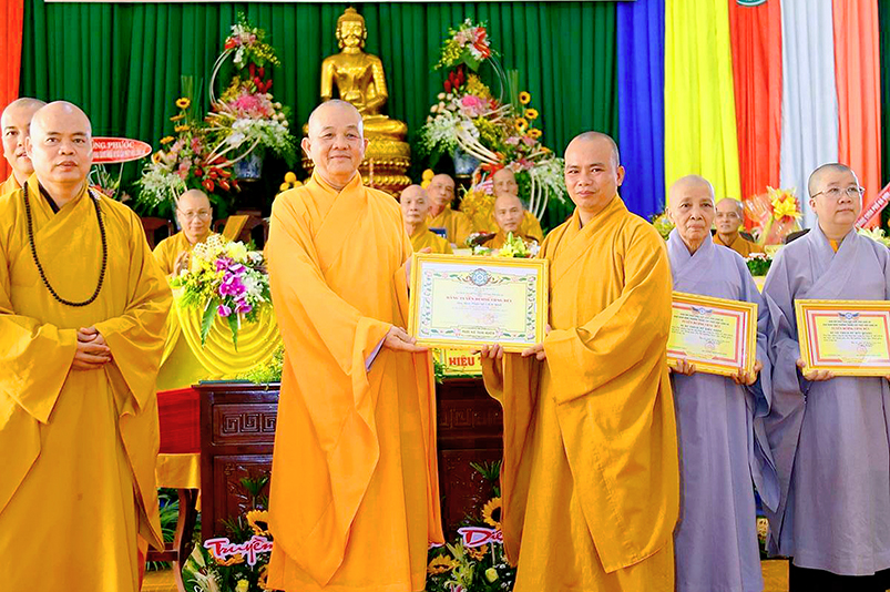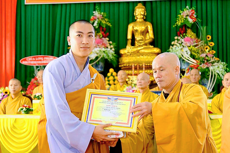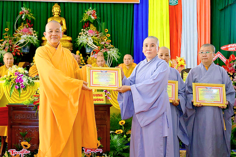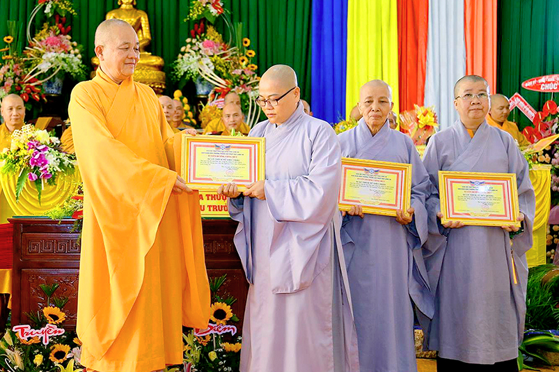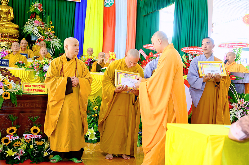 Để khích lệ các Tăng Ni sinh cố gắng nhiều hơn nữa trong quá trình học tập, Đại đức Thích Giác Dũng đại diện Ban chủ nhiệm tặng Giấy khen và những phần quà cho các Tăng Ni sinh có thành tích học tập xuất sắc trong năm học.