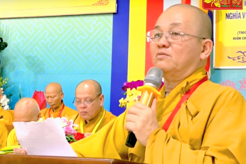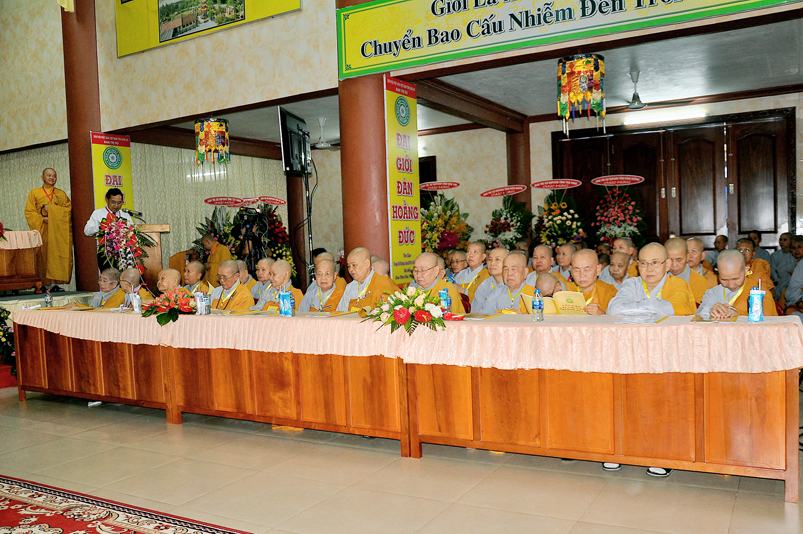 Thực hiện đúng theo Nghị quyết, Thông tư từ các công văn của Giáo hội PGVN đã ban hành cũng như các văn bản điều lệ, quy định của các cấp chính quyền địa phương sở tại, TT. Thích Quảng Tâm- Phó Ban thường trực GHPGVN tỉnh Long An, Phó Ban tổ chức báo cáo tiến trình tổ chức, thành phần nhân sự của Đại Giới Đàn đầy đủ tư cách pháp nhân, pháp lý tiến hành tổ chức ĐGĐ Hoằng Đức.