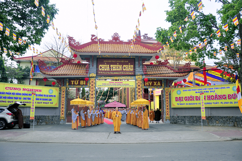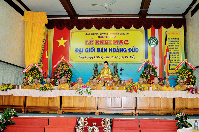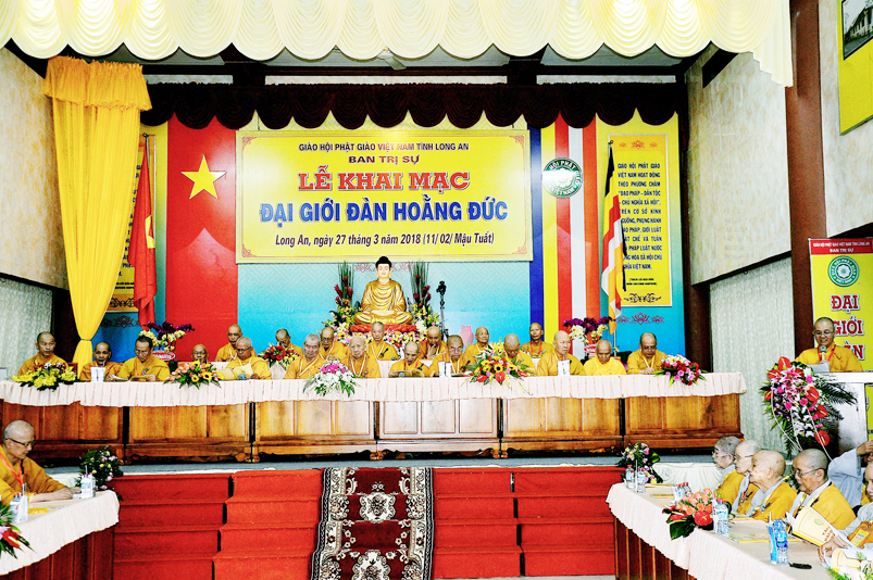 Sáng nay, ngày 27 /3/ 2018 (nhằm ngày 11 tháng 2 năm Mậu Tuất), Phật giáo tỉnh Long An long trọng tổ chức Khai mạc Đại giới đàn Hoằng Đức tại trú xứ Thiên Châu, văn phòng Ban Trị sự, đường Huỳnh Văn Nhứt, thành phố Tân An, tỉnh Long An.