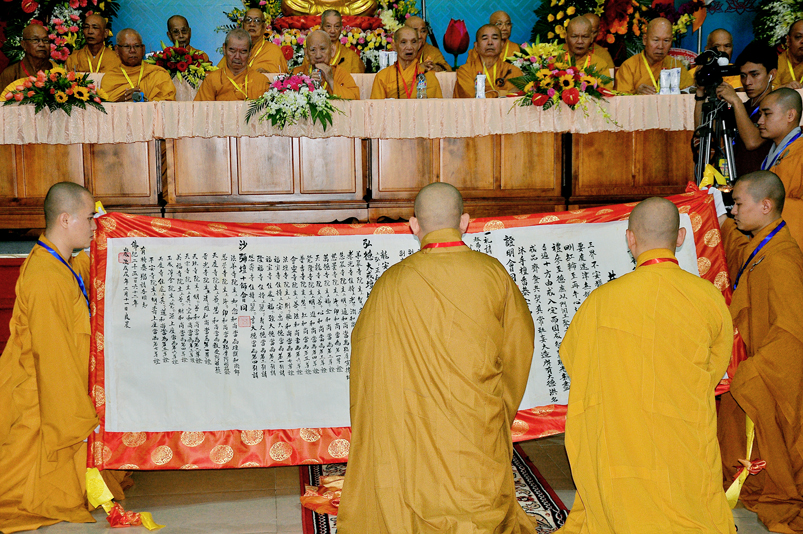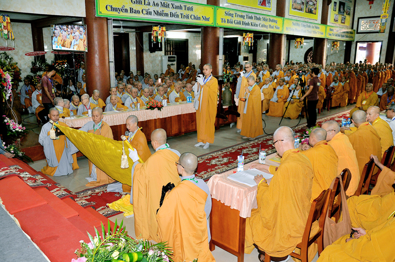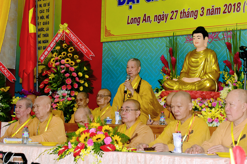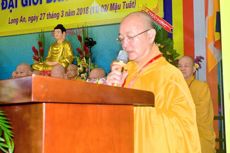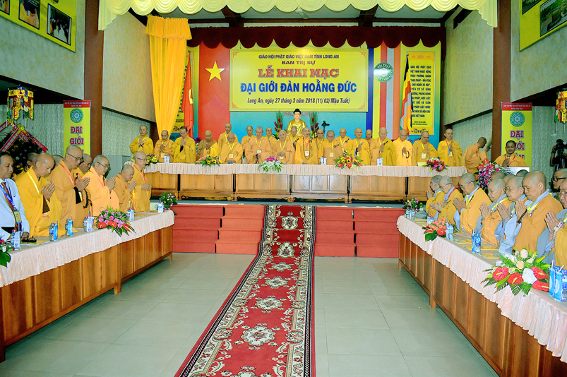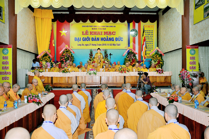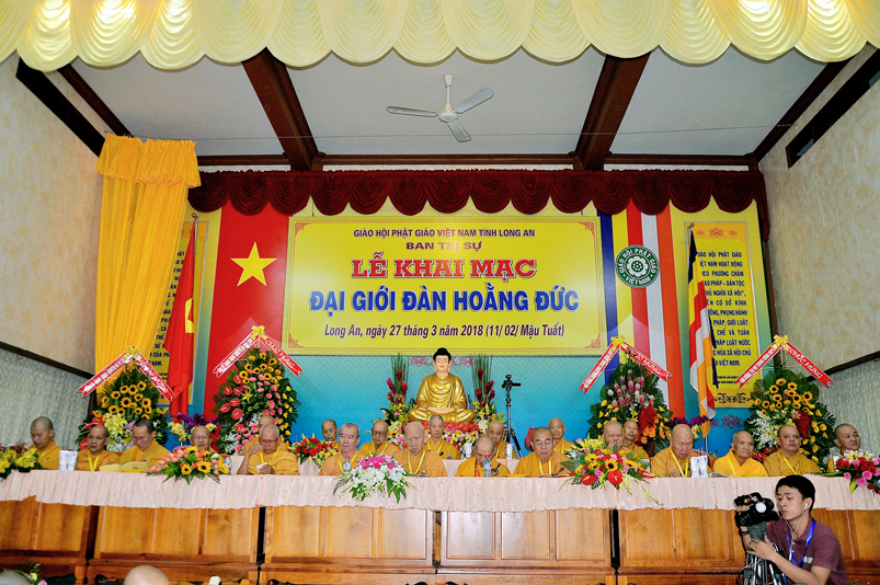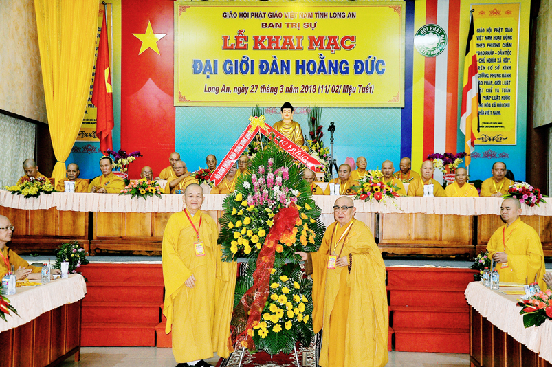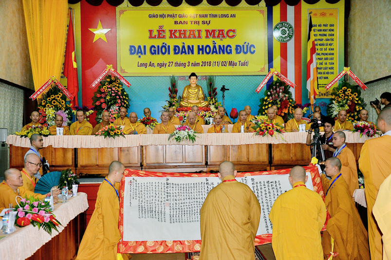 Giới như châu ma-ni cứu khổ giúp kẻ nghèo, giới là ngọn đèn sáng đưa người qua bể khổ, và trên hết Giới luật là thọ mạng của Phật pháp, hộ mạng tánh thể của Tăng-già, vì thế, Ban Trị sự GHPGVN tỉnh Long An cung thỉnh chư Tôn đức Giáo phẩm chứng minh, nhất tâm cung thiết Đại Giới Đàn Hoằng Đức, thực hiện sứ mạng cao quý “đào tạo Tăng tài, kế vãng khai lai, truyền đăng tục diệm, báo Phật ân đức”. Đây chính là lời tha thiết của Hòa thượng Thích Minh Thiện- Trưởng Ban Trị sự, Trưởng Ban tổ chức Đại Giới Đàn trân trọng khai mạc.