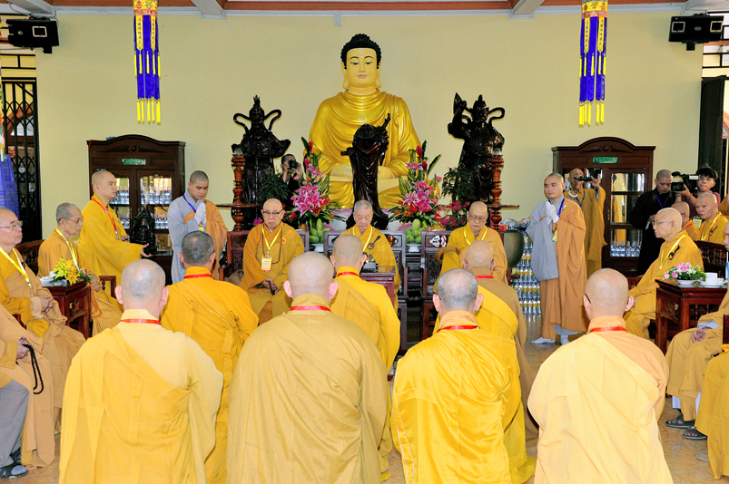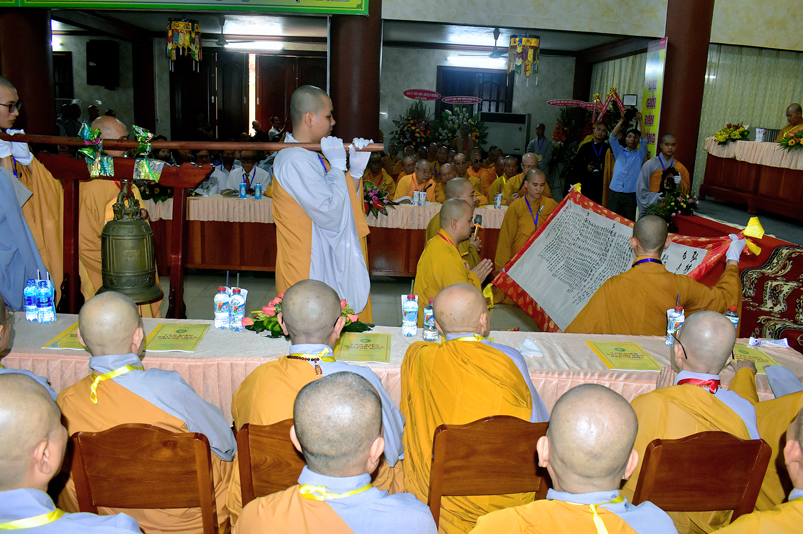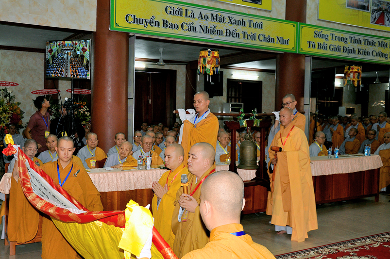 Kết thúc Lễ khai mạc, TT. Thích Lệ Trí chân thành kính lời đảnh lễ niệm ân chư Tôn đức Giáo phẩm chứng minh, chư Tôn đức HĐTS TW, Hội đồng Thập sư và kính lời tri ân Quý lãnh đạo các cấp chính quyền sở tại, cùng tất cả chư Tôn đức trong các Ban, Ngành, tỉnh thành bạn, huyện thị; ngành truyền thông trong và ngoài tỉnh, các Mạnh Thường Quân… đồng tham dự, góp phần trang nghiêm buổi lễ khai mạc.
