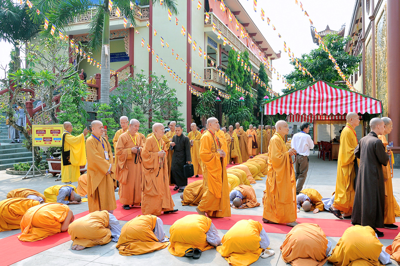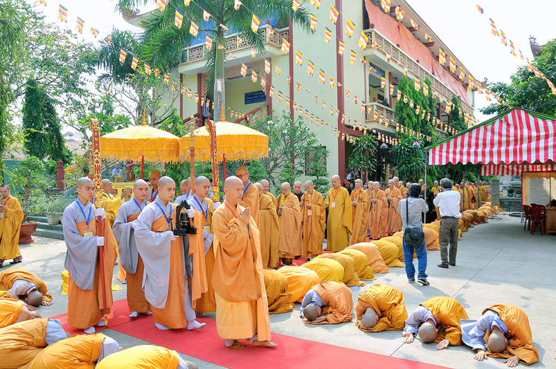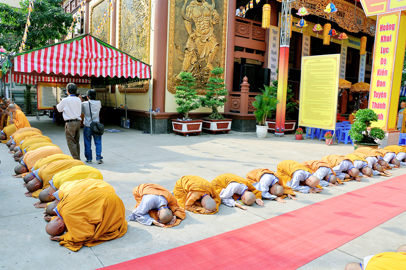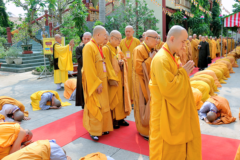 Thể hiện tâm cung kính cầu Giới pháp cao quý, các Giới tử năm vóc phủ phục đàn tiền, cung đối trước chư Tôn đức Hội đồng Thập sư đảnh lễ kính dâng lời phát nguyện lãnh thọ giới, nghiêm trì giới, không vì chút hư vinh làm hoen ố đời tu sĩ