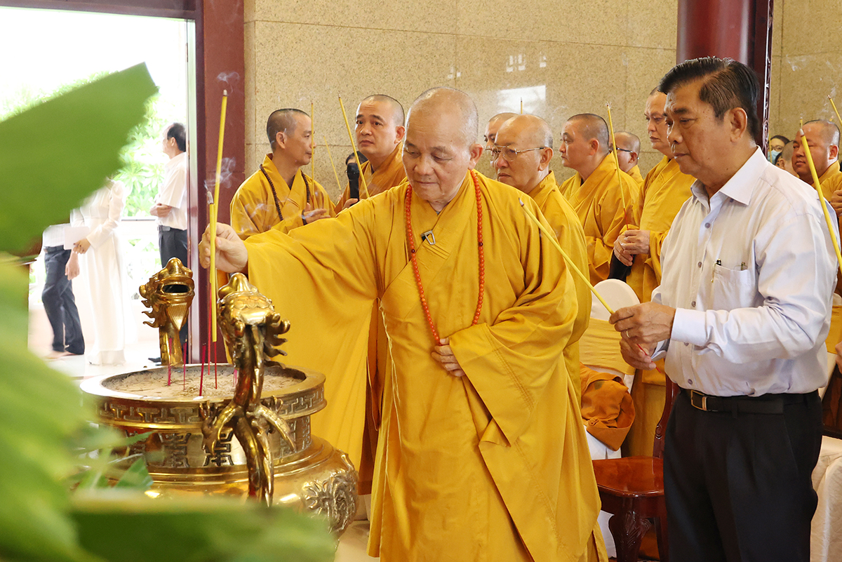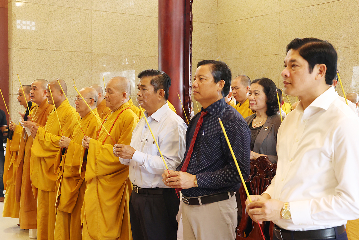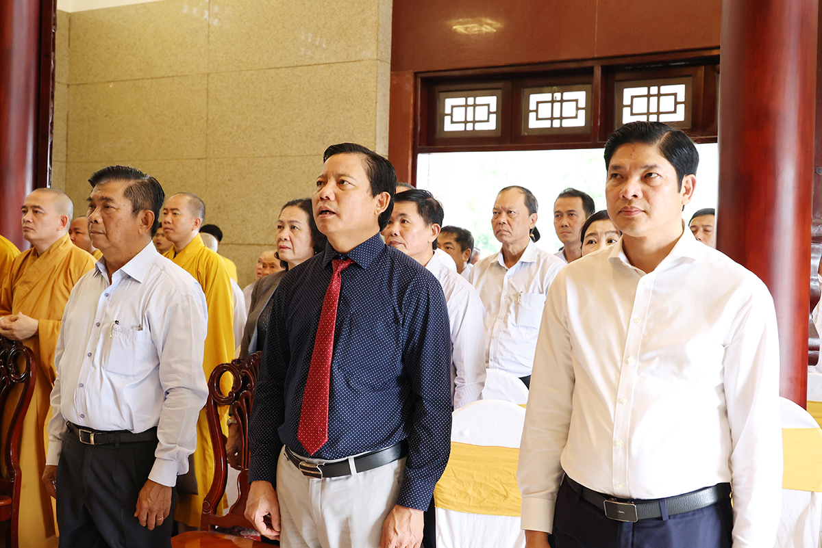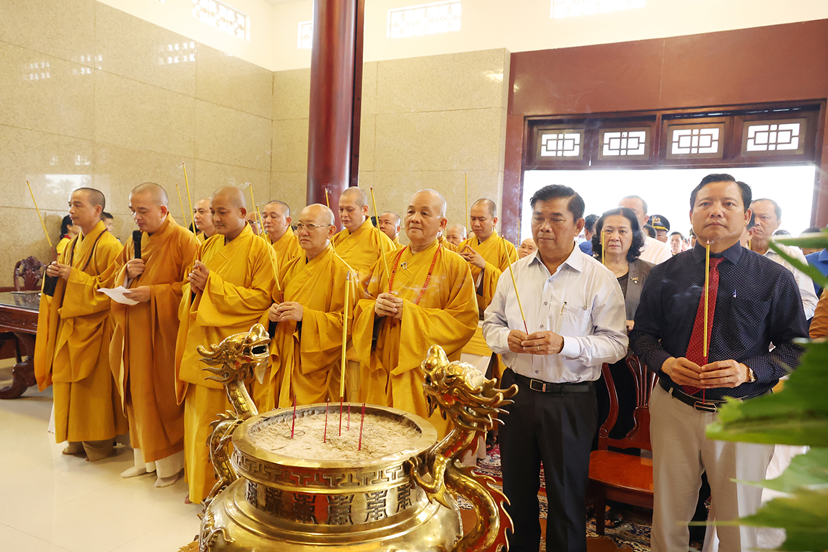 Bày tỏ lòng thành kính, biết ơn trước công lao của các anh hùng liệt sĩ, Chư tôn đức Tăng Ni và quý đại biểu đã kính cẩn dâng hương tại Nhà tưởng niệm Nghĩa trang liệt sĩ tỉnh và nguyện cầu cho anh linh các anh hùng liệt sĩ được siêu sinh, tịnh độ.