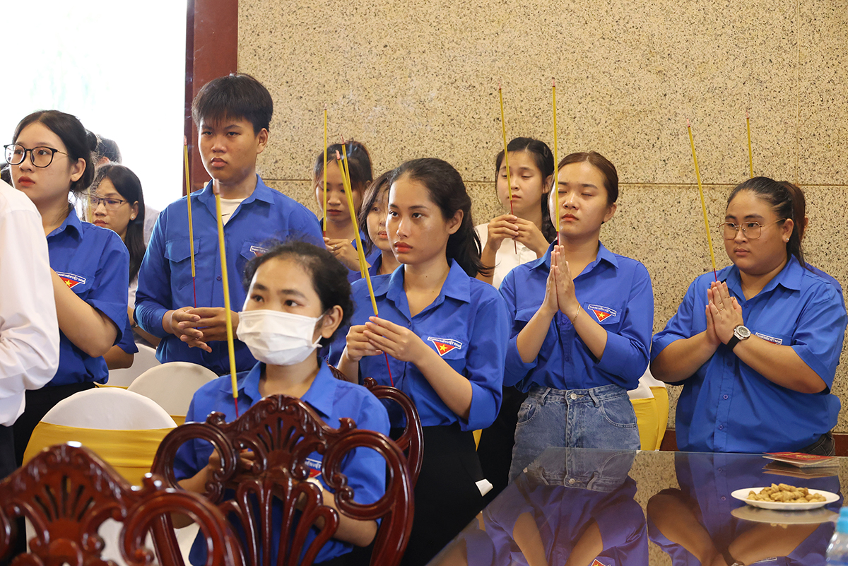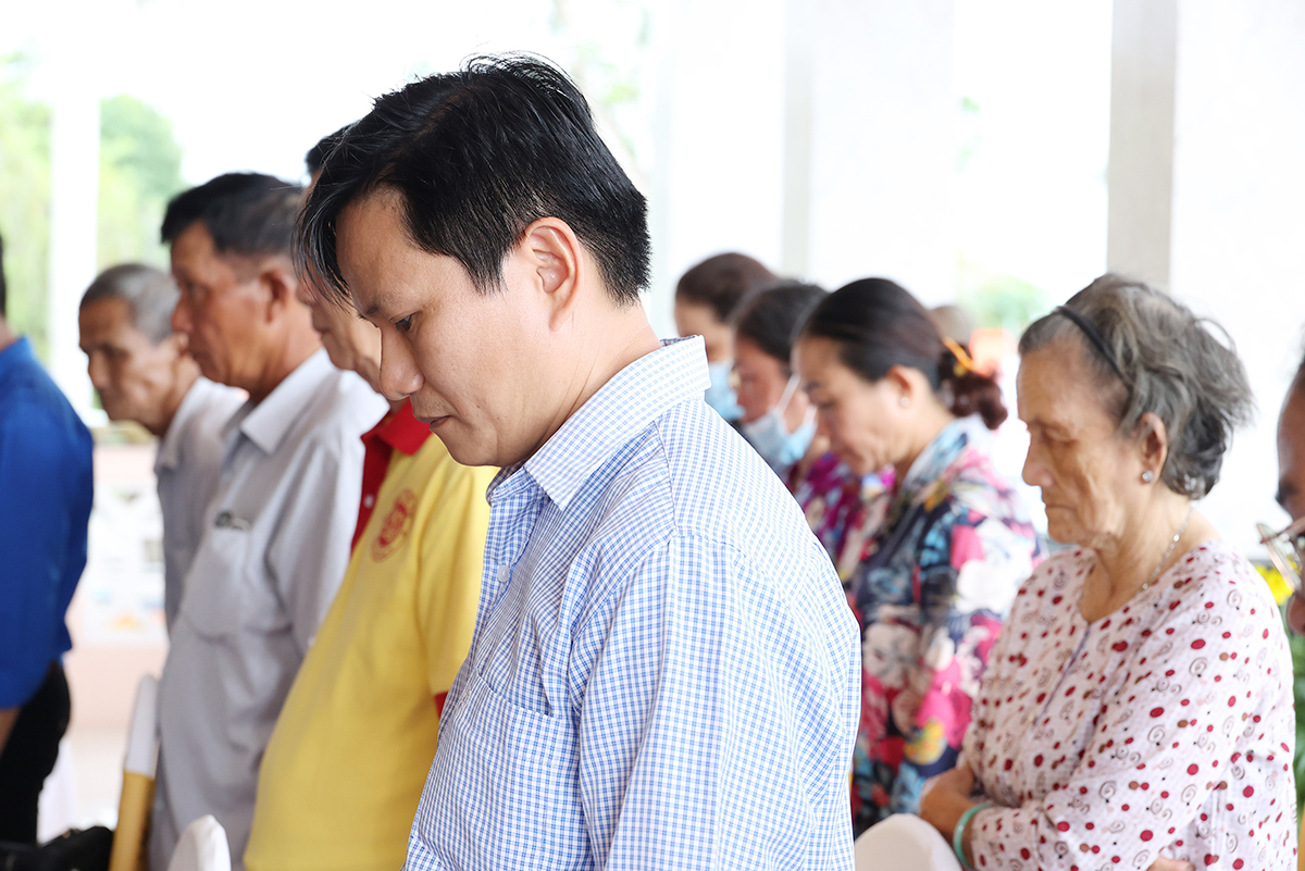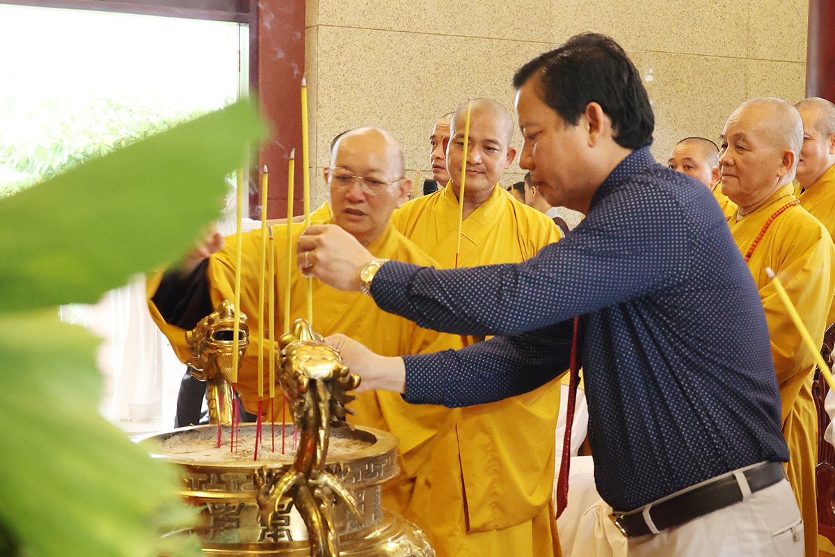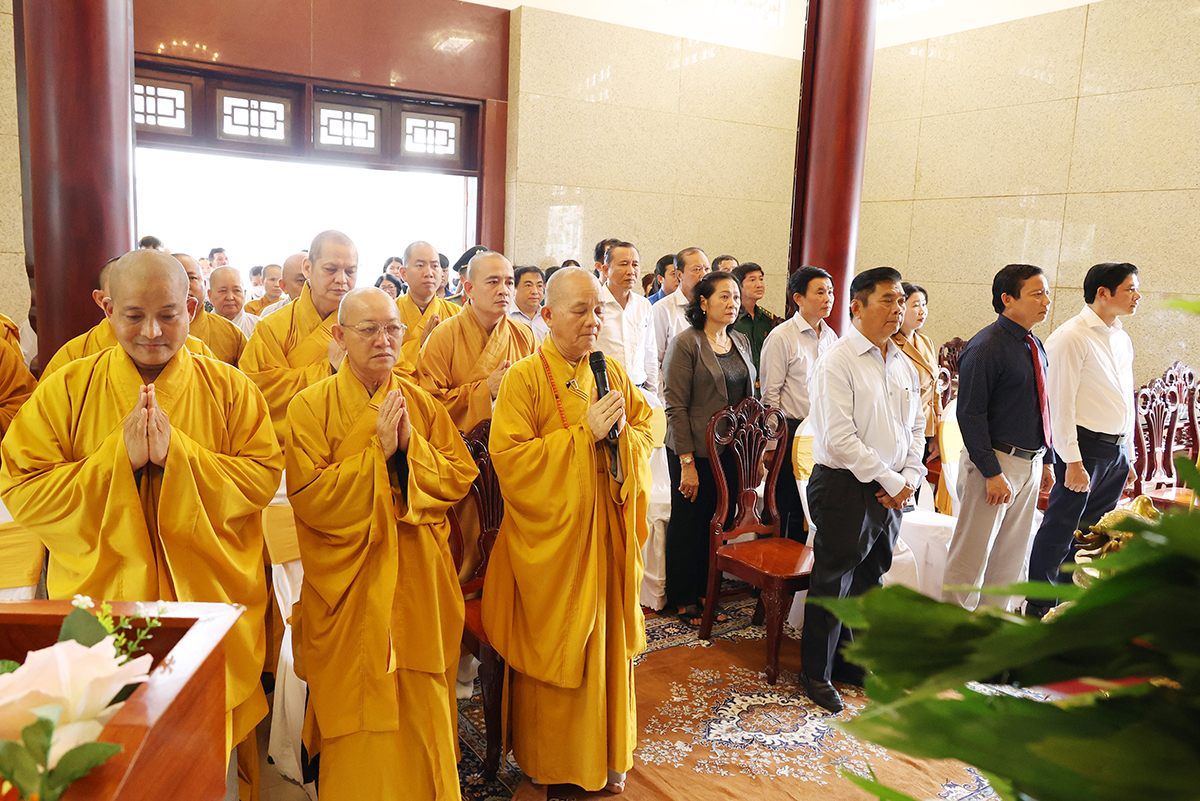 Bày tỏ lòng thành kính, biết ơn trước công lao của các anh hùng liệt sĩ, Chư tôn đức Tăng Ni và quý đại biểu đã kính cẩn dâng hương tại Nhà tưởng niệm Nghĩa trang liệt sĩ tỉnh và nguyện cầu cho anh linh các anh hùng liệt sĩ được siêu sinh, tịnh độ.