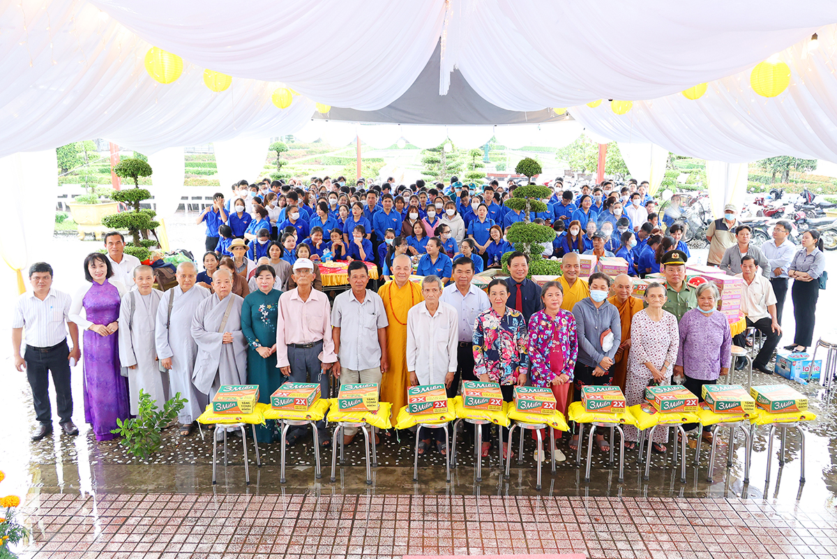 Dịp này, Hoà thượng Thích Minh Thiện thay mặt Thường trực Ban Trị sự Giáo hội Phật giáo Việt Nam tỉnh đón nhận quà hỗ trợ công tác tổ chức lễ tưởng niệm từ Phó Chủ tịch UBND tỉnh – ông Phạm Tấn Hòa ; đồng thời, trao tượng trưng 10 trong số 100 phần quà cho gia đình chính sách trên địa bàn tỉnh./.