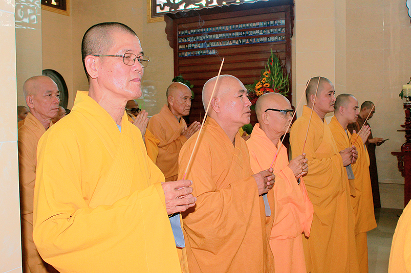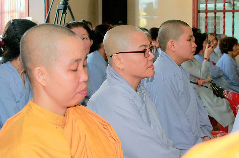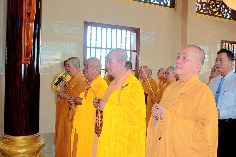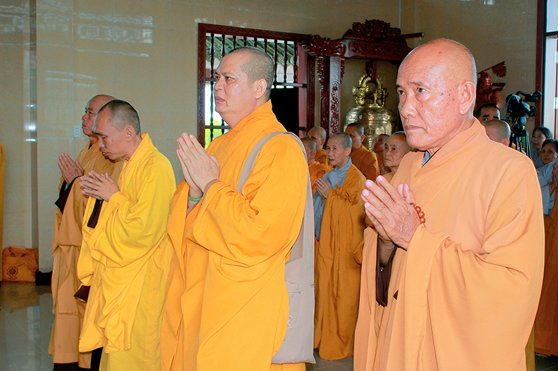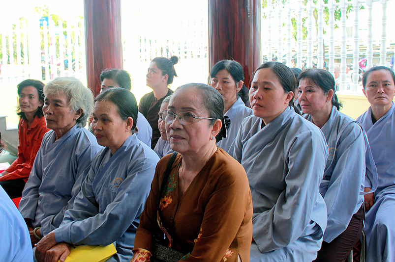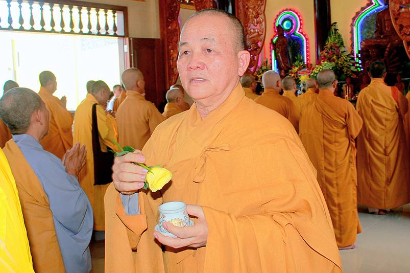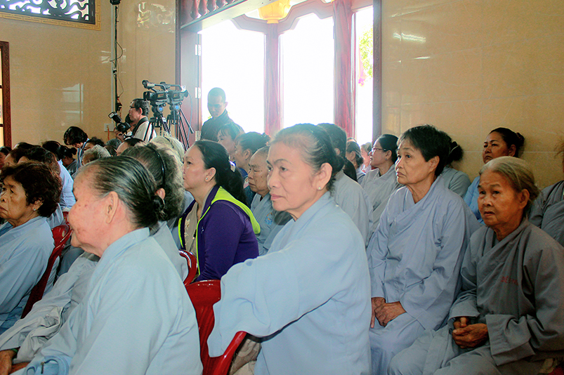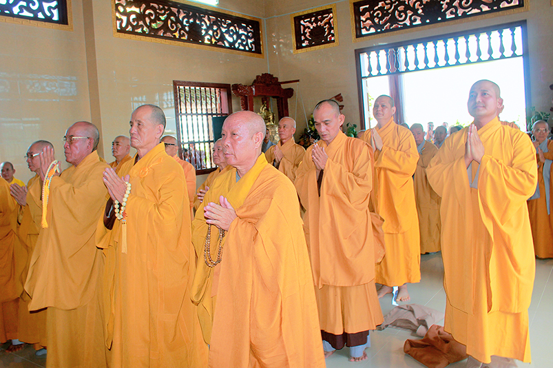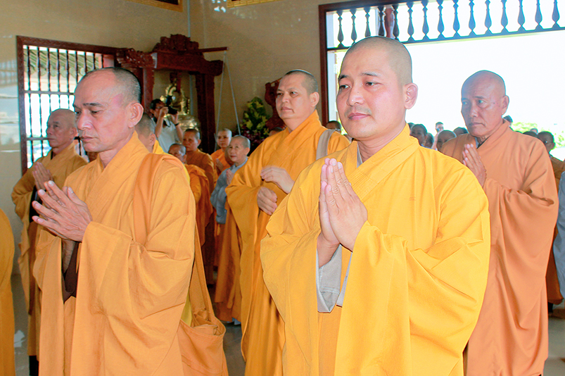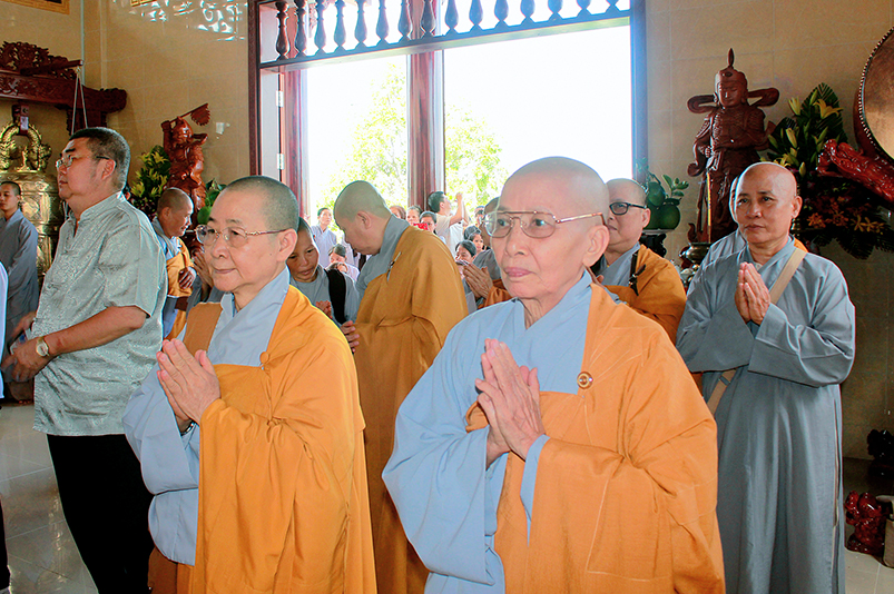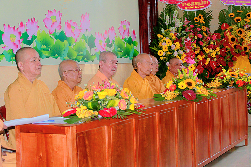 Quang lâm chứng minh buổi lễ có sự hiện diện của HT.Thích Thiện Xuân – Trưởng Ban Thừa kế Thiên Thai Thiền Giáo Tông; HT. Thích Thiện Huệ- Chứng minh Ban Trị sự GHPGVN tỉnh Long An, Trụ Trì chùa Thiên Khánh, chùa Long An; HT. Thích Minh Thiện – Ủy viên Hội đồng Trị sự trung ương, Phó Ban Hoằng pháp trung ương, Trưởng Ban Trị sự GHPGVN tỉnh Long An; HT. Thích Thiện Tâm – Phó Ban trị sự kiêm Trưởng ban Kiểm soát GHPGVN tỉnh Long An, Trưởng Ban Trị sự GHPGVN huyện Châu Thành; TT. Thích Minh Thọ- Uỷ viên Hội đồng Trị sự trung ương, Phó Ban Trị sự GHPGVN tỉnh Long An; TT. Thích Quảng Tâm – Phó Ban Trị sự, Trưởng Ban Từ Thiện GHPGVN tỉnh Long An; HT. Thích Quảng Ý- Trưởng Ban Trị sự GHPGVN liên huyện Tân Thạnh- Kiến Tường- Vĩnh Hưng; HT. Thích Thiện Phúc- Trưởng Ban Trị sự GHPGVN liên huyện Đức Hoà- Đức Huệ; Thượng Toạ Thích Giác Nguyên – Phó Ban Trị sự GHPGVN tỉnh Long An; Đại Đức Thích Đức Hoàng – Phó Ban Trị Sự GHPGVN tỉnh Long An; ĐĐ; Thích Lệ Trí – Ủy viên HĐTSTƯ, Phó Ban Trị sự kiêm Trưởng Ban Giáo dục Tăng Ni Ban Trị Sự GHPGVN tỉnh Long An; Đại đức Thích Lệ Duyên – Chánh Thư Ký Ban Trị sự GHPGVN tỉnh Long An; Đại đức Thích Lệ Ngôn – Trưởng Ban Hoằng Pháp GHPGVN tỉnh Long An; Ni Trưởng Thích Gương Liên- Phó Ban Trị sự GHPGVN tỉnh Long An; Ni Sư Thích Như Tâm – Thủ quỹ Ban Trị Sự GHPGVN tỉnh Long An ; Ni Sư Thích Như Hương- Trưởng Ban Trị Sự GHPGVN Huyện Thạnh Hóa; Ni Sư Diệu Phước – Chánh văn phòng 2 Trường Trung Cấp Phật Học tỉnh Long An;, và 200 Tăng Ni sinh khóa 6 Trường Trung Cấp Phật Học Tỉnh Long An, cùng Chư Tôn Thiền Đức Tăng Ni trong và ngoài tỉnh đồng về tham dự.