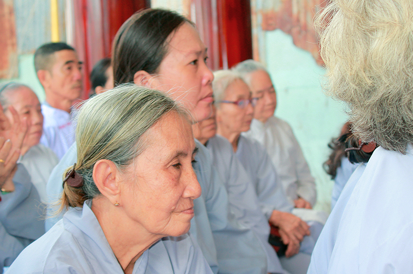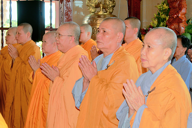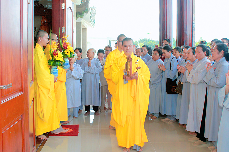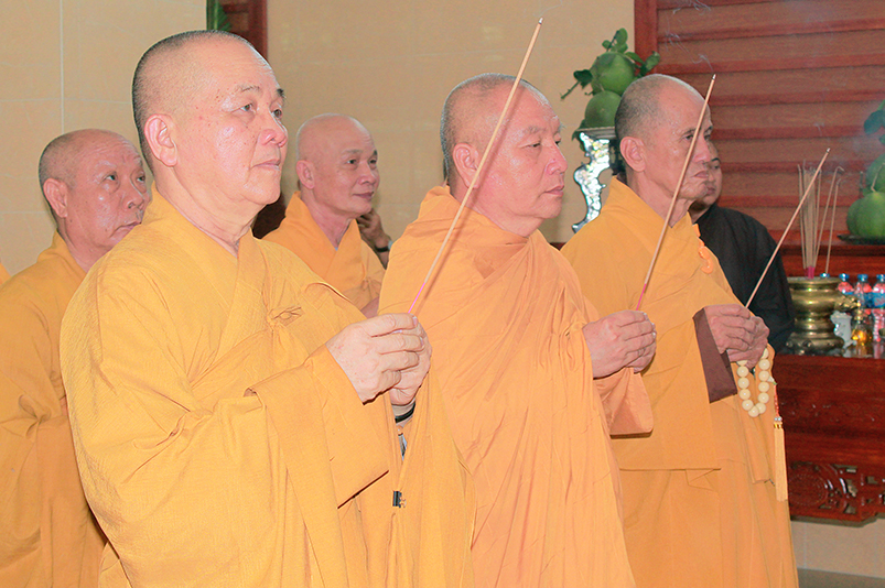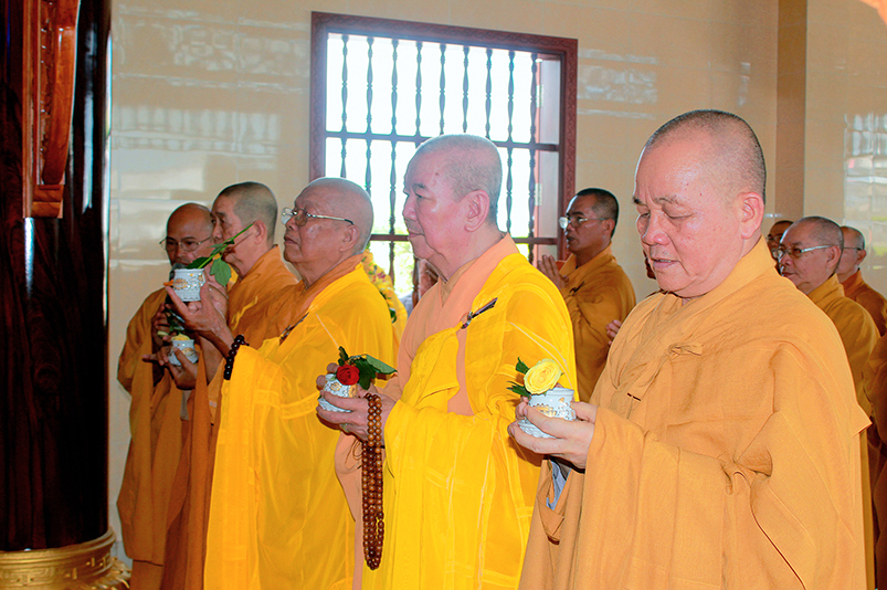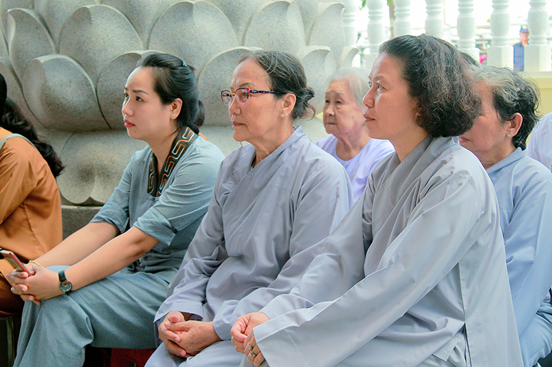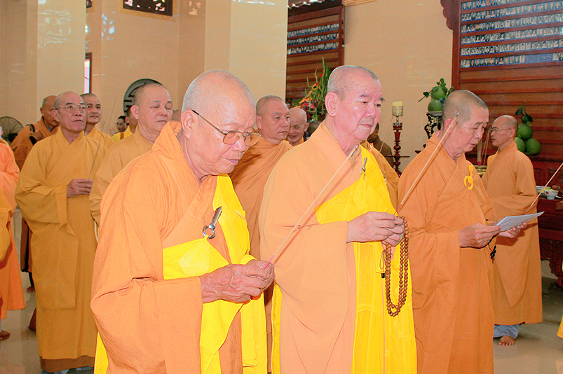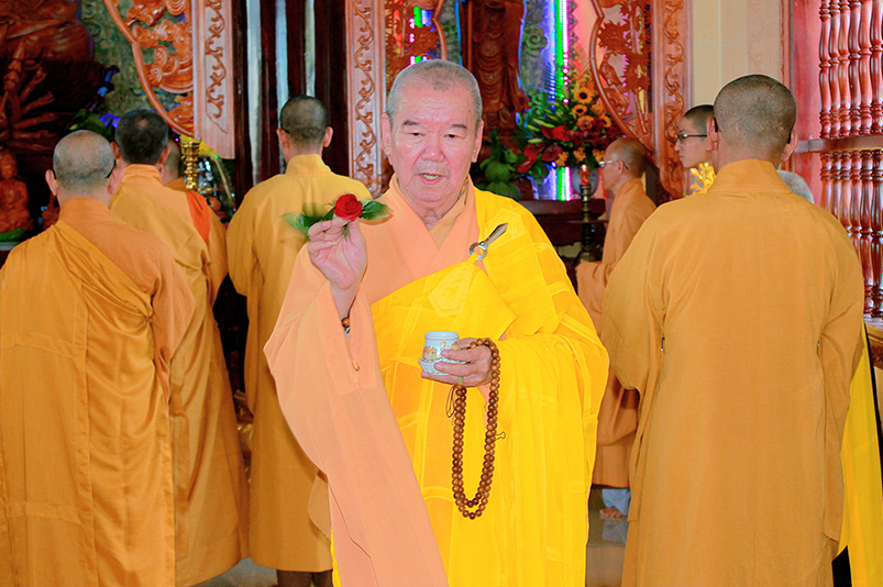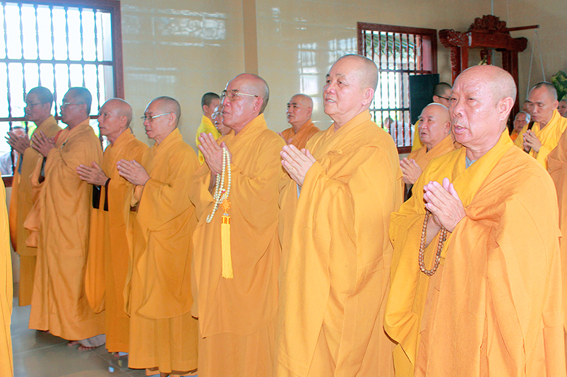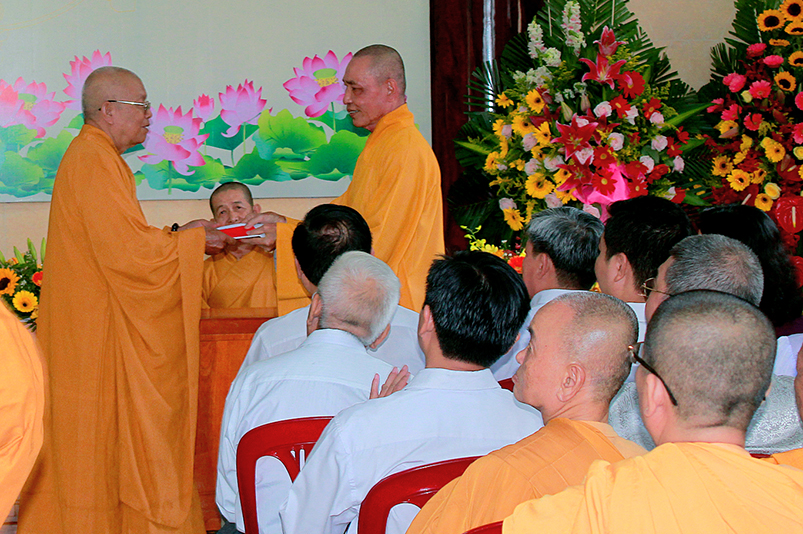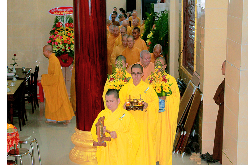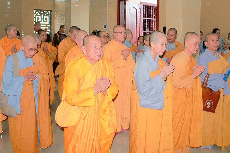 Quang lâm chứng minh buổi lễ có sự hiện diện của HT.Thích Thiện Xuân – Trưởng Ban Thừa kế Thiên Thai Thiền Giáo Tông; HT. Thích Thiện Huệ- Chứng minh Ban Trị sự GHPGVN tỉnh Long An, Trụ Trì chùa Thiên Khánh, chùa Long An; HT. Thích Minh Thiện – Ủy viên Hội đồng Trị sự trung ương, Phó Ban Hoằng pháp trung ương, Trưởng Ban Trị sự GHPGVN tỉnh Long An; HT. Thích Thiện Tâm – Phó Ban trị sự kiêm Trưởng ban Kiểm soát GHPGVN tỉnh Long An, Trưởng Ban Trị sự GHPGVN huyện Châu Thành; TT. Thích Minh Thọ- Uỷ viên Hội đồng Trị sự trung ương, Phó Ban Trị sự GHPGVN tỉnh Long An; TT. Thích Quảng Tâm – Phó Ban Trị sự, Trưởng Ban Từ Thiện GHPGVN tỉnh Long An; HT. Thích Quảng Ý- Trưởng Ban Trị sự GHPGVN liên huyện Tân Thạnh- Kiến Tường- Vĩnh Hưng; HT. Thích Thiện Phúc- Trưởng Ban Trị sự GHPGVN liên huyện Đức Hoà- Đức Huệ; Thượng Toạ Thích Giác Nguyên – Phó Ban Trị sự GHPGVN tỉnh Long An; Đại Đức Thích Đức Hoàng – Phó Ban Trị Sự GHPGVN tỉnh Long An; ĐĐ; Thích Lệ Trí – Ủy viên HĐTSTƯ, Phó Ban Trị sự kiêm Trưởng Ban Giáo dục Tăng Ni Ban Trị Sự GHPGVN tỉnh Long An; Đại đức Thích Lệ Duyên – Chánh Thư Ký Ban Trị sự GHPGVN tỉnh Long An; Đại đức Thích Lệ Ngôn – Trưởng Ban Hoằng Pháp GHPGVN tỉnh Long An; Ni Trưởng Thích Gương Liên- Phó Ban Trị sự GHPGVN tỉnh Long An; Ni Sư Thích Như Tâm – Thủ quỹ Ban Trị Sự GHPGVN tỉnh Long An ; Ni Sư Thích Như Hương- Trưởng Ban Trị Sự GHPGVN Huyện Thạnh Hóa; Ni Sư Diệu Phước – Chánh văn phòng 2 Trường Trung Cấp Phật Học tỉnh Long An;, và 200 Tăng Ni sinh khóa 6 Trường Trung Cấp Phật Học Tỉnh Long An, cùng Chư Tôn Thiền Đức Tăng Ni trong và ngoài tỉnh đồng về tham dự.