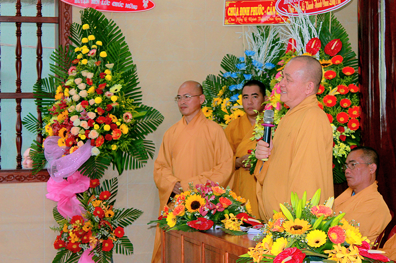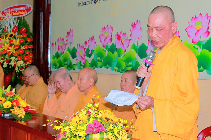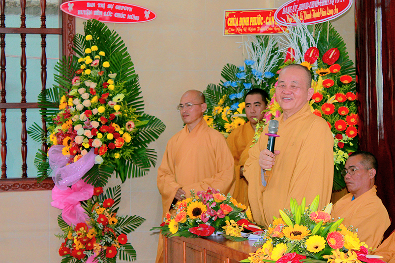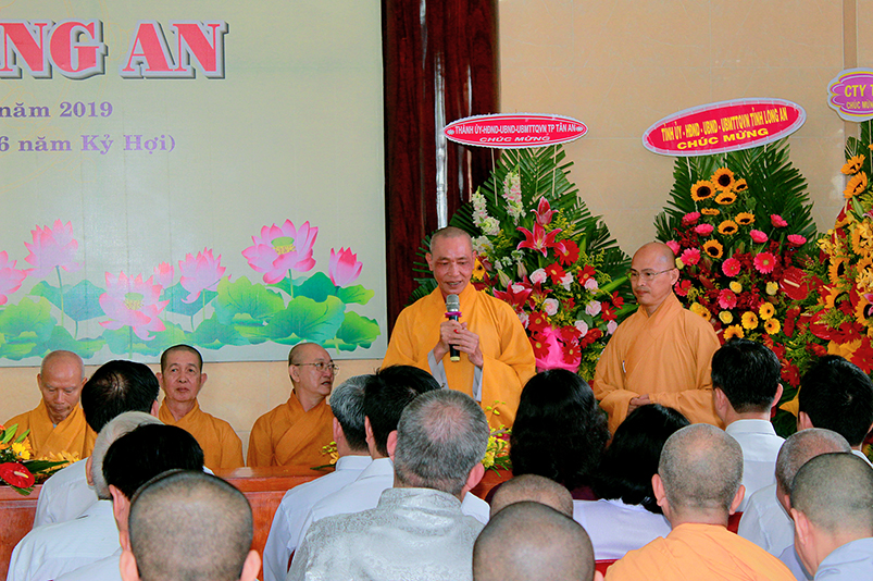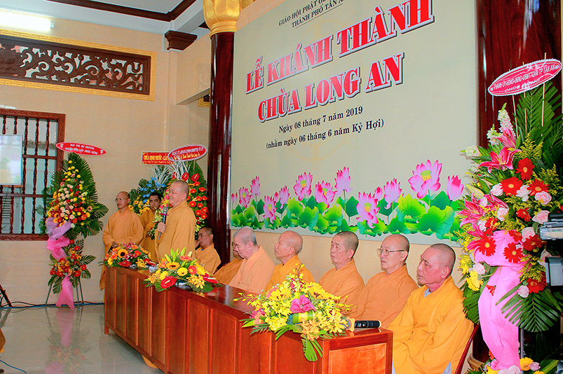Thay mặt chư tôn đức giáo phẩm chứng minh HT. Thích Minh Thiện ban đạo từ. Hòa Thượng nhắc lại những Phật sự đầu tiên của tỉnh Hội Phật giáo tỉnh Long An gắng kết với chùa Long An rất lâu. Ngài mong muốn rằng: kể từ hôm nay ngôi Tam Bảo Long An này đã trang nghiêm tú lệ. Chư vị thường trụ nơi đây sẽ phát huy và nuôi dưỡng tâm Bồ Đề cho Phật tử ngày càng lớn mạnh hơn, sẽ được thành lập những khóa tu học cho Phật tử để xứng đáng với việc phát huy và bảo tồn Phật Pháp.
