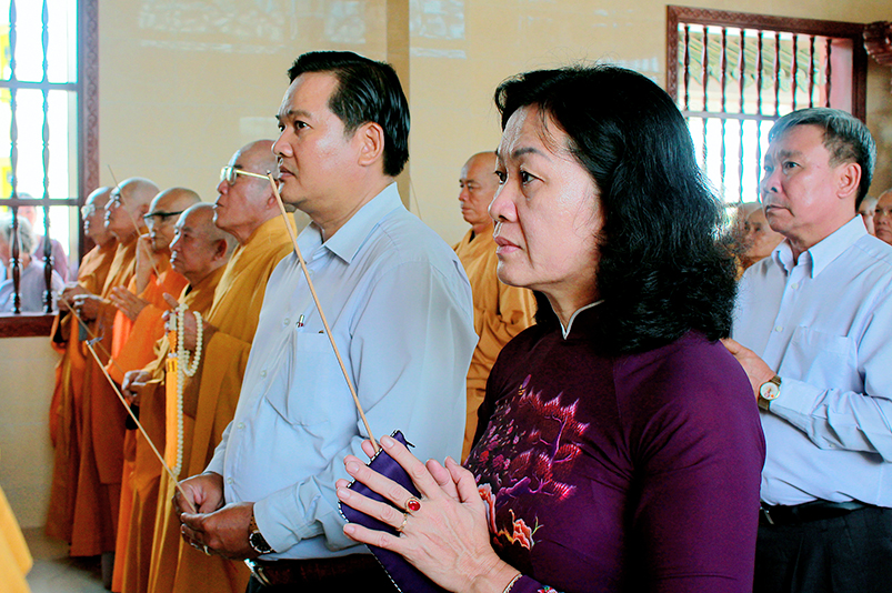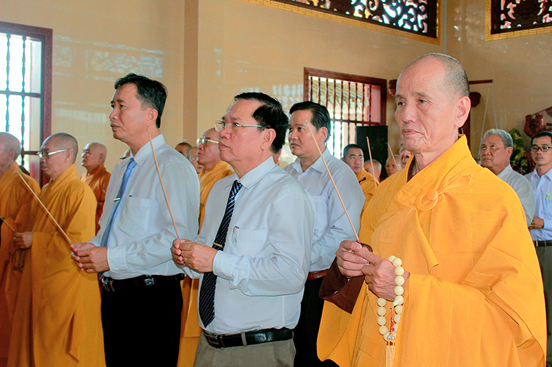 Về phía quý cấp Chính quyền đại diện có Ông Nguyễn văn Bon – Tỉnh Uỷ Viên, Giám Đốc Sở Nội Vụ tỉnh Long An; Ông Công Hoàng Bạch – Phó Trưởng Ban Dân Vận tỉnh Uỷ Tỉnh Long An; Bà Phạm Ngọc Tiệp – Phó Chủ Tịch MTTQ Tỉnh Long An; Ông Nguyễn Quang Thất – Phó Chủ Tịch TP. Tân An; Ông Lê Thành Phước – Trưởng Ban Dân Vận, chủ tịch MTTQ TP. Tân An; Ông Nguyễn Ngọc Sang – Bí Thư Đảng Uỷ, chủ tịch UBND Phường 1 TP. Tân An; Ông Huỳnh Nghiệp Tân – Đại Diện Hội Người Hoa TP. Tân An; cùng quý vị lãnh đạo Thành Phố Tân An cùng hơn 500 Phật Tử từ các huyện Thành Phố Tân An hoan hỷ đến tham dự.
