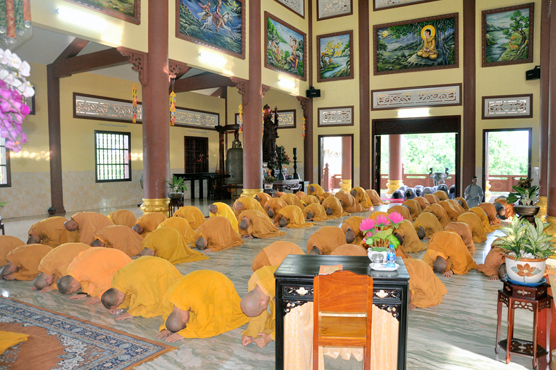Theo thông lệ đó, năm nay trú xứ Thiên Châu, Văn phòng Ban Trị Sự tỉnh hội Phật giáo Long An đã kiến lập Giới tràng dành cho hơn 80 hành giả đồng tập trung An cư Kiết hạ, phần đông là các tân tì-kheo, tân Sa-di vừa đắc giới tại Giới trường Hoằng Đức do Phật giáo tỉnh Long An tổ chức năm Mậu Tuất – 2018.