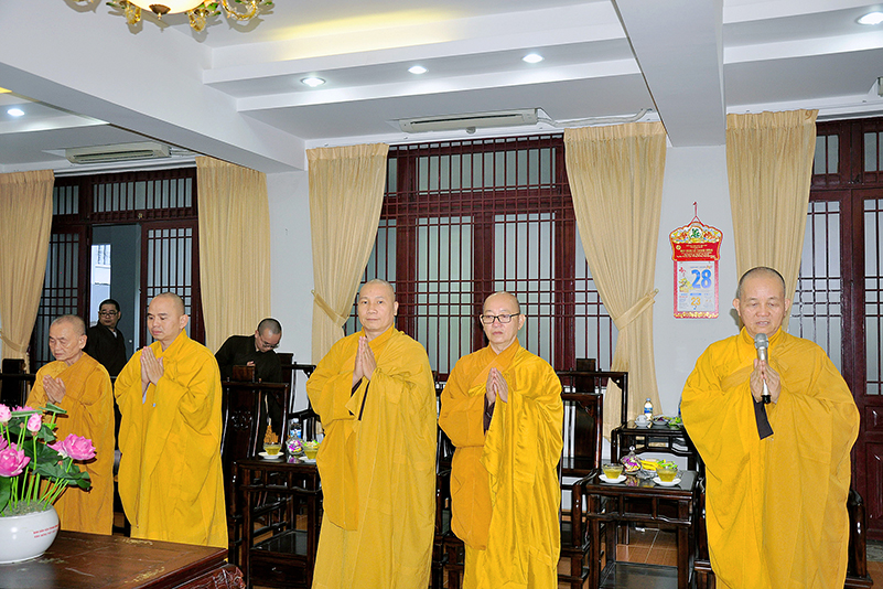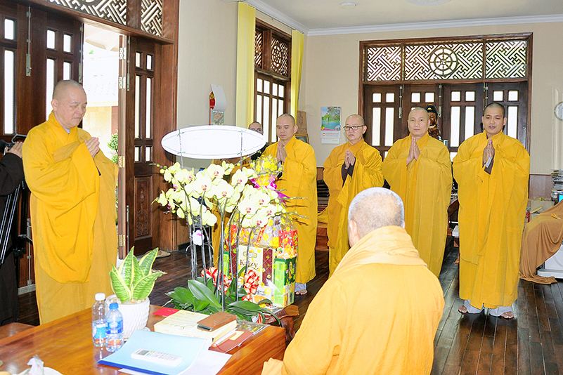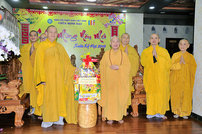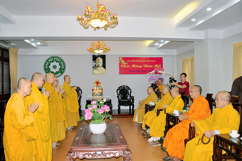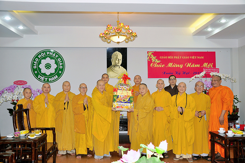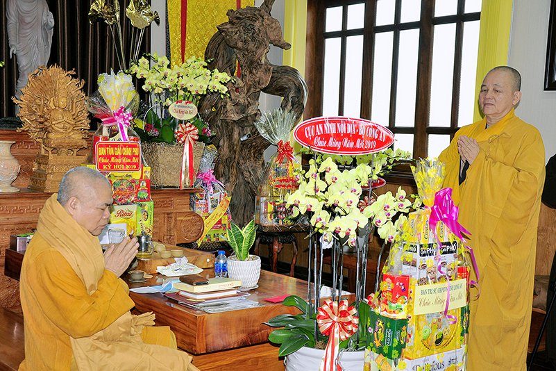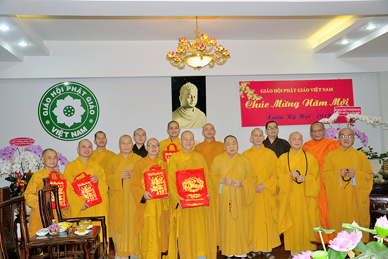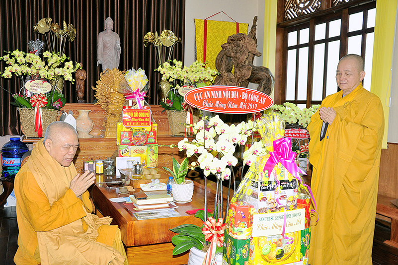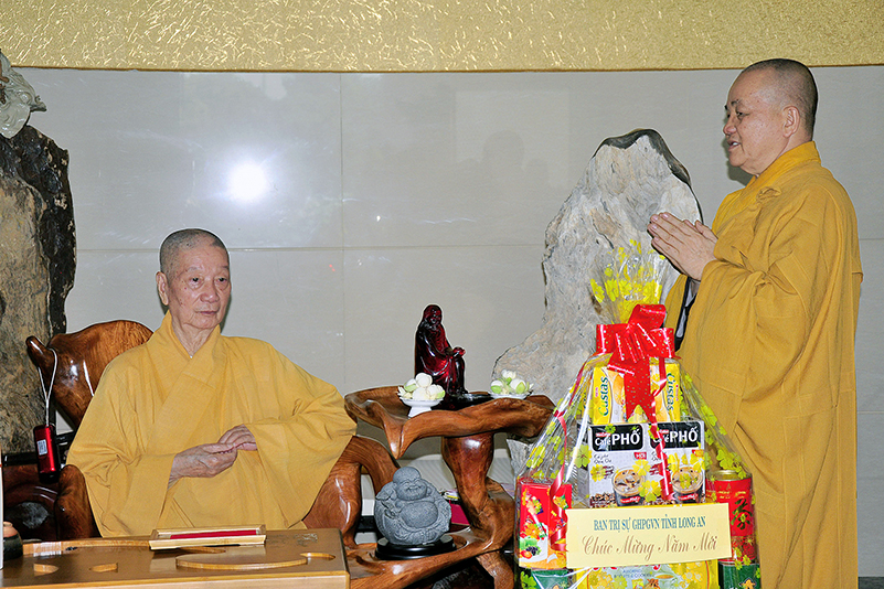 Hòa trong không gian đầm ấm, ngập tràn hương vị thiêng liêng ngày Tết cổ truyền của Dân tộc, thể hiện tấm lòng chân thành của người con Phật luôn nhớ nghĩ đến ân sâu của các bậc Trưởng thượng, và ghi nhận ân tình của những bậc thiện tri thức cộng sự đồng hành trên bước đường tu Phật hạnh. Sáng ngày 28/1/2019( 23/ 12/ Mậu tuất) phái đoàn Thường trực Ban Trị sự GHPGVN tỉnh Long An do Hòa thượng Thích Minh Thiện- Ủy viên Hội Đồng Trị Sự Trung Ương- Phó Ban Hoằng Pháp trung ương, Trưởng Ban Trị sự GHPGVN tỉnh Long An đã hướng dẫn Chư tôn đức Thường trực Ban Trị sự cung kính đảnh lễ Chư Tôn đức Giáo phẩm Thường trực Trung ương GHPGVN.