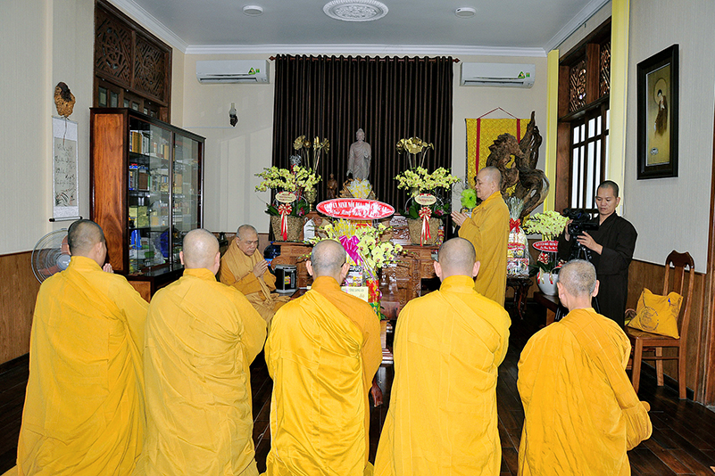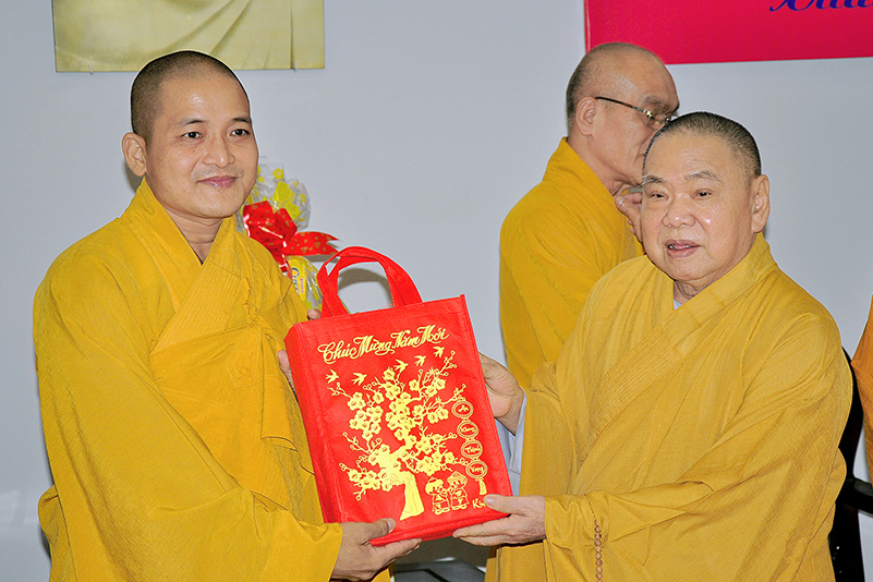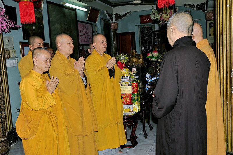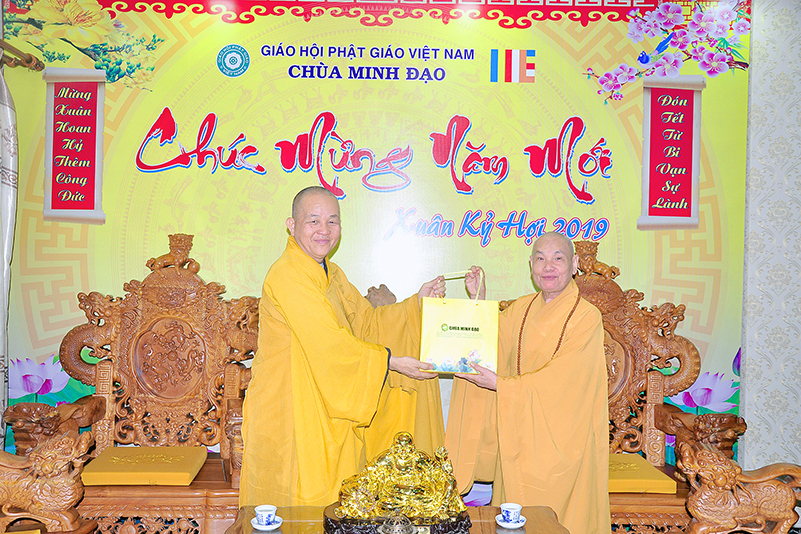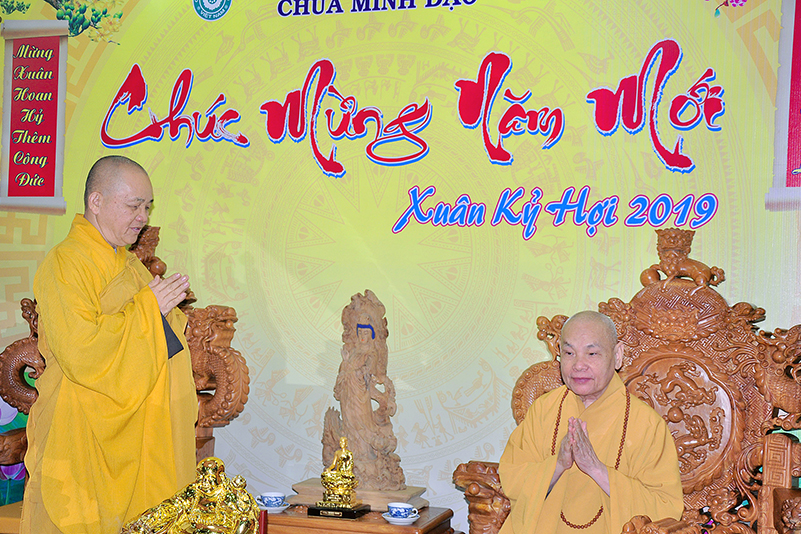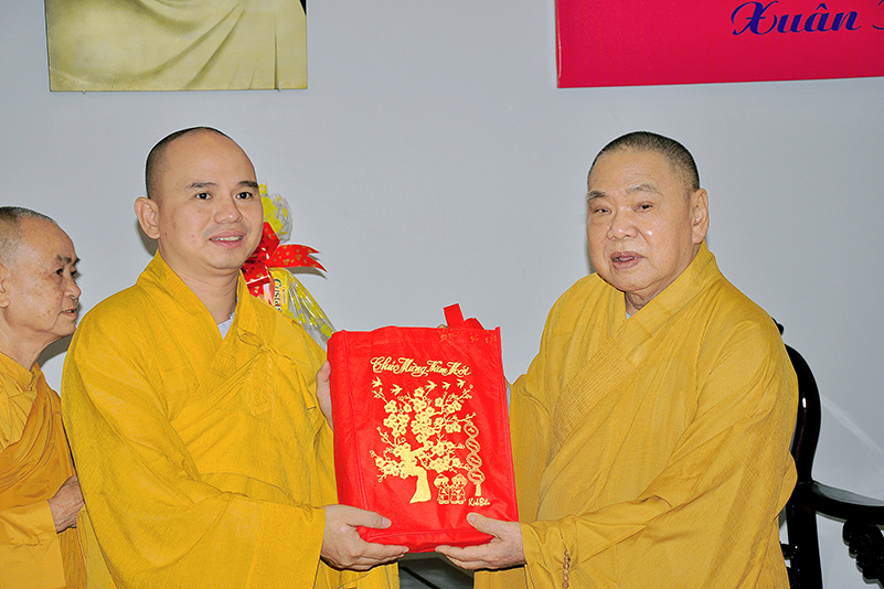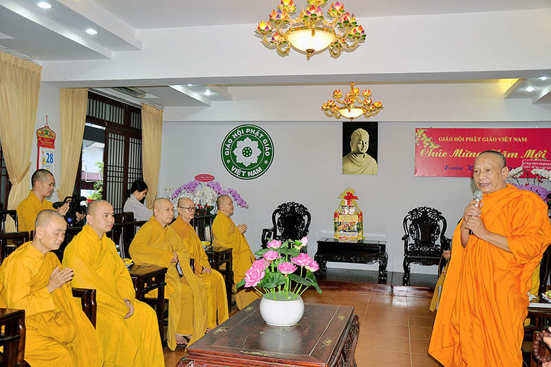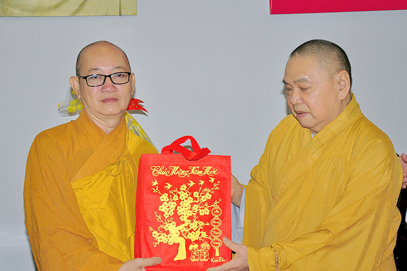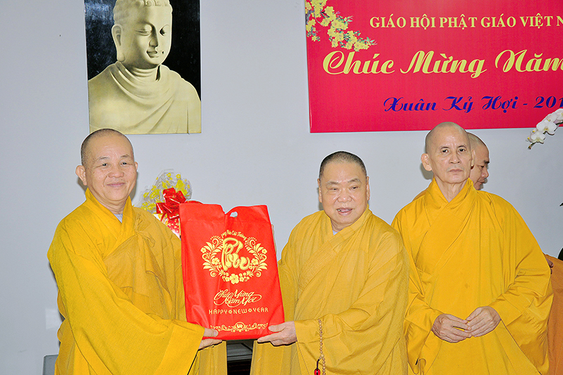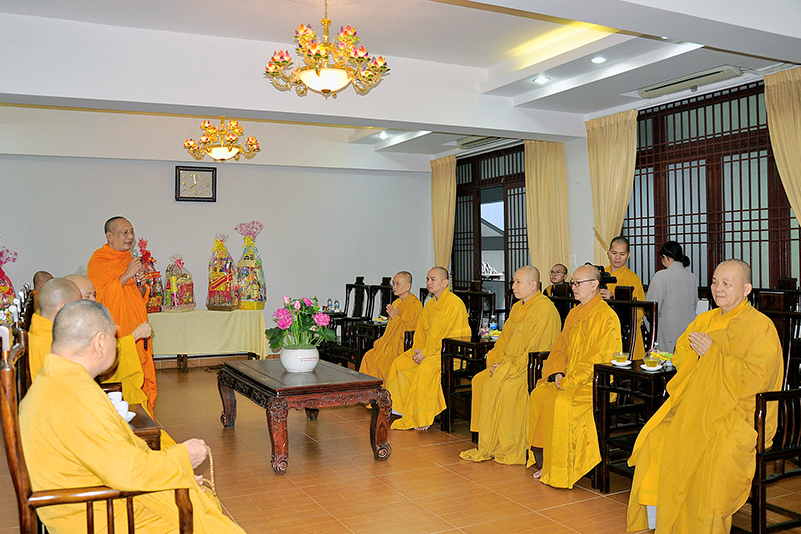 Hòa trong không gian đầm ấm, ngập tràn hương vị thiêng liêng ngày Tết cổ truyền của Dân tộc, thể hiện tấm lòng chân thành của người con Phật luôn nhớ nghĩ đến ân sâu của các bậc Trưởng thượng, và ghi nhận ân tình của những bậc thiện tri thức cộng sự đồng hành trên bước đường tu Phật hạnh. Sáng ngày 28/1/2019( 23/ 12/ Mậu tuất) phái đoàn Thường trực Ban Trị sự GHPGVN tỉnh Long An do Hòa thượng Thích Minh Thiện- Ủy viên Hội Đồng Trị Sự Trung Ương- Phó Ban Hoằng Pháp trung ương, Trưởng Ban Trị sự GHPGVN tỉnh Long An đã hướng dẫn Chư tôn đức Thường trực Ban Trị sự cung kính đảnh lễ Chư Tôn đức Giáo phẩm Thường trực Trung ương GHPGVN.