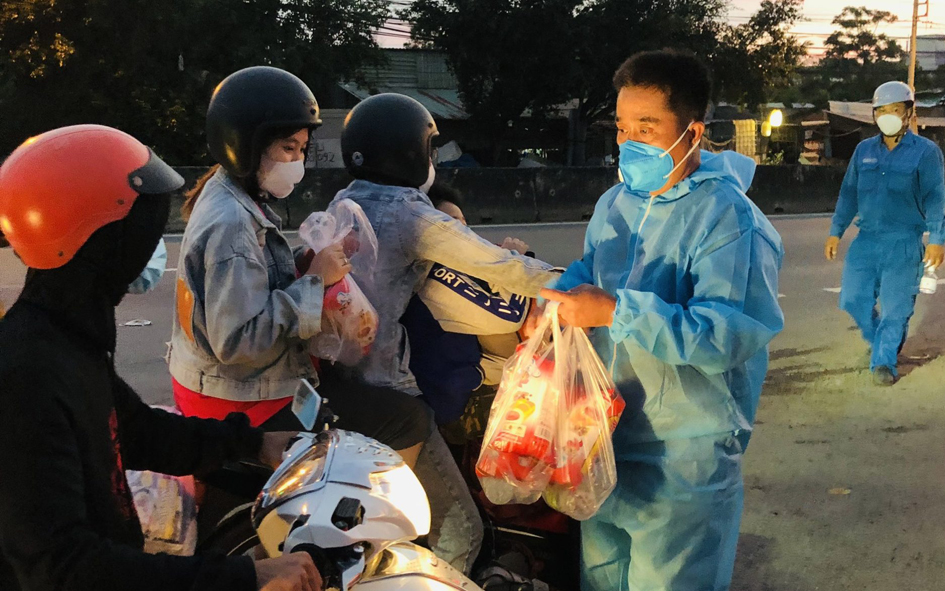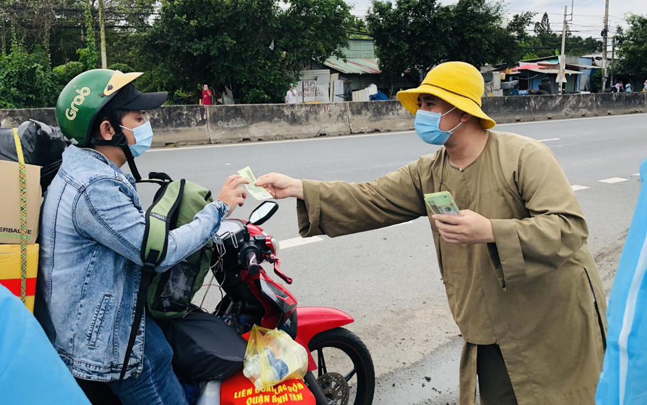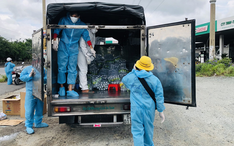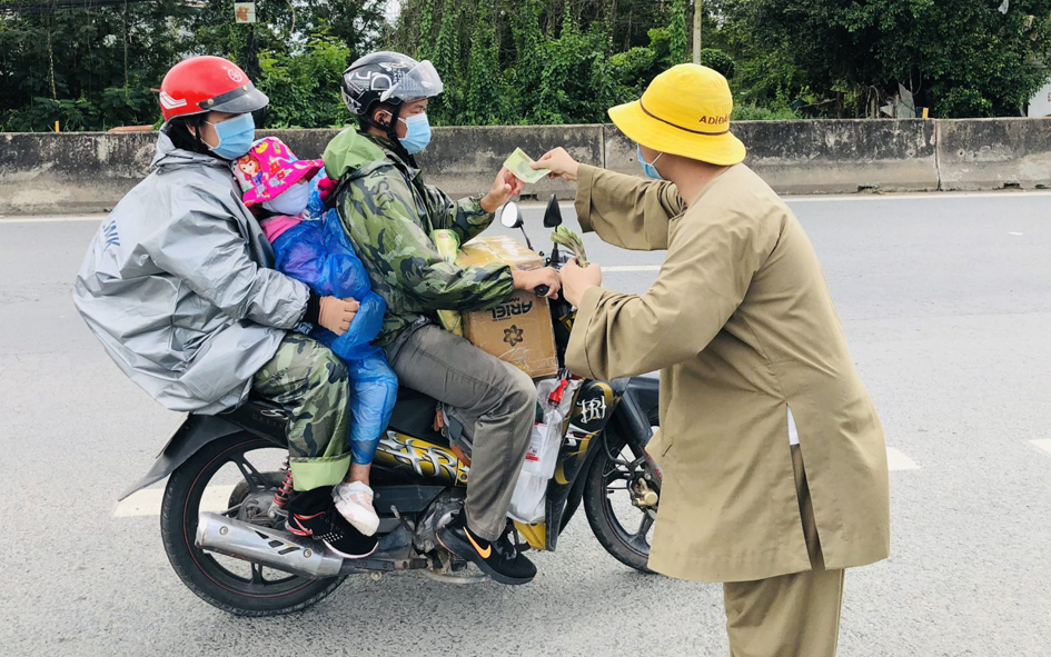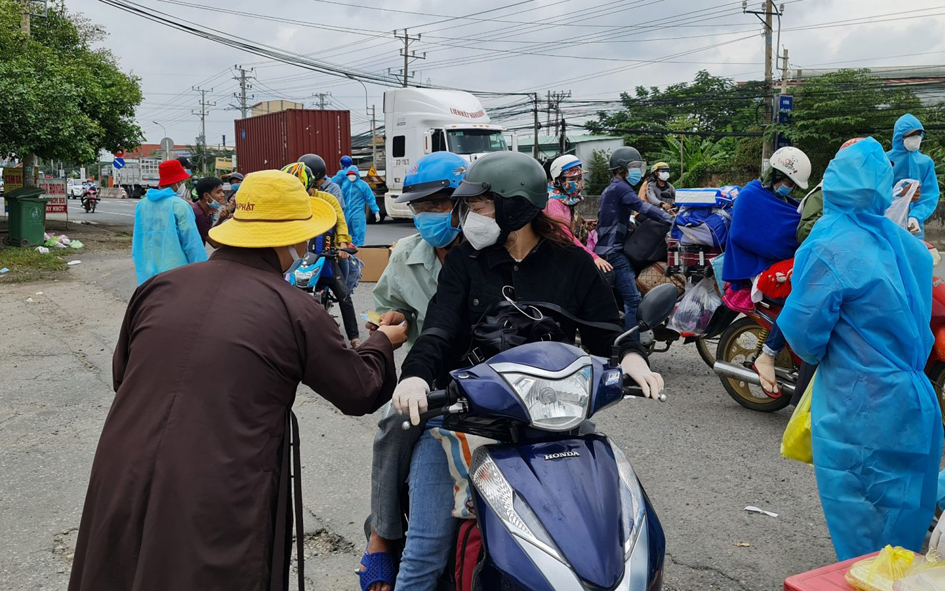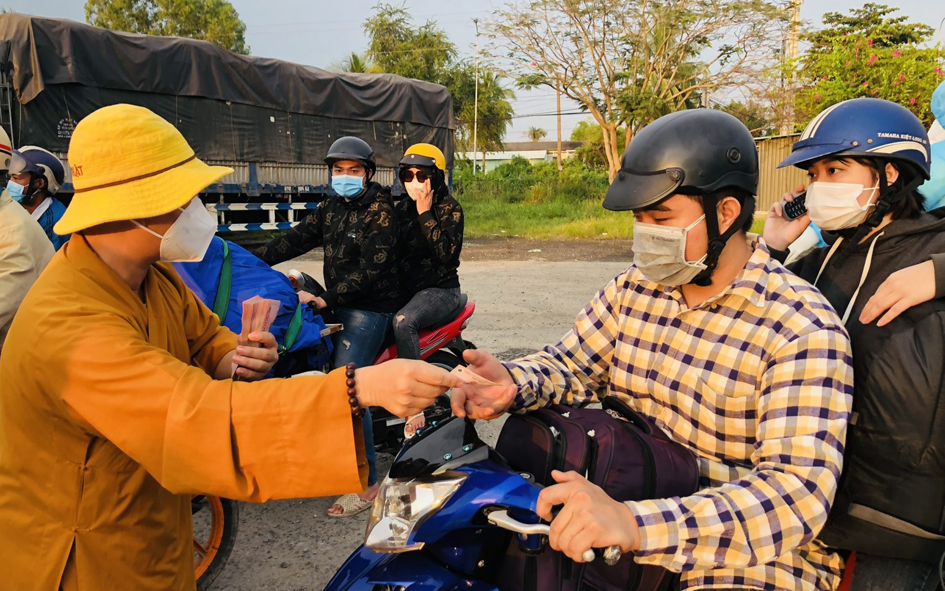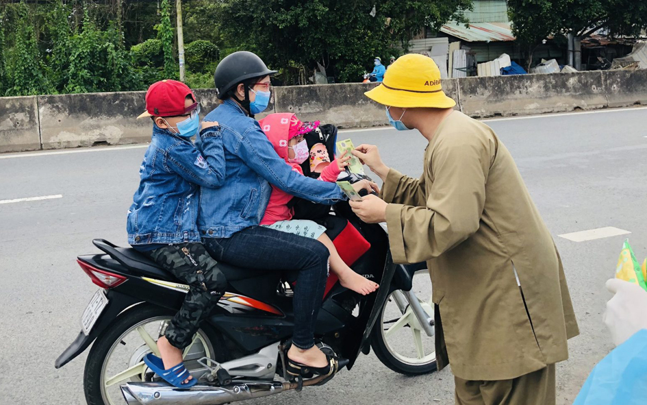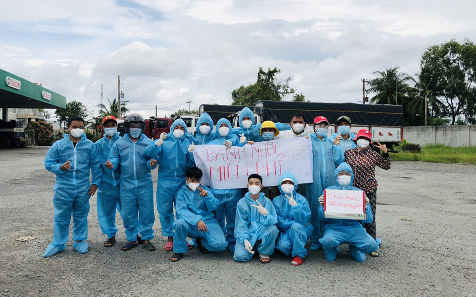 Để hành trình hồi hương của bà con đỡ bớt khó khăn, những ngày qua từ ngày 02-04/10/2021, Đại đức Thích Thiện Phát – Phó Thư ký Ban Trị sự GHPGVN huyện Bến Lức, trụ trì chùa Thạnh Đức (xã Mỹ Yên, huyện Bến Lức, tỉnh Long An) cùng “Nhóm từ thiện Gieo duyên chùa Thạnh Đức” đã hỗ trợ 2.300 suất cơm, 4.000 phần bánh ngọt, 500 ổ bánh mì không, 57 thùng sữa tươi, 9.000 chai nước suối, 20.000 khẩu trang y tế và 190 triệu đồng tiền mặt với mong muốn giúp bà con trên đường về quê bằng phương tiện cá nhân luôn ấp tình Dân tộc Việt Nam.