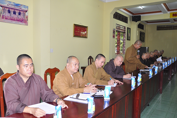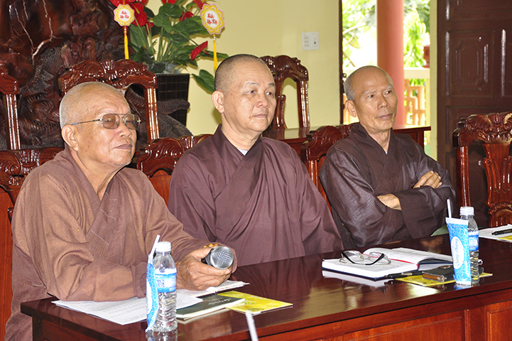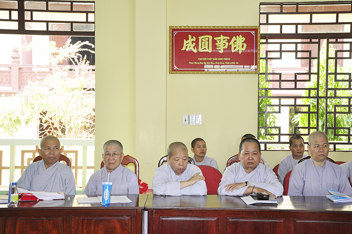 Chứng minh và tham dự buổi hợp gồm có : HT Thích Huệ Hồng – Chứng minh Ban Trị sự GHPGVN tỉnh Long An, HT Thích Minh Thiện – Ủy viên HĐTS, Phó Trưởng ban Hoằng pháp TW, Trưởng ban Trị sự GHPGVN tỉnh Long An; HT Thích Thiện Tâm – Phó Trưởng ban kiêm Trưởng ban Kiểm soát GHPGVN tỉnh Long An; HT Thích Thiện Tài – Phó BTS GHPGVN tỉnh Long An; HT Thích Tắc Phi – UV HĐTS, Phó Trưởng ban Tăng sự GHPGVN tỉnh Long An; TT Thích Quảng Tâm – Phó Trưởng ban Thường trực BTS GHPGVN tỉnh Long An; TT Thích Giác Nguyên – Phó BTS GHPGVN tỉnh Long An; HT Thích Thiện Phúc -Trưởng ban Trị sự GHPGVN liên huyện Đức Hòa-Đức Huệ; cùng chư Tôn đức Tăng Ni trực thuộc các Ban trị sự tỉnh, Thành phố, huyện, thị về tham dự.