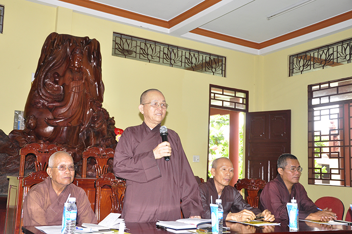 Kết thúc buổi họp là phát biểu chỉ đạo của HT Thích Minh Thiện – Ủy viên HĐTS, Phó Trưởng ban Hoằng pháp TW, Trưởng ban Trị sự GHPGVN tỉnh Long An, hòa thượng trân trọng ghi nhận công đức của Chư Tôn đức Tăng ni đã hoàn thành tốt mọi công tác Phật sự trong tháng 11 cũng như trong năm 2017, và HT cũng nêu thêm một vài định hướng trong công tác hoằng pháp để Phật giáo huyện thị và các phân ban làm tốt hơn. Cuối cùng là thống nhất phương hướng triển khai hoạt động Phật sự năm 2018.